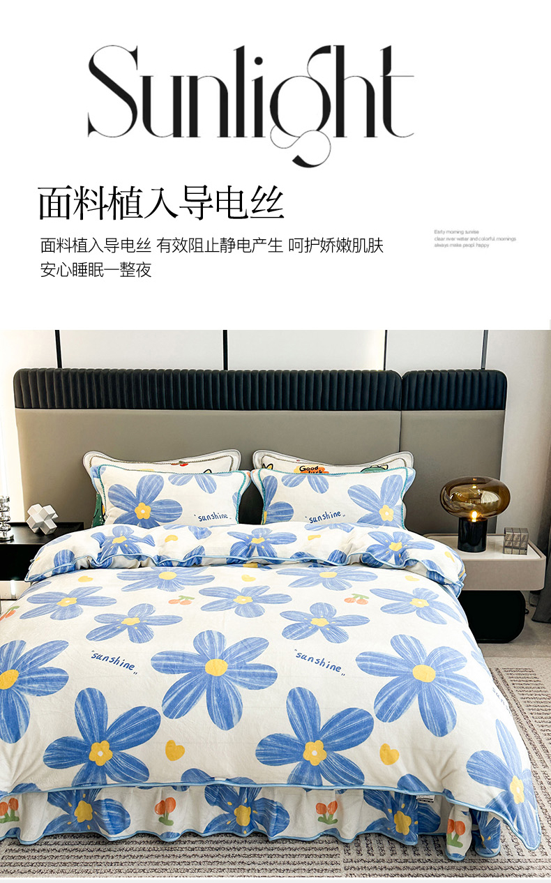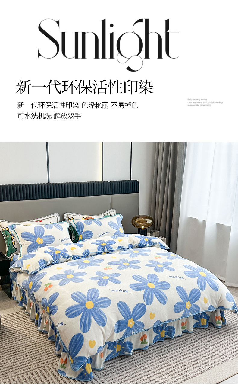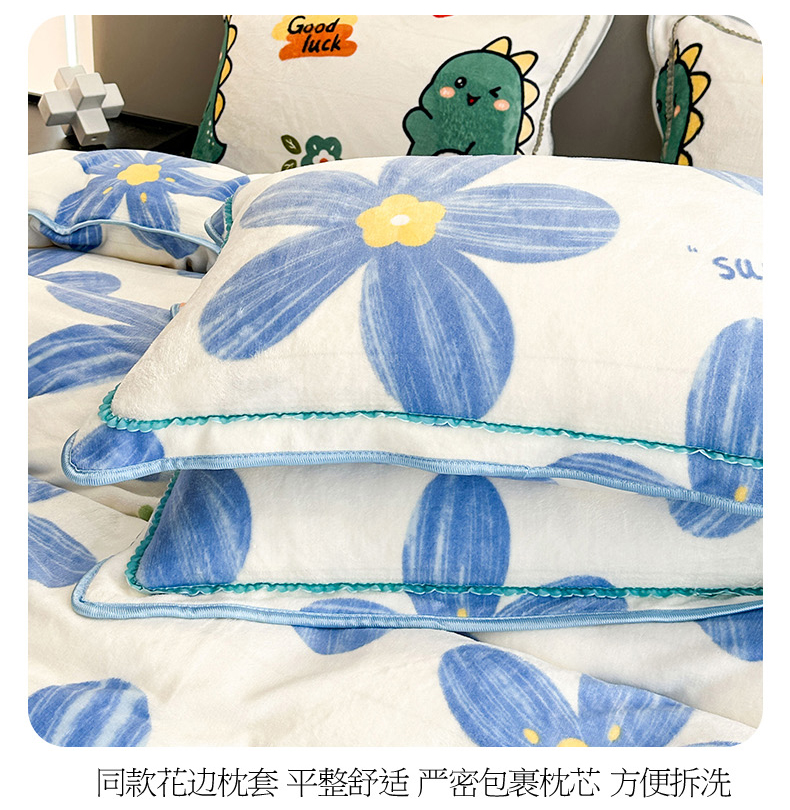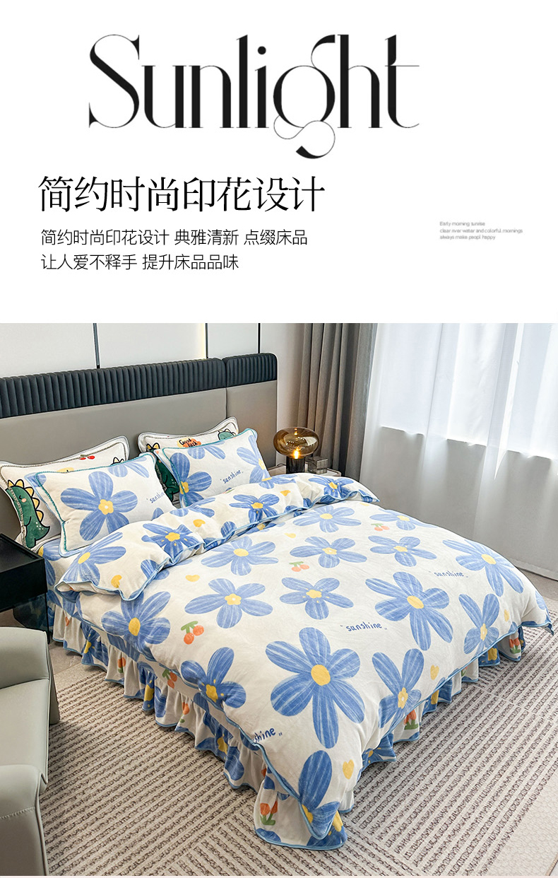 商品名称:欧喜璐 2023新款高克重牛奶绒四件套法莱绒金貂绒8.5斤加厚保暖-印花款 青花盛典