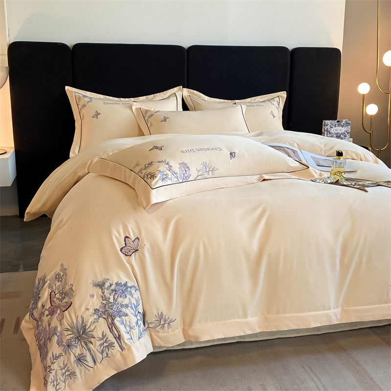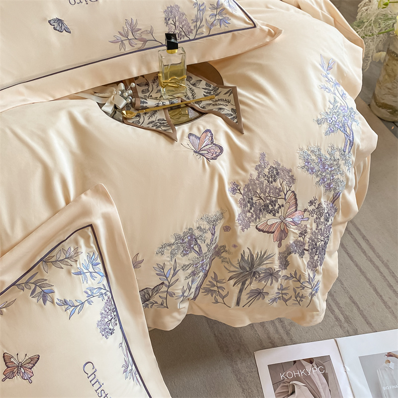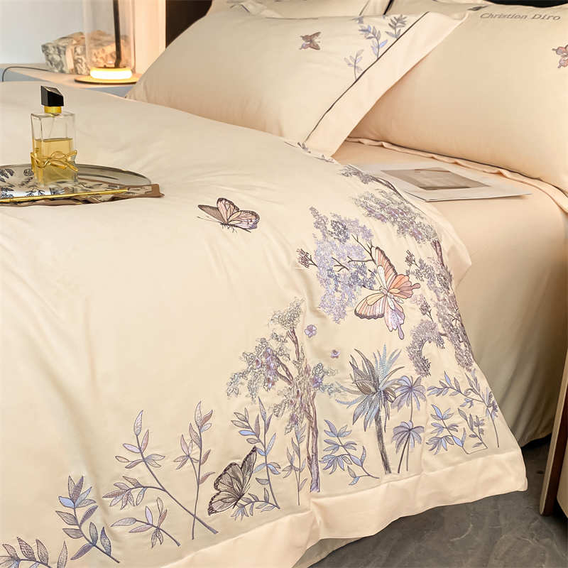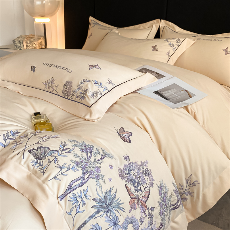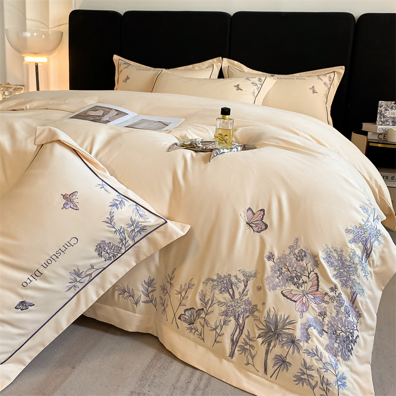 (总)博纳家纺 2025新款纯棉绣花四件套-蝶舞飞扬,象牙白,优雅紫,玉色