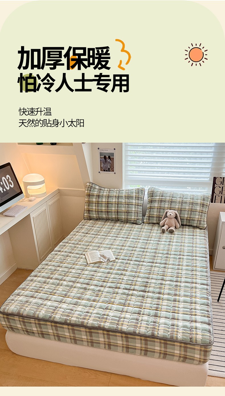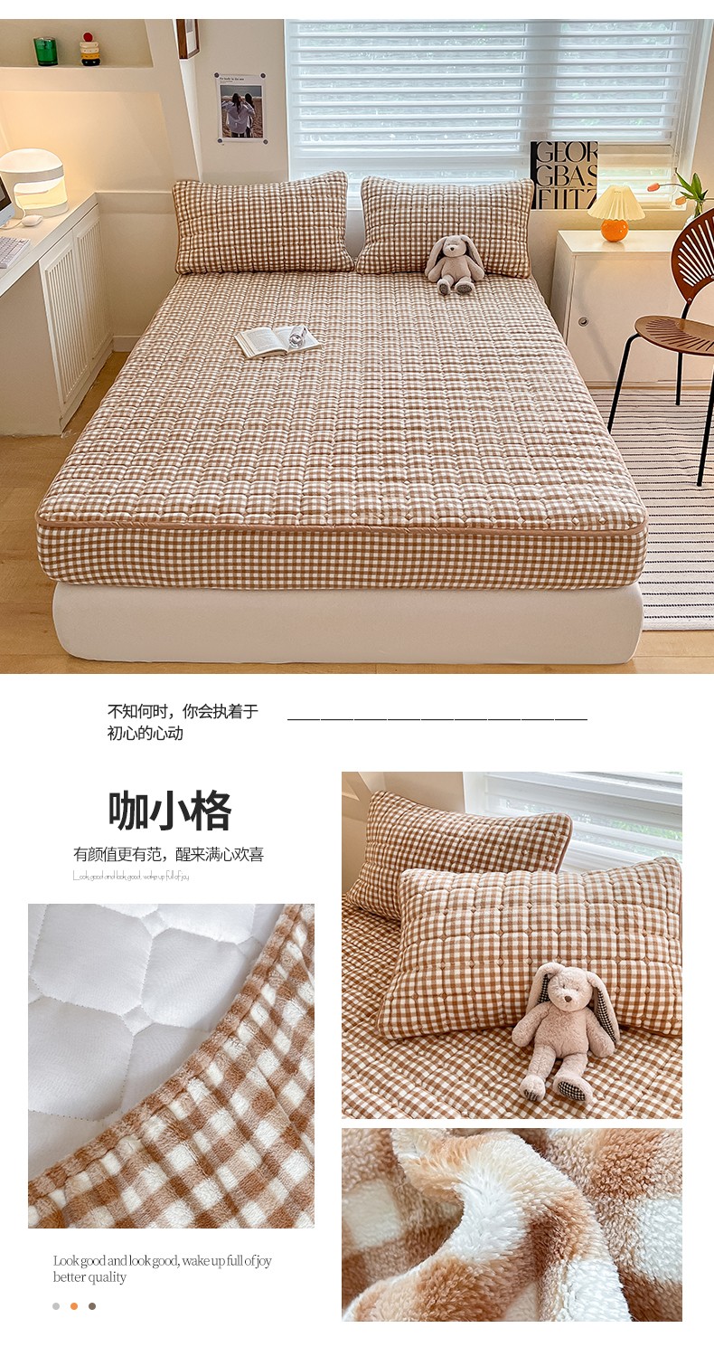 (总)格子铺 2023新款无印风230克高克重牛奶绒大豆夹棉床笠