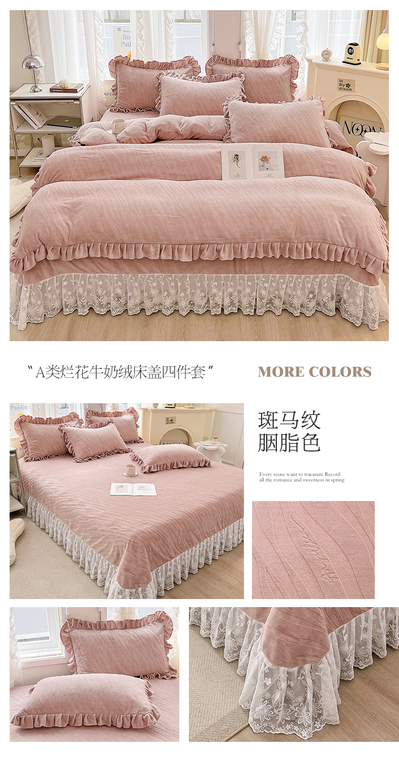 (总)宜凡家纺 2025新款兔绒提花牛奶绒夹棉床裙四件套,爱心 少女粉,爱心 粉紫,爱心 驼色,蝶舞 大红,蝶舞 米色,蝶舞 浅紫,蝶舞 玉色,简爱 苍青,简爱 豆沙紫,简爱 玉色,樱桃 苍青,樱桃 豆沙紫,樱桃 奶油白