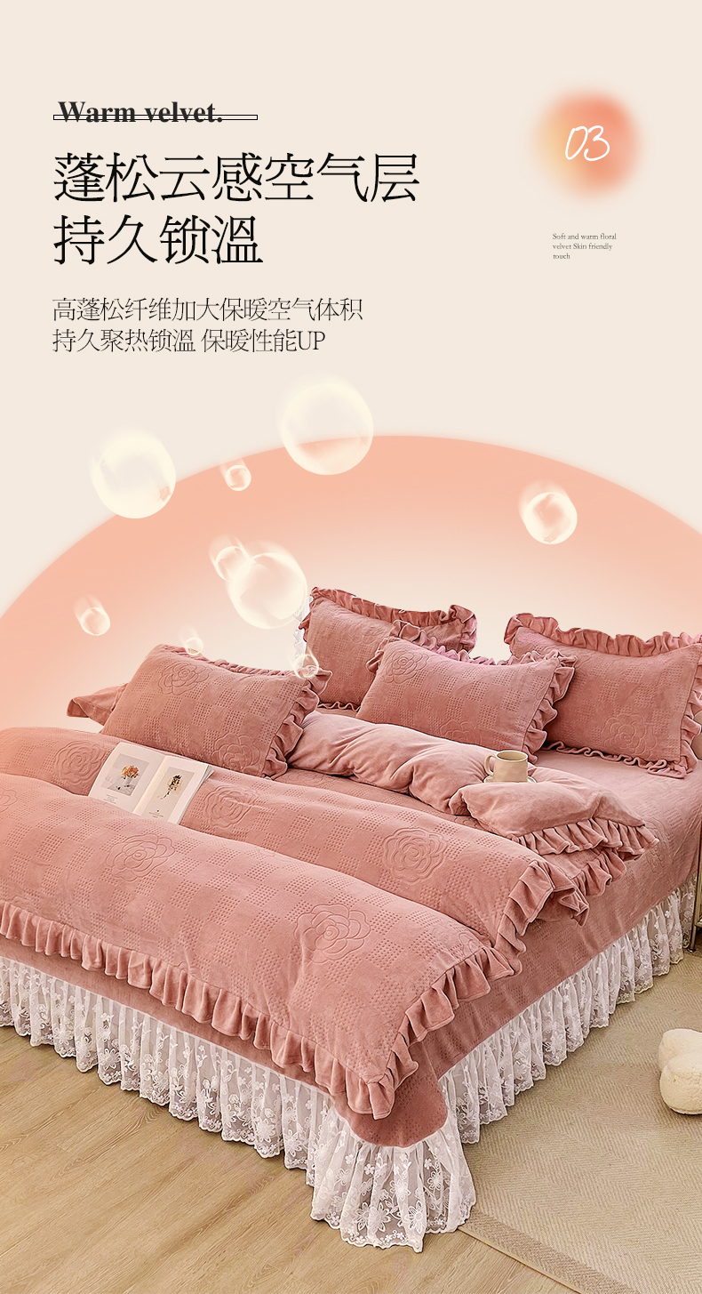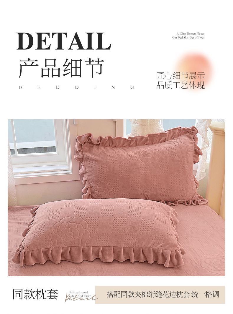 (总)宜凡家纺 2025新款兔绒提花牛奶绒夹棉床裙四件套,爱心 少女粉,爱心 粉紫,爱心 驼色,蝶舞 大红,蝶舞 米色,蝶舞 浅紫,蝶舞 玉色,简爱 苍青,简爱 豆沙紫,简爱 玉色,樱桃 苍青,樱桃 豆沙紫,樱桃 奶油白