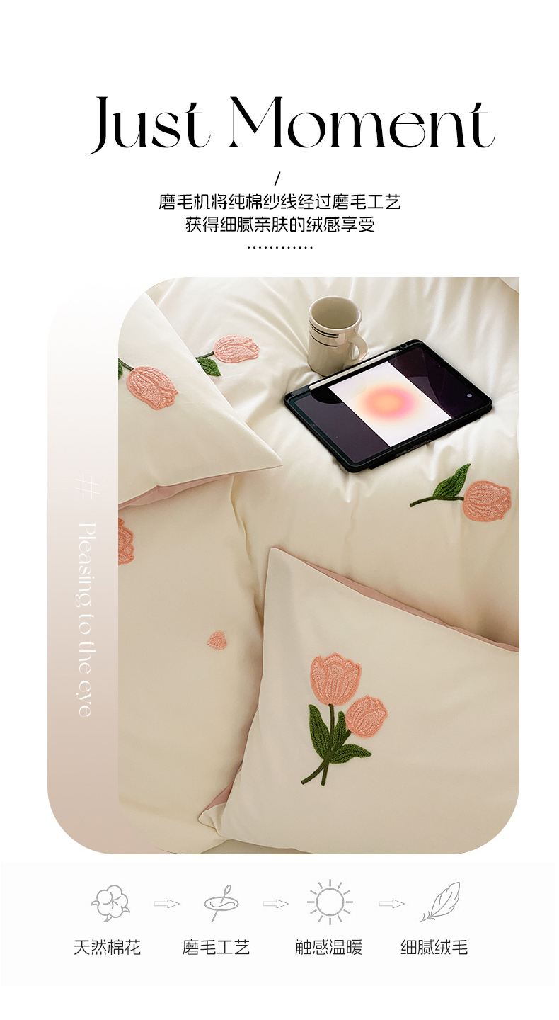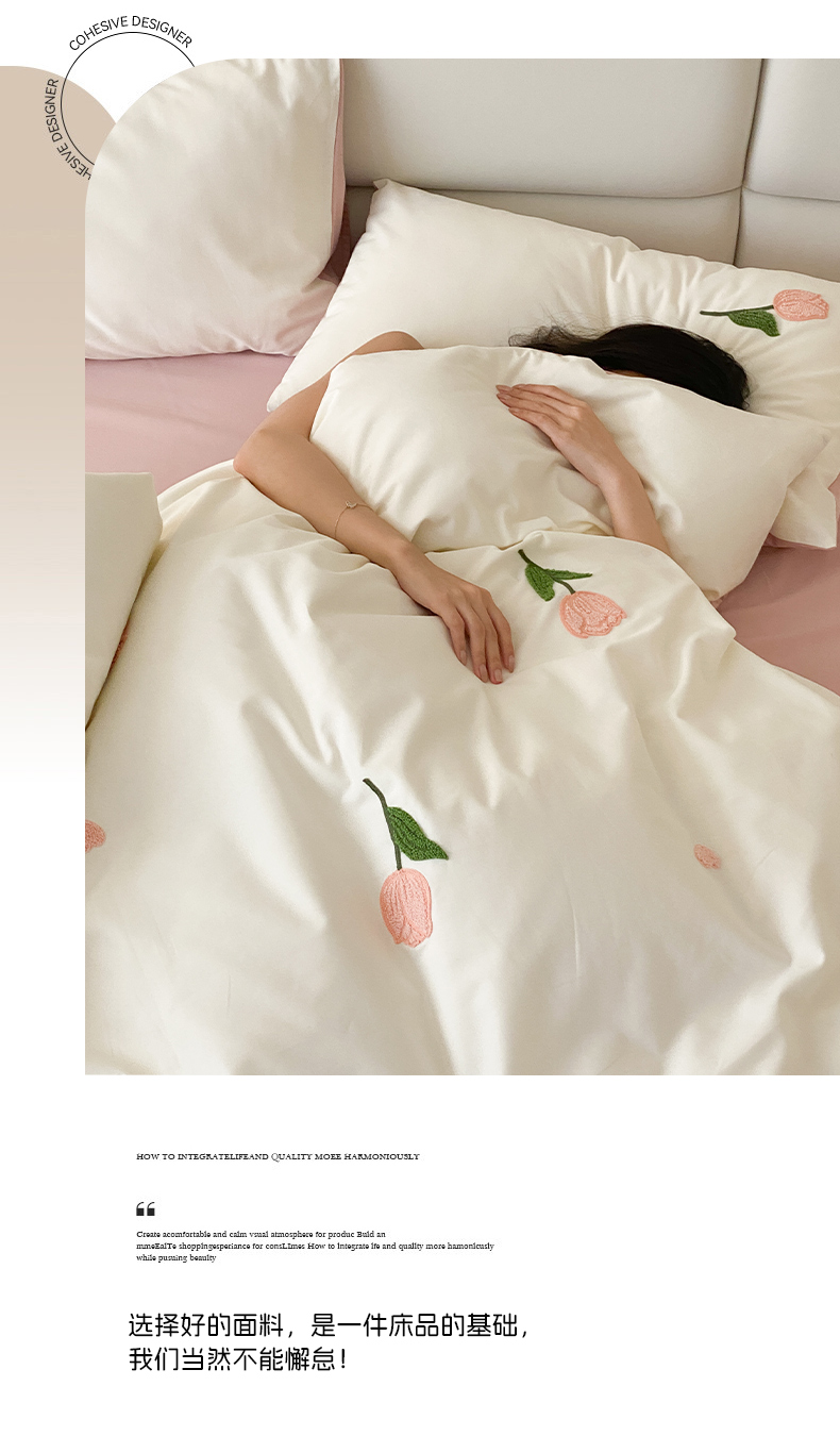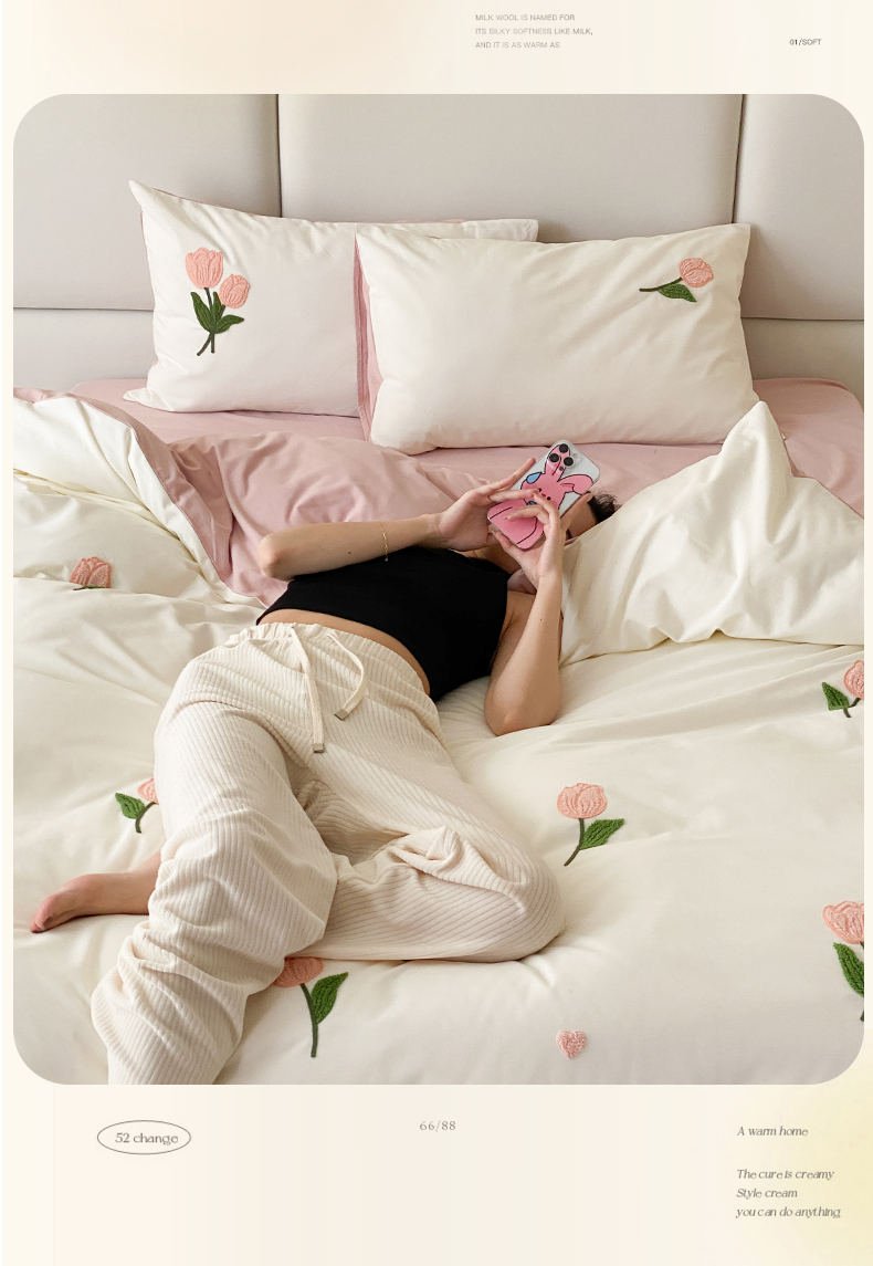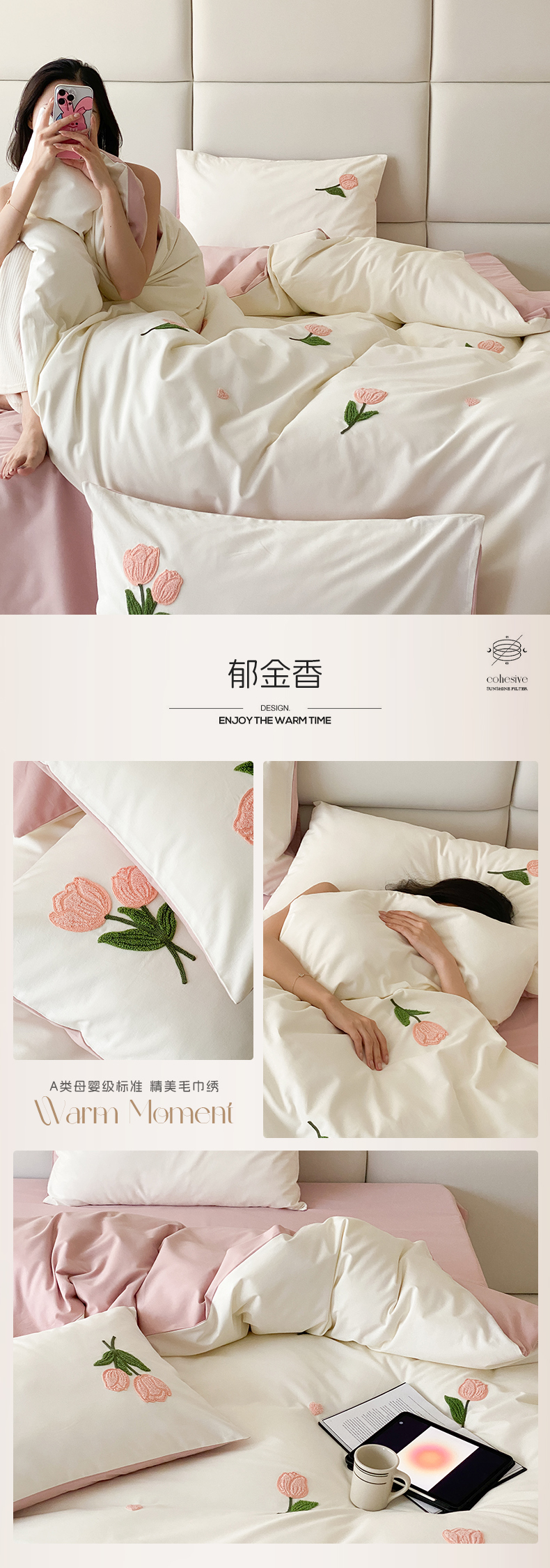 当前位置: 91家纺网 > 商品网购 > 床品套件 > 四件套 > 普通磨毛四件套 > 时光里 2023INS风软萌可爱60s加厚磨毛刺绣款全棉四件套 郁金香