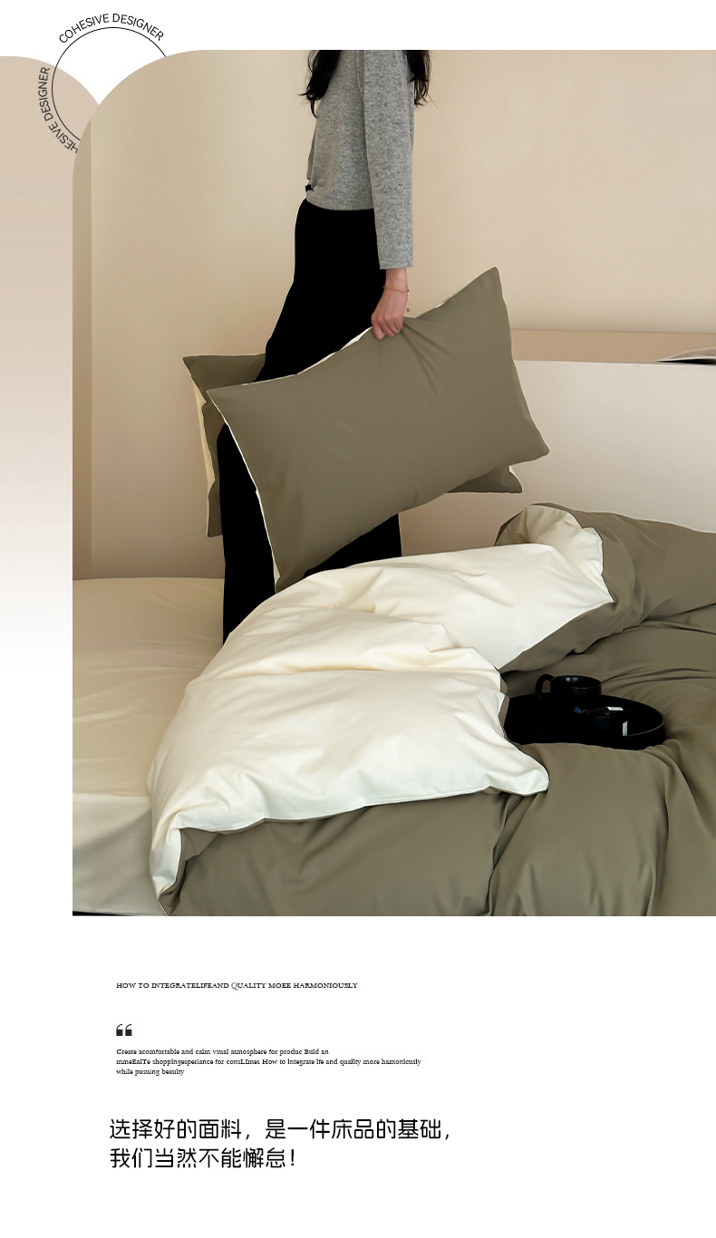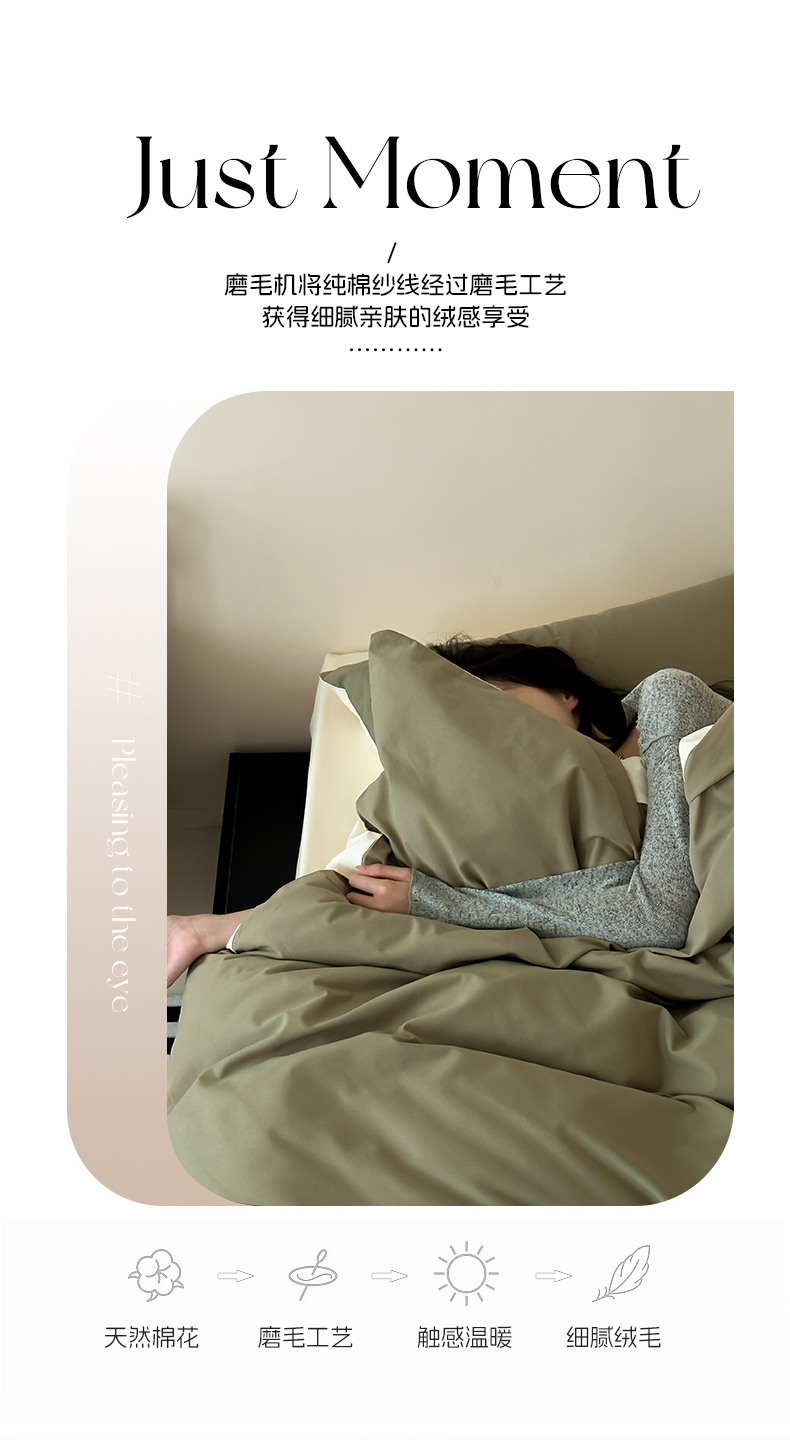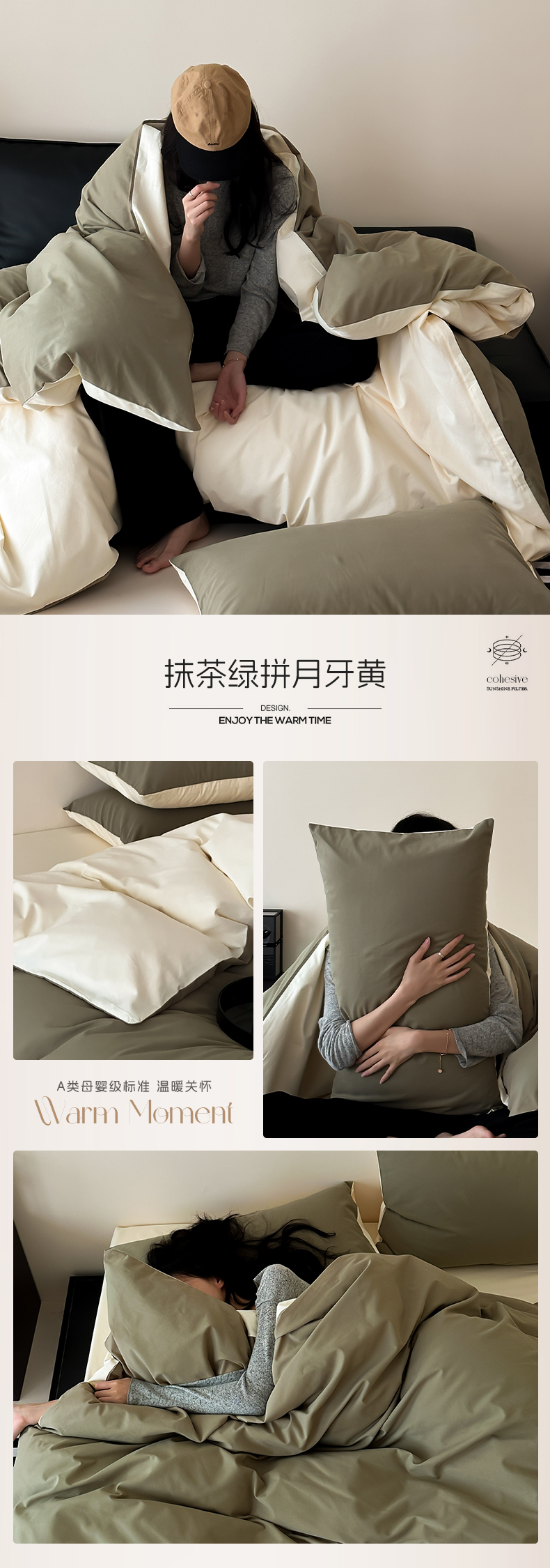 当前位置: 91家纺网 > 商品网购 > 床品套件 > 四件套 > 普通磨毛四件套 > 时光里 2023北欧风简约纯色双拼60s加厚磨毛全棉四件套 抹茶绿拼月牙黄