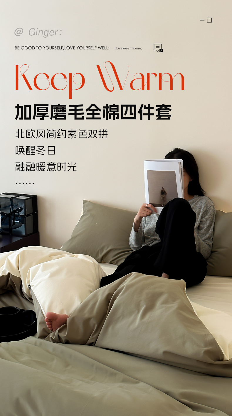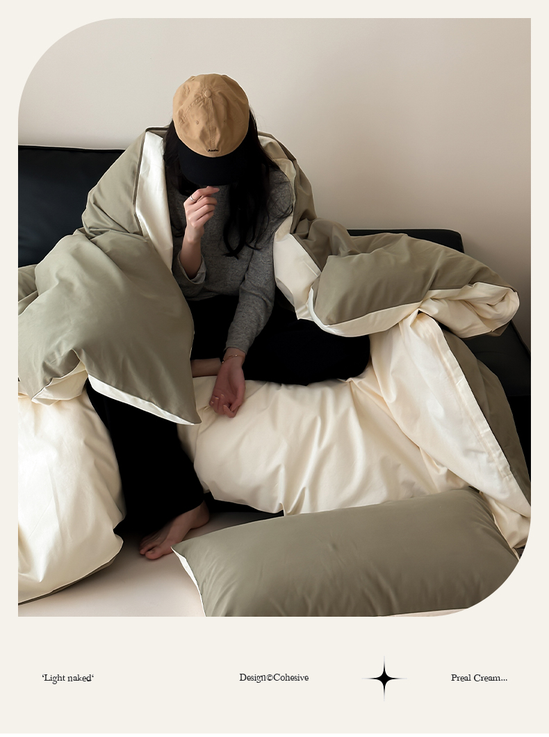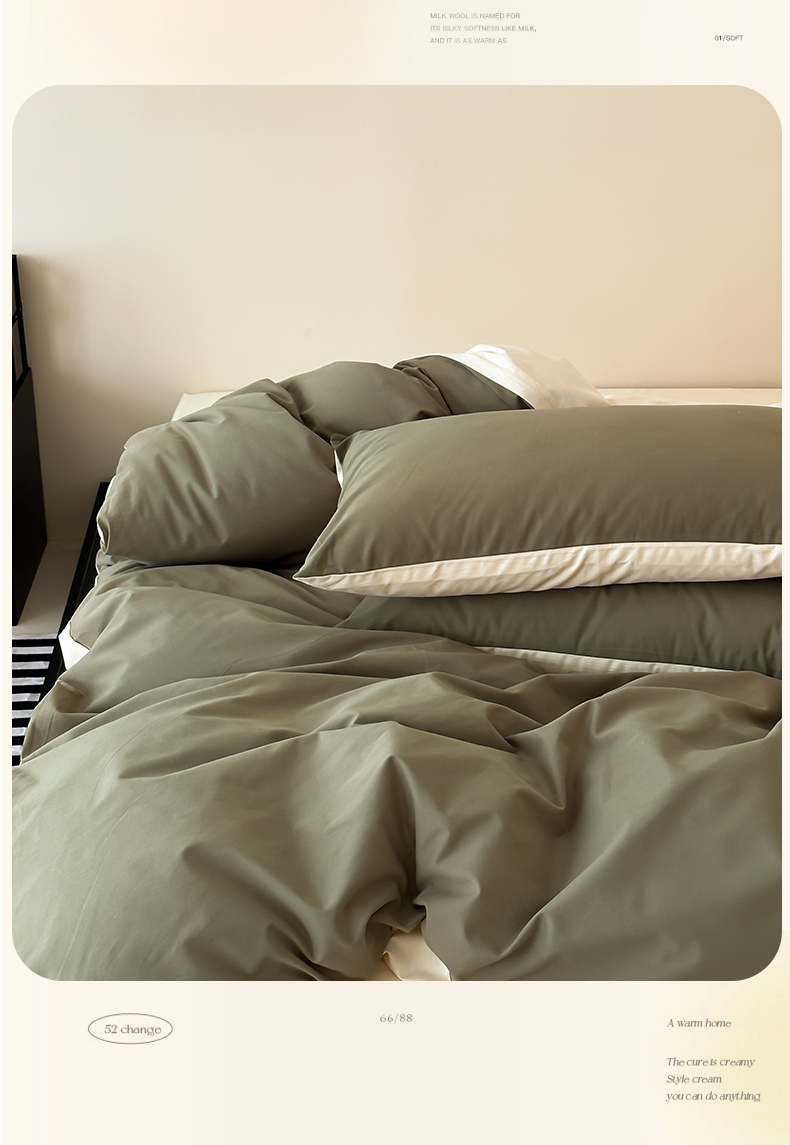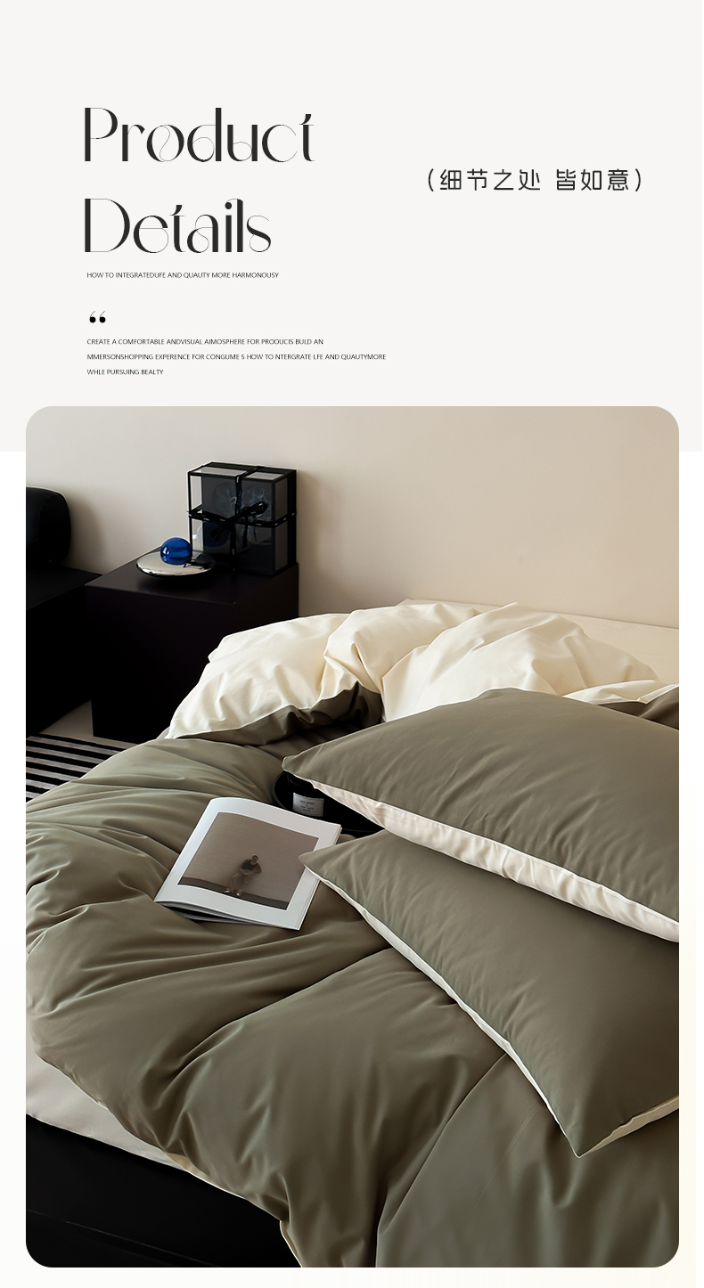 当前位置: 91家纺网 > 商品网购 > 床品套件 > 四件套 > 普通磨毛四件套 > 时光里 2023北欧风简约纯色双拼60s加厚磨毛全棉四件套 抹茶绿拼月牙黄