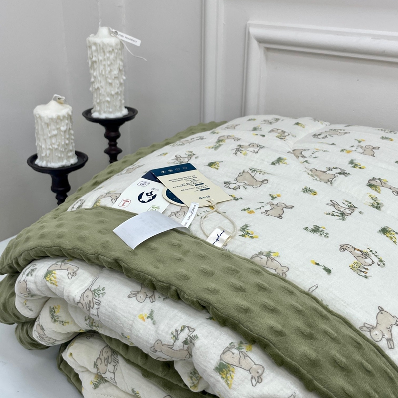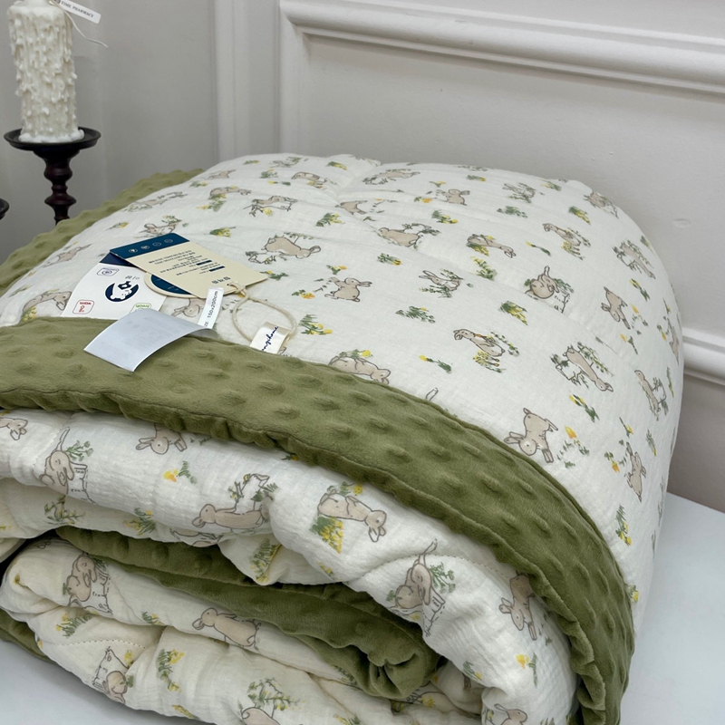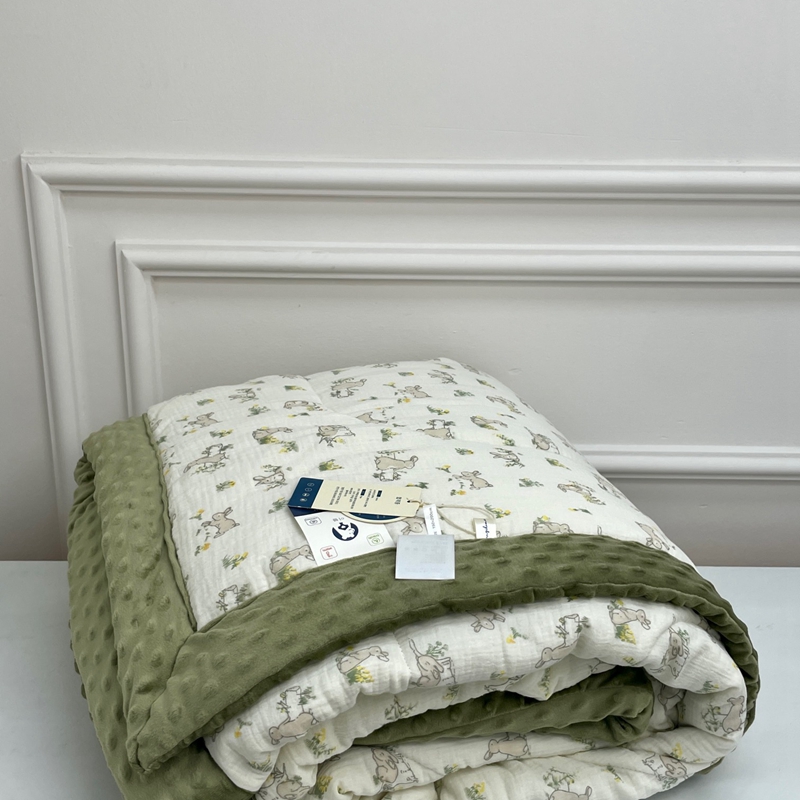 源启生活 2023新款全棉皱皱纱手包边豆豆被 丛林小兔