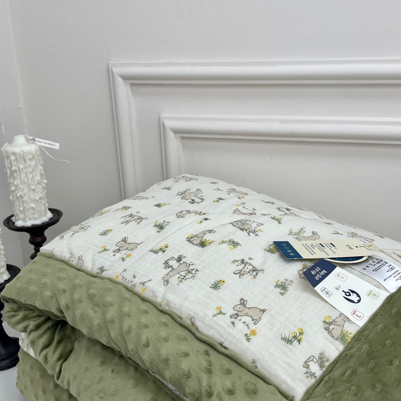 商品名称:源启生活 2023新款全棉皱皱纱手包边豆豆被 丛林小兔