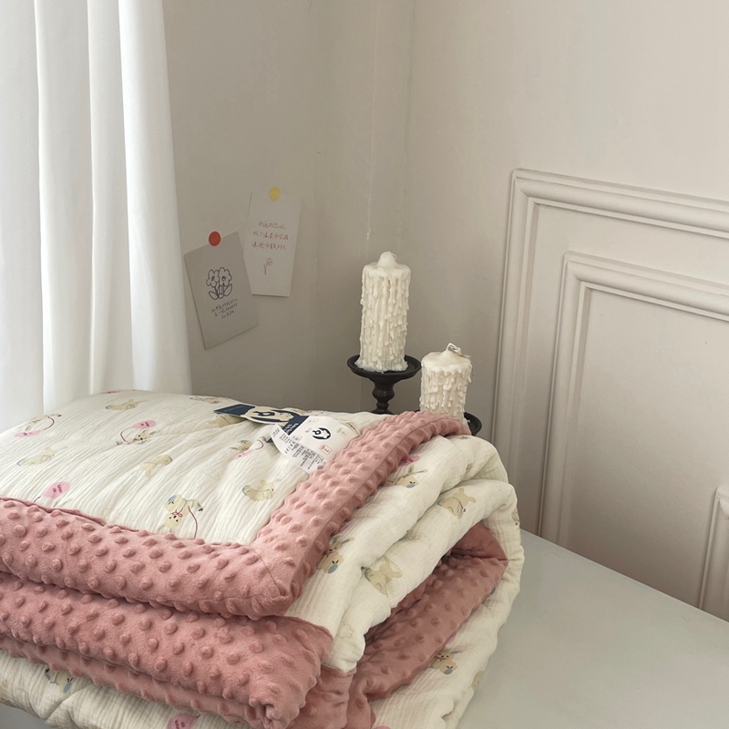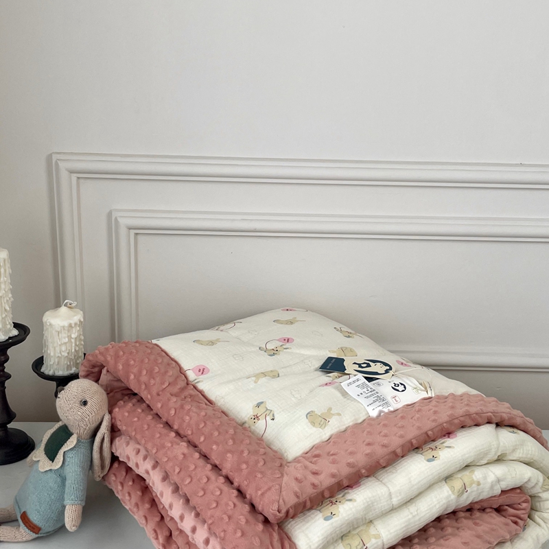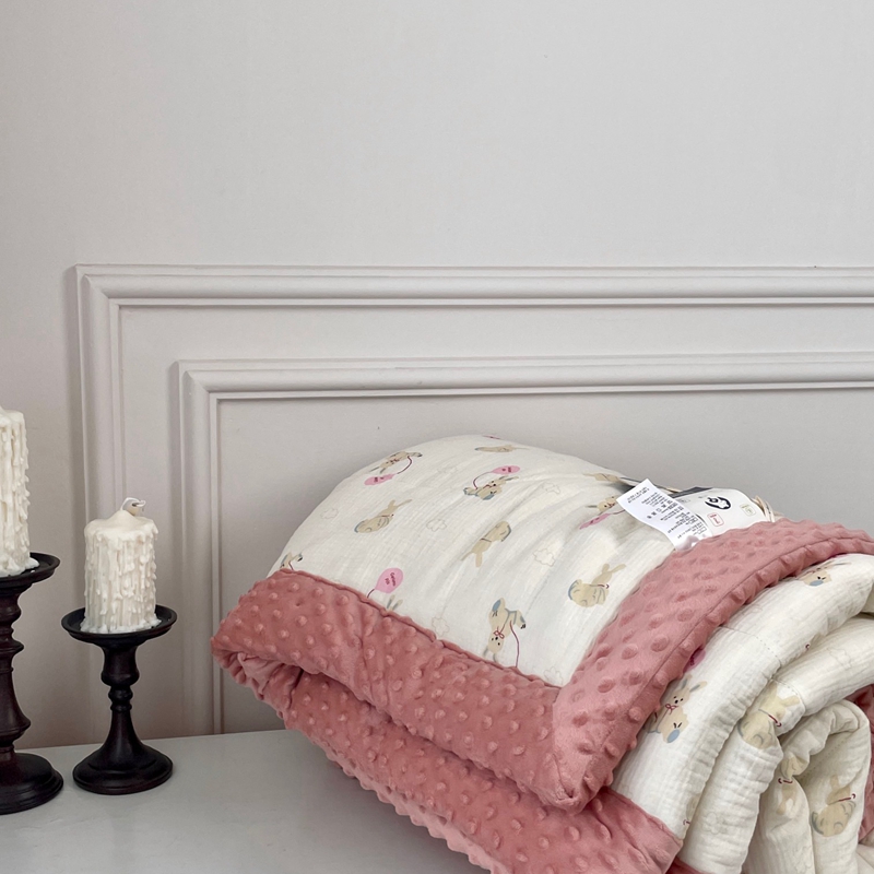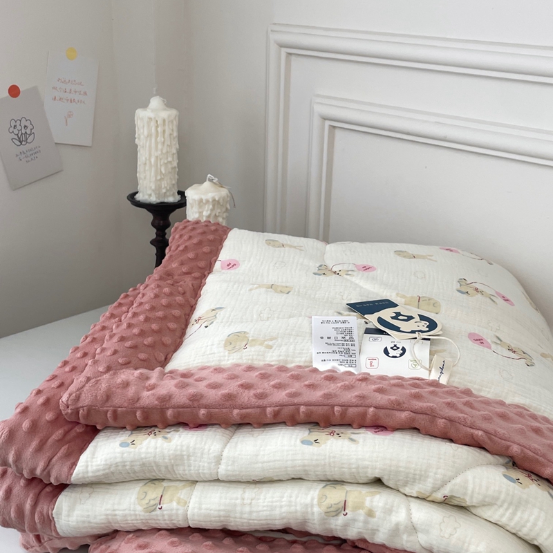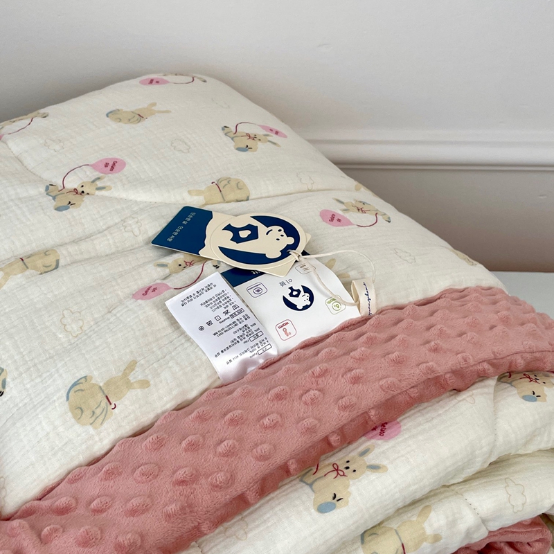 源启生活 2023新款全棉皱皱纱手包边豆豆被 气球小兔