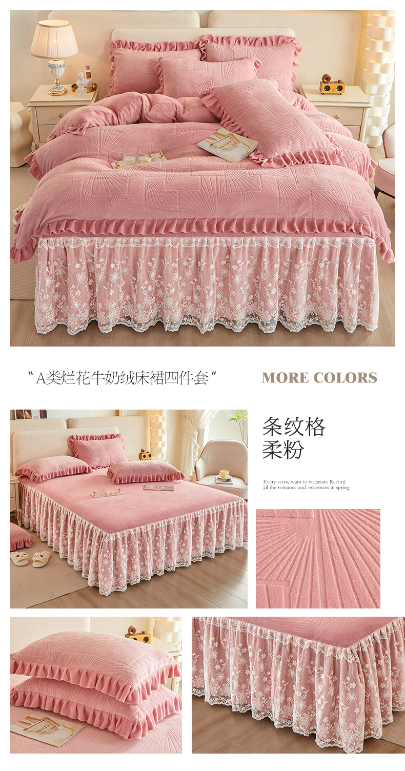当前位置: 91家纺网 > 商品网购 > 床品套件 > 四件套 > 牛奶绒四件套 > 宜凡 2023新款烂花牛奶绒床裙四件套 条纹格-柔粉