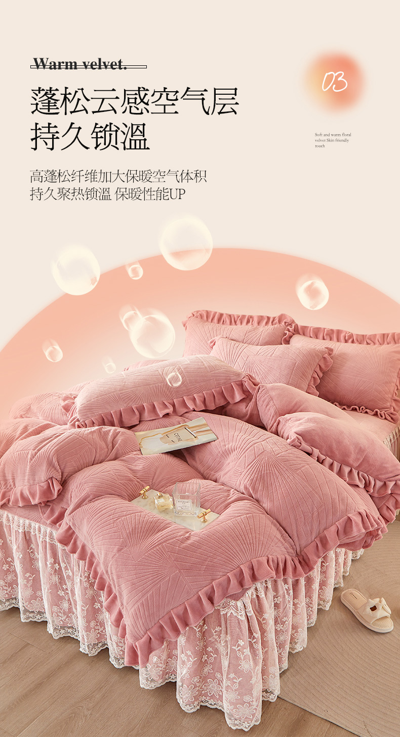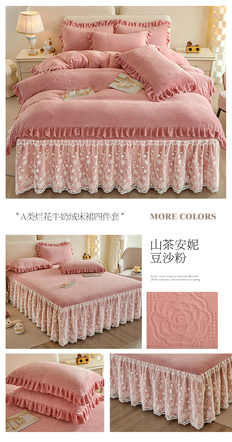 当前位置: 91家纺网 > 商品网购 > 床品套件 > 四件套 > 牛奶绒四件套 > 宜凡 2023新款烂花牛奶绒床裙四件套 山茶安妮-豆沙粉