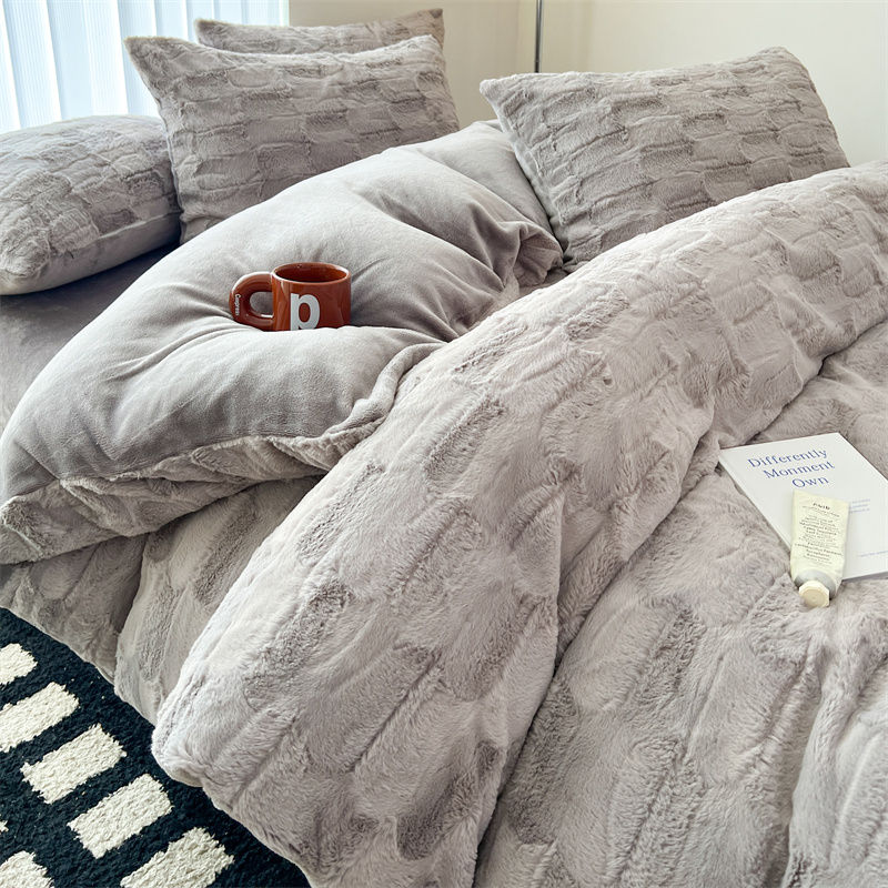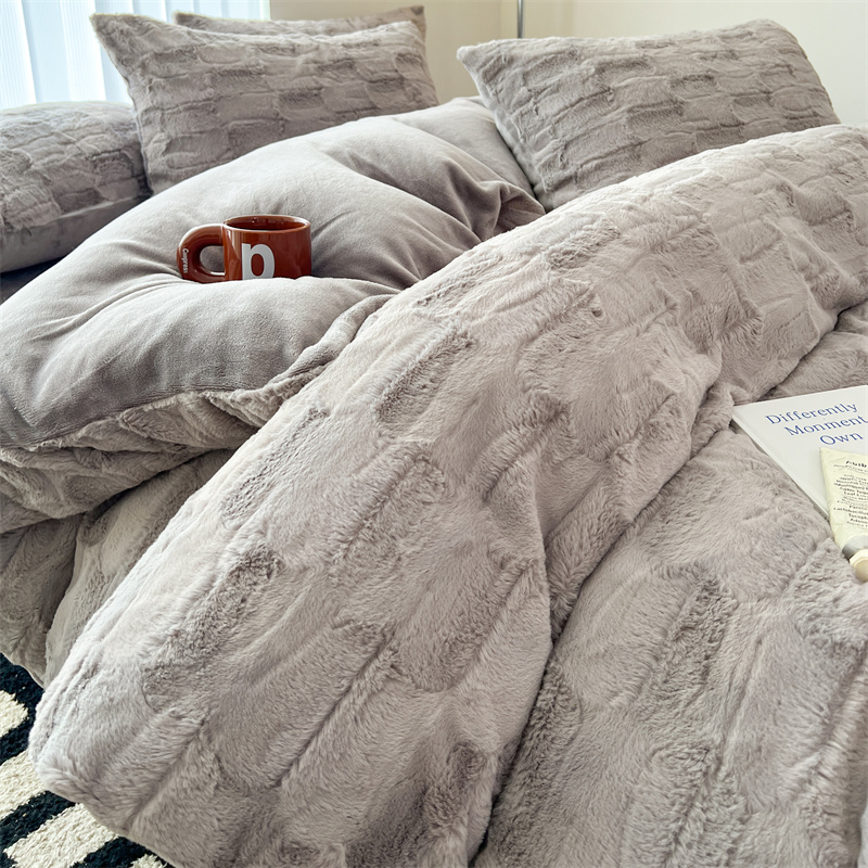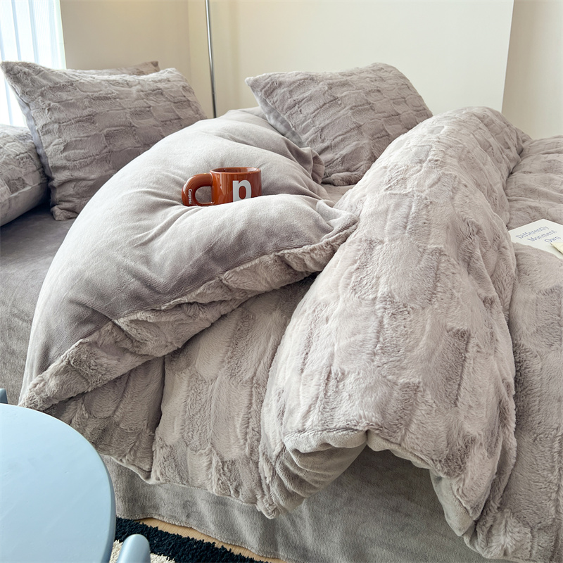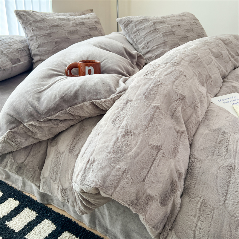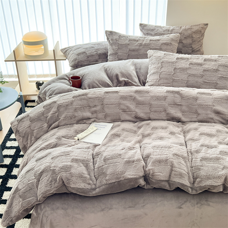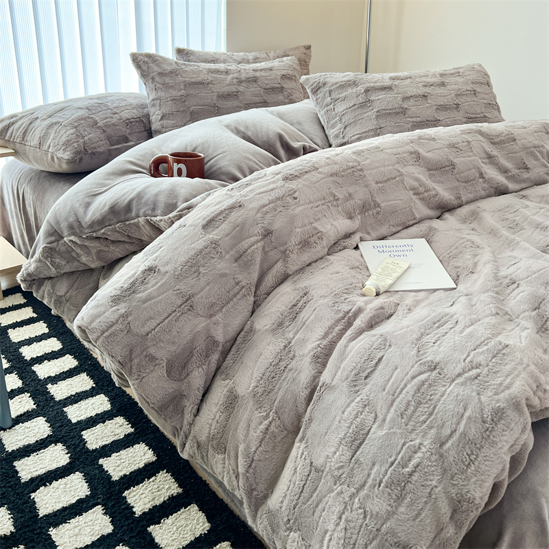 (总)顾里家纺 2025新款美拉德兔毛四件套,斑纹咖,豹纹灰,豹纹咖,蝶影,繁花,格调,花境,花蕊,花语,简爱,玫瑰情话,羽叶