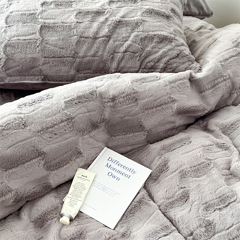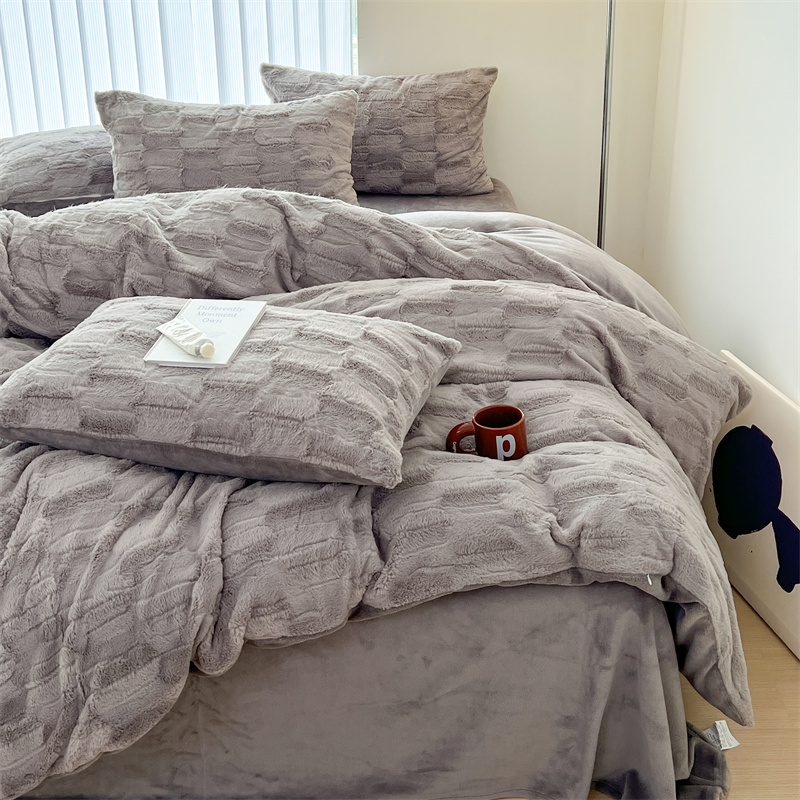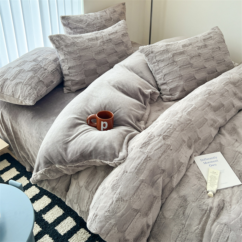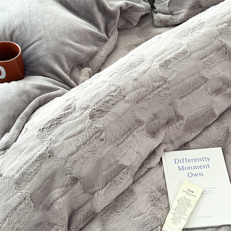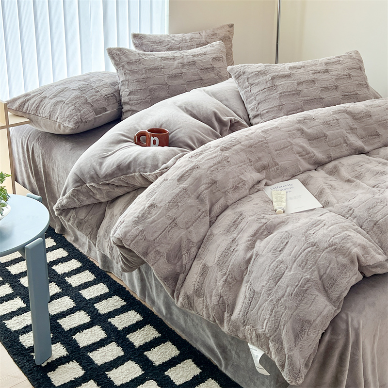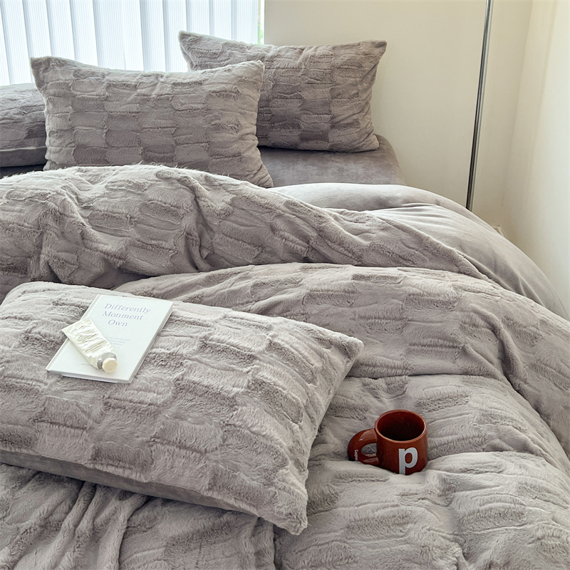(总)顾里家纺 2025新款美拉德兔毛四件套,斑纹咖,豹纹灰,豹纹咖,蝶影,繁花,格调,花境,花蕊,花语,简爱,玫瑰情话,羽叶