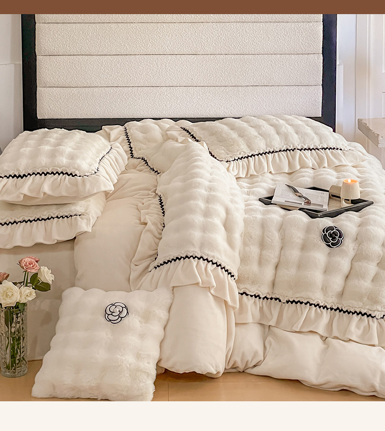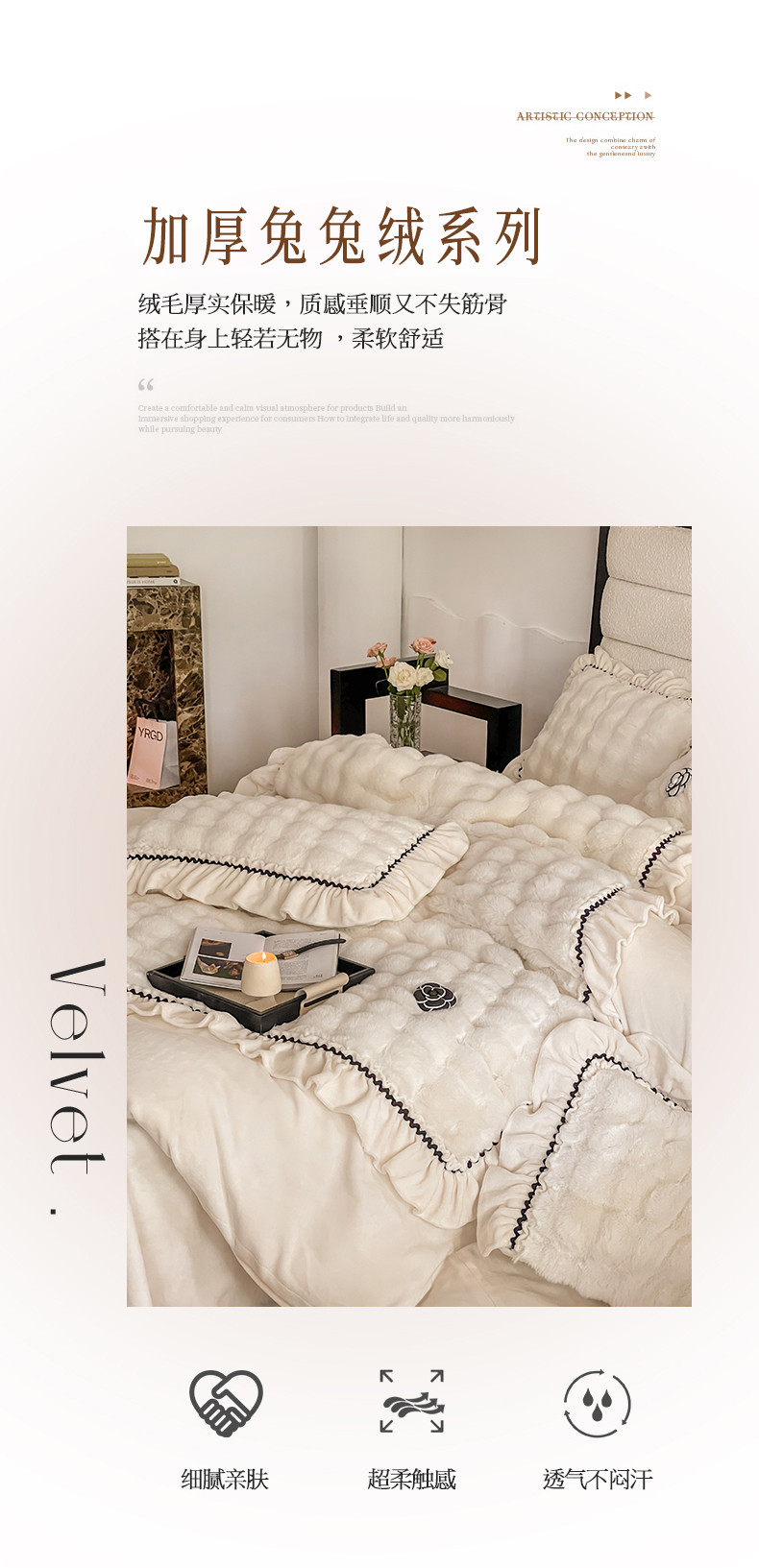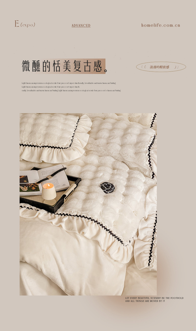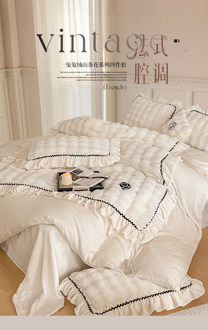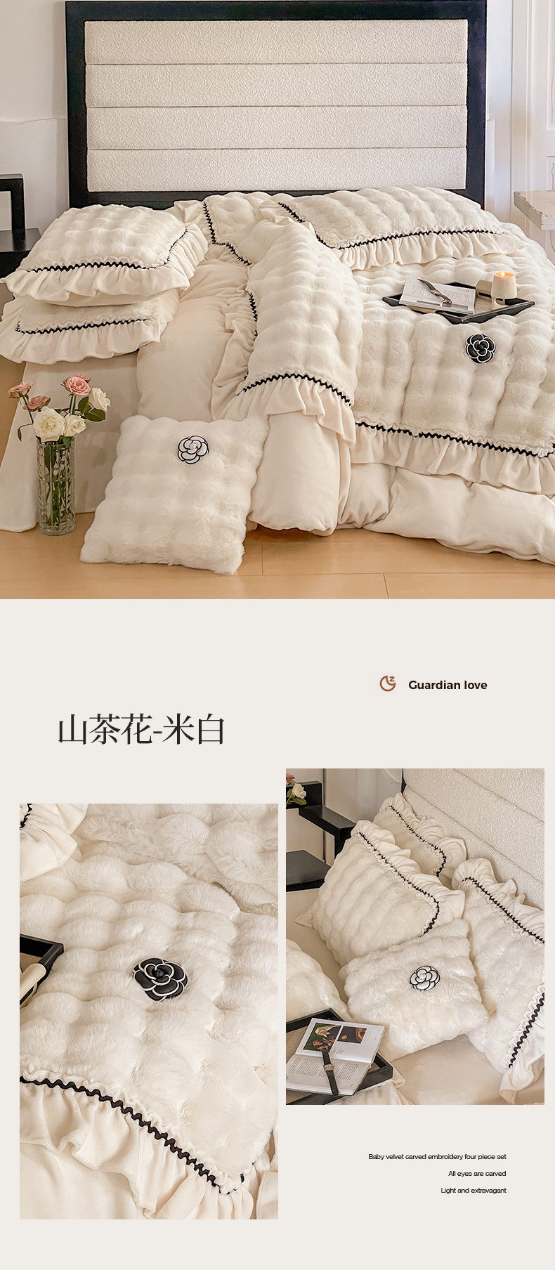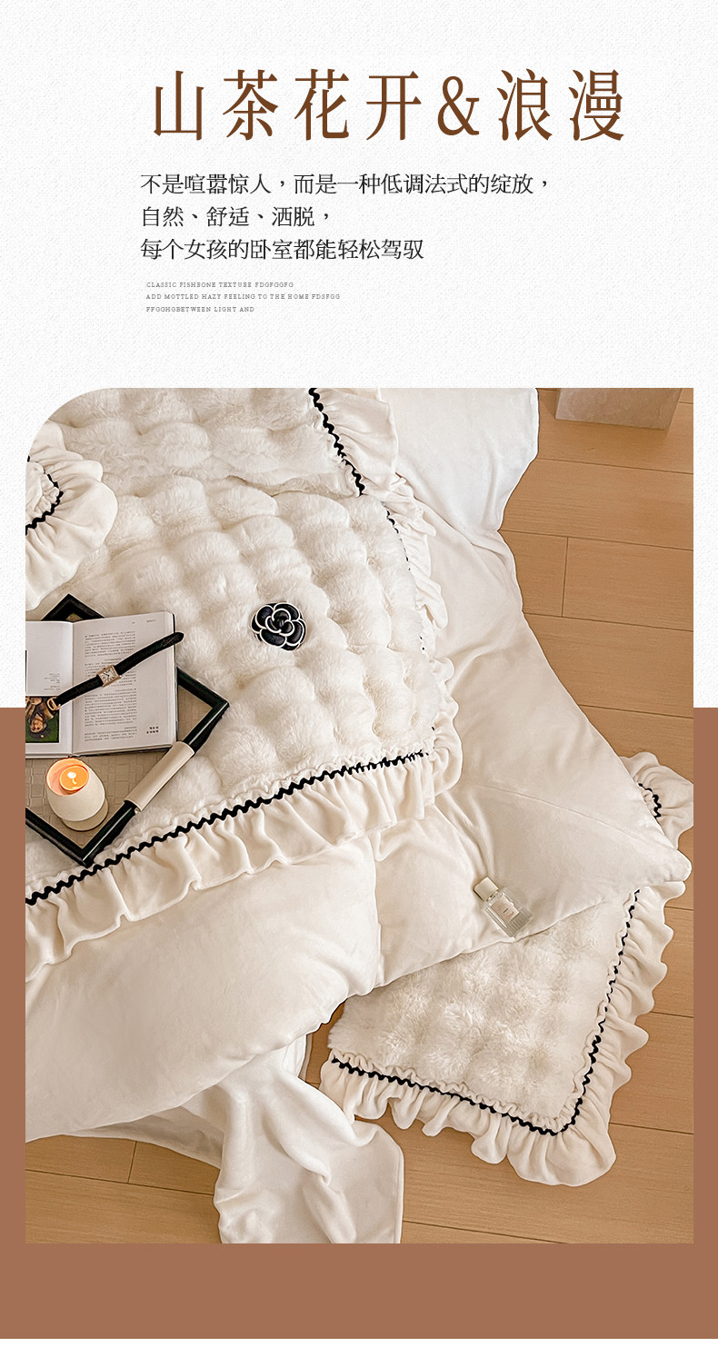 当前位置: 91家纺网 > 商品网购 > 床品套件 > 四件套 > 兔毛绒四件套 > 婳庭家居 2023新款山茶花兔兔绒系列四件套 山茶花-米白