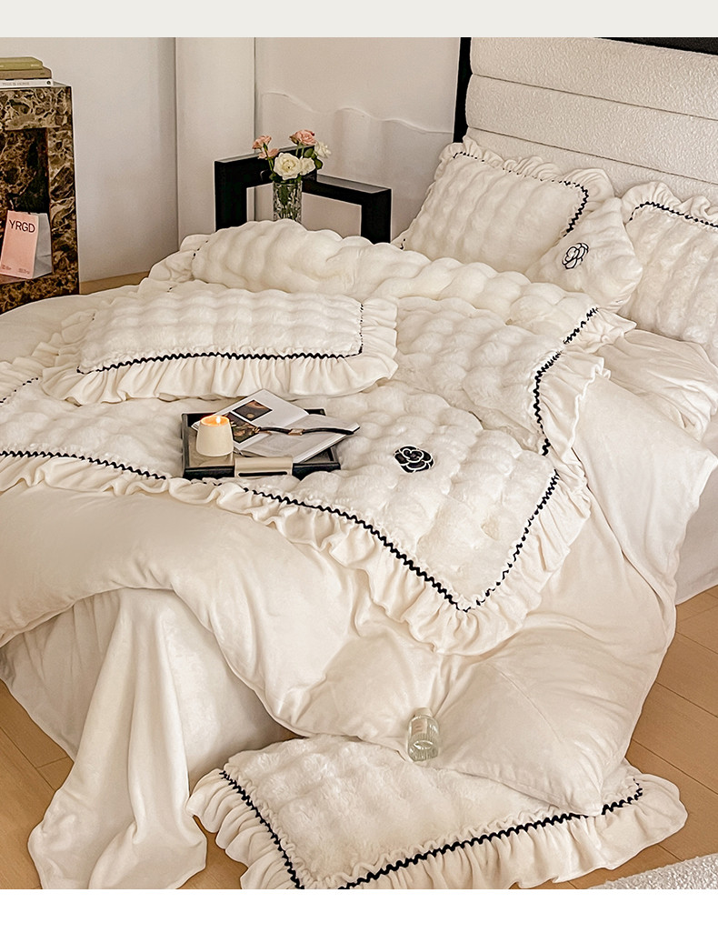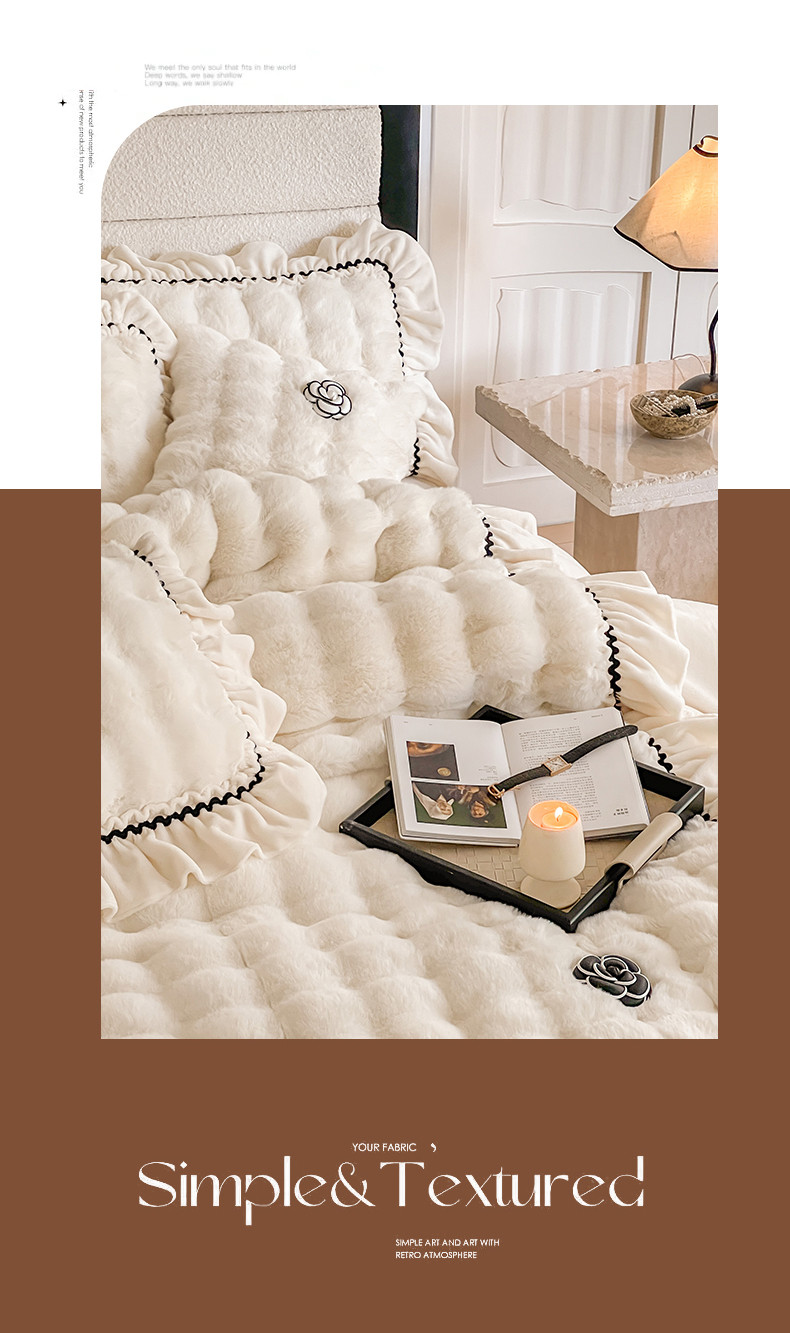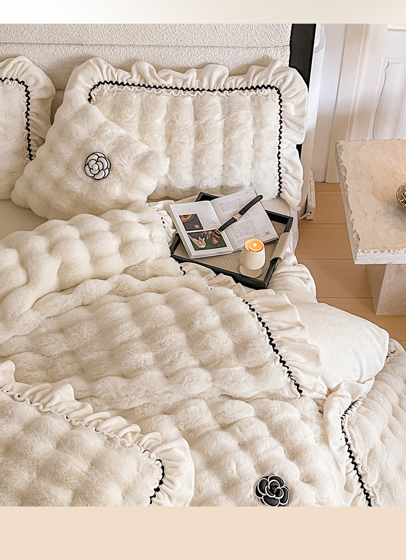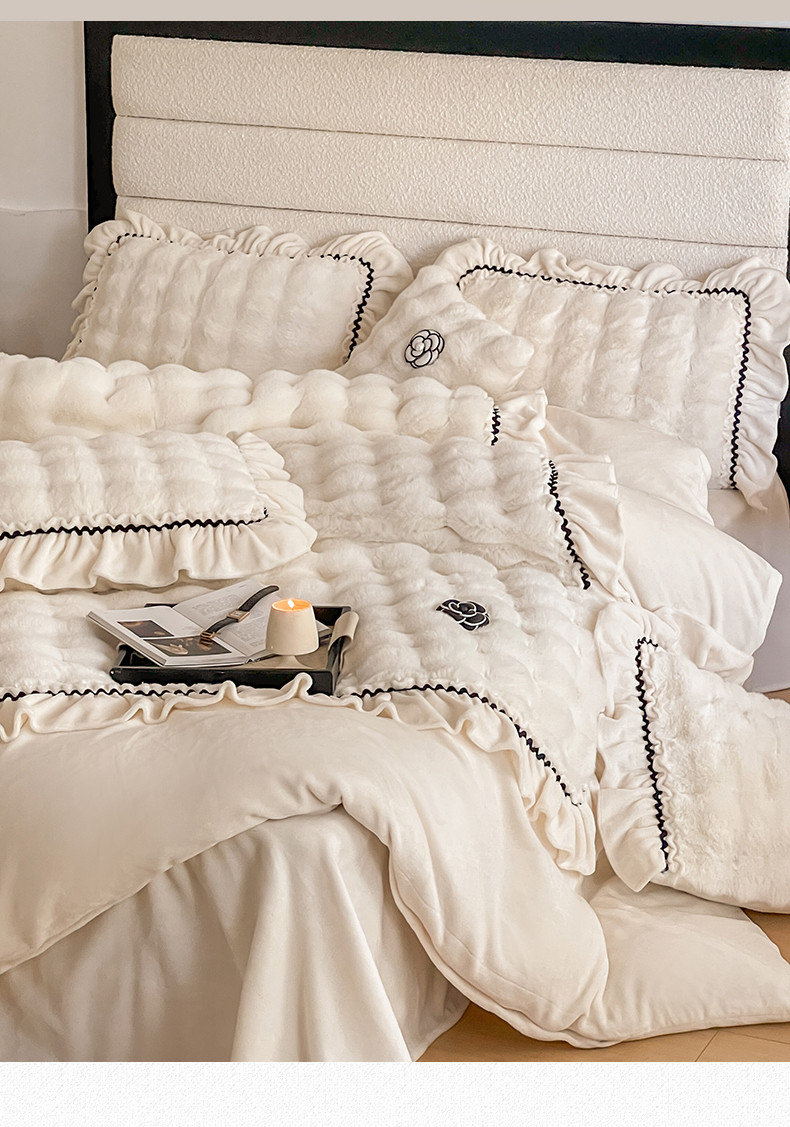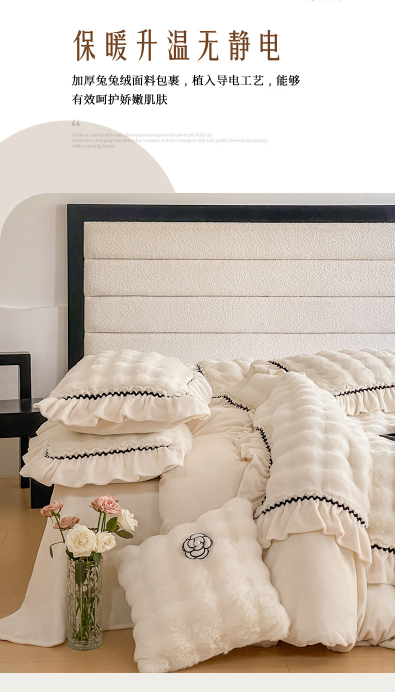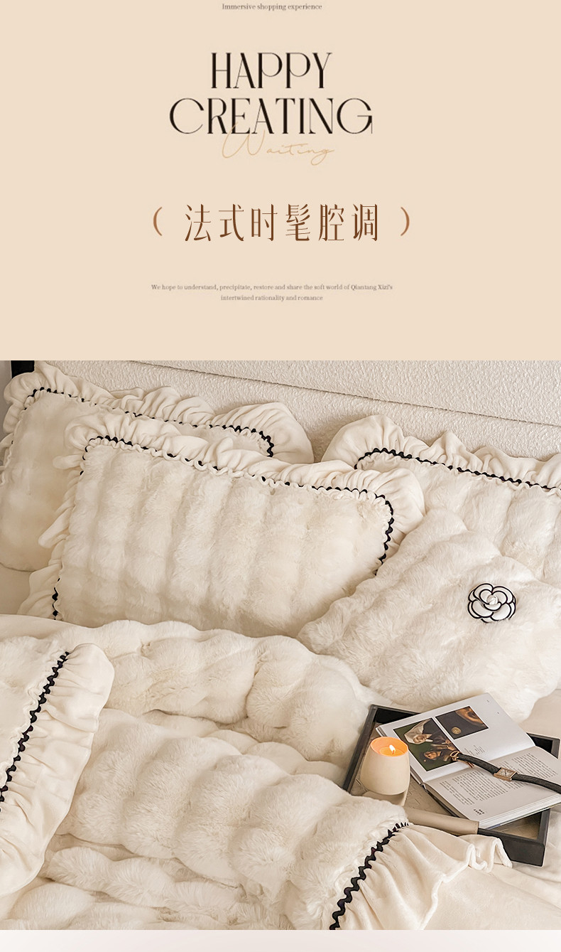 当前位置: 91家纺网 > 商品网购 > 床品套件 > 四件套 > 兔毛绒四件套 > 婳庭家居 2023新款山茶花兔兔绒系列四件套 山茶花-米白