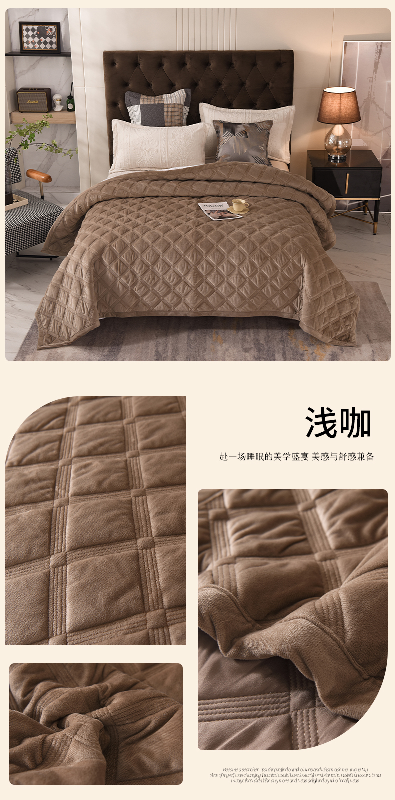 商品名称:恩和家纺 2024新款水晶绒牛奶绒法兰绒床盖方格款 方格款-浅咖