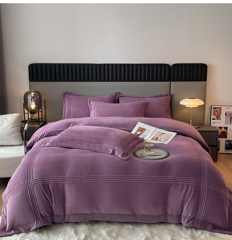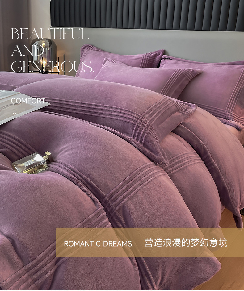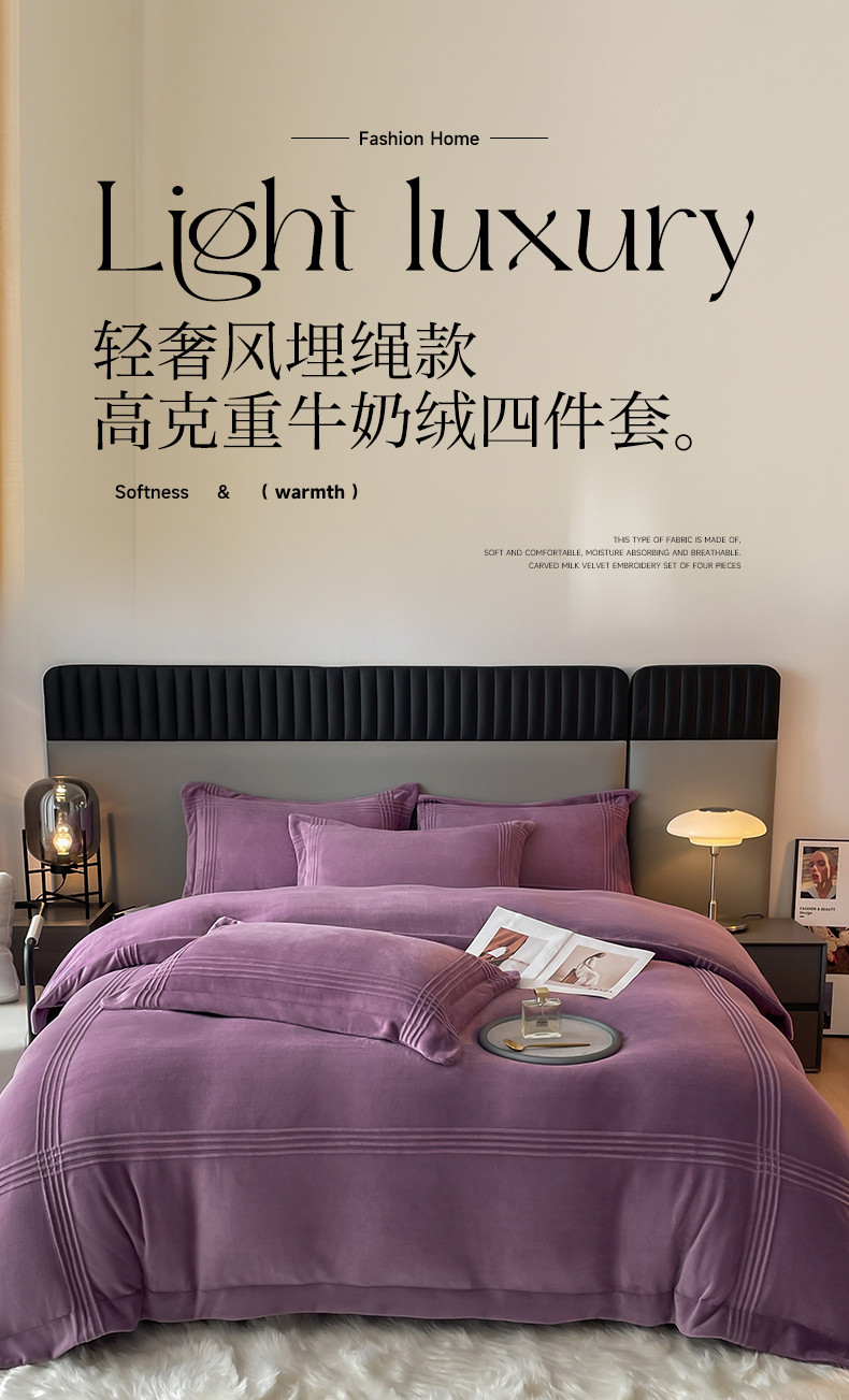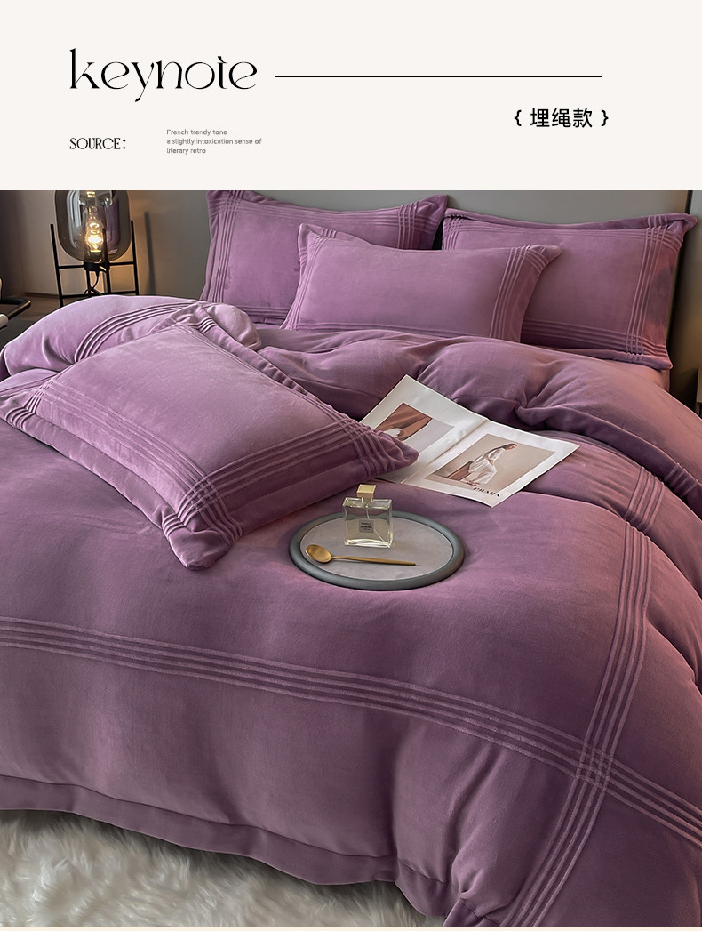 米瑞娜 2024新款轻奢风埋绳款高克重牛奶绒四件套 美娜德-薇紫
