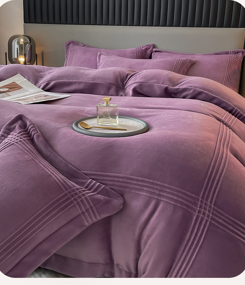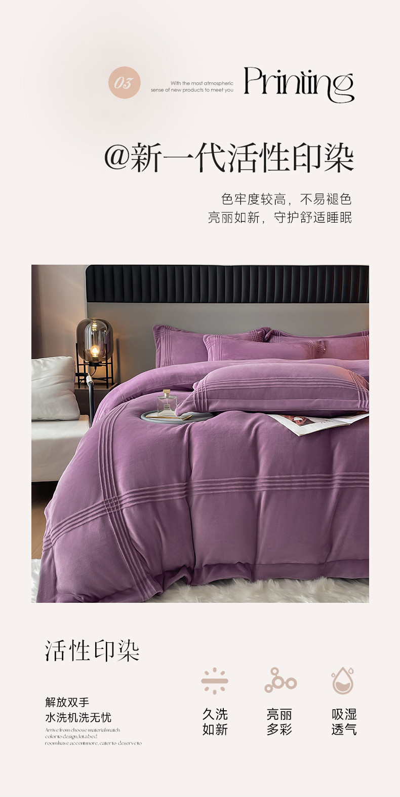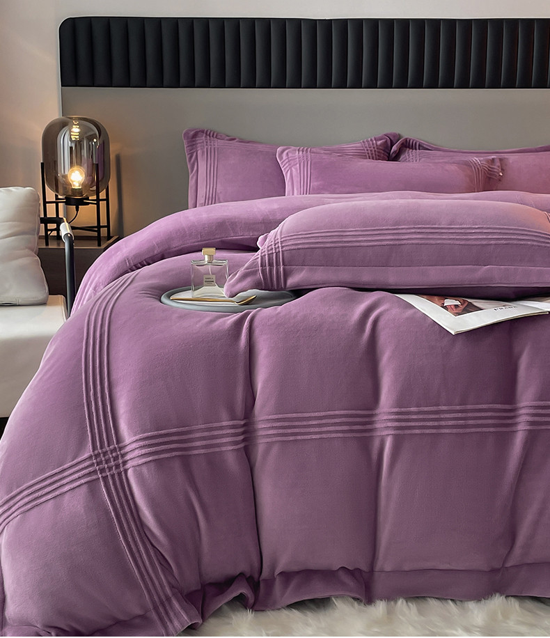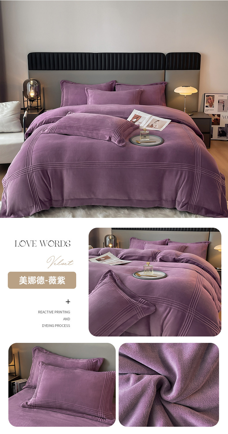 米瑞娜 2024新款轻奢风埋绳款高克重牛奶绒四件套 美娜德-薇紫