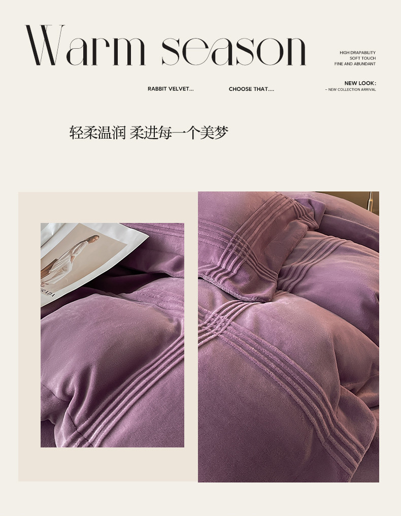 商品名称:米瑞娜 2024新款轻奢风埋绳款高克重牛奶绒四件套 美娜德-薇紫