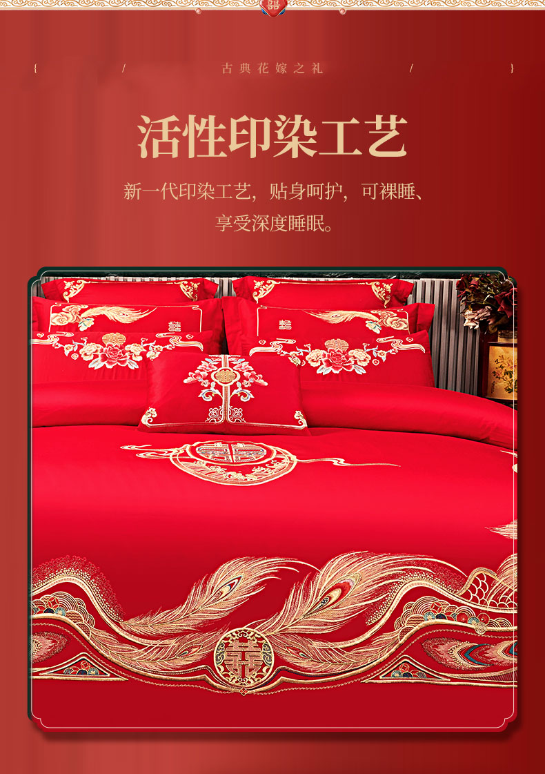 (总)皇潮婚庆馆 2025新款A类布款全棉刺绣婚庆四件套系列,花辰喜盈,百子送喜,龙悦凤鸣,喜事连连,喜迎鸿运