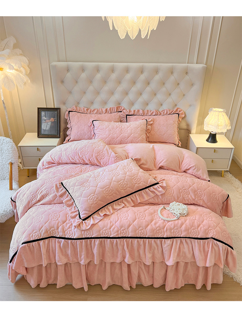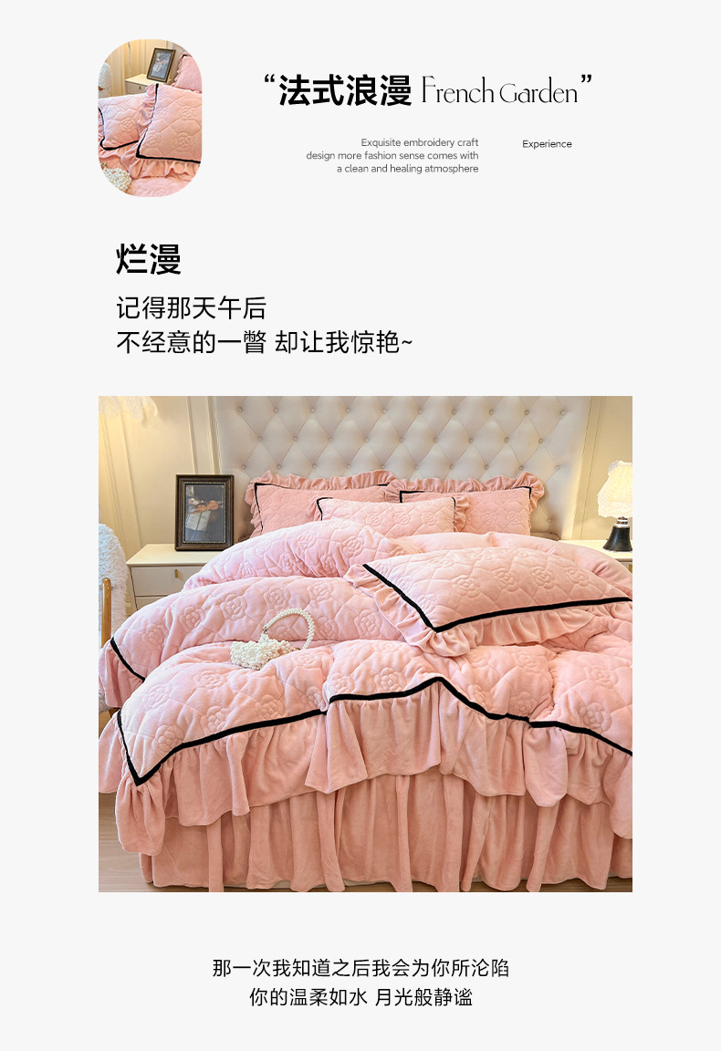 当前位置: 91家纺网 > 商品网购 > 床品套件 > 四件套 > 牛奶绒四件套 > 网红馆 2025新款高克重加厚保暖牛奶绒法式大花边四件套-眷恋 眷恋-少女粉