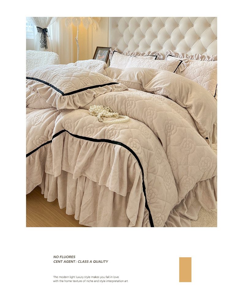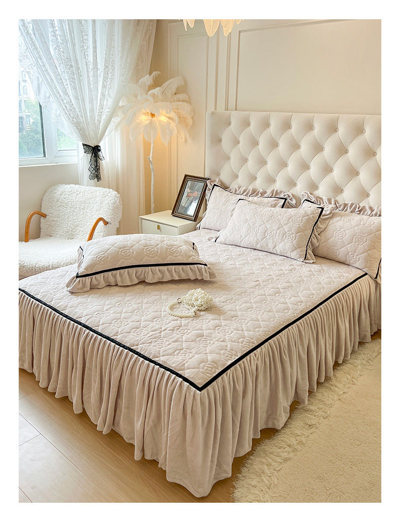 网红馆 2025新款高克重加厚保暖牛奶绒眷恋系列单床裙 眷恋-米卡其
