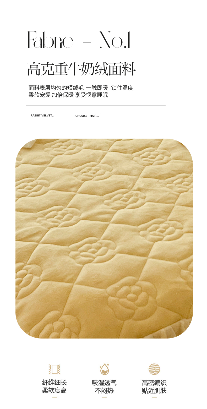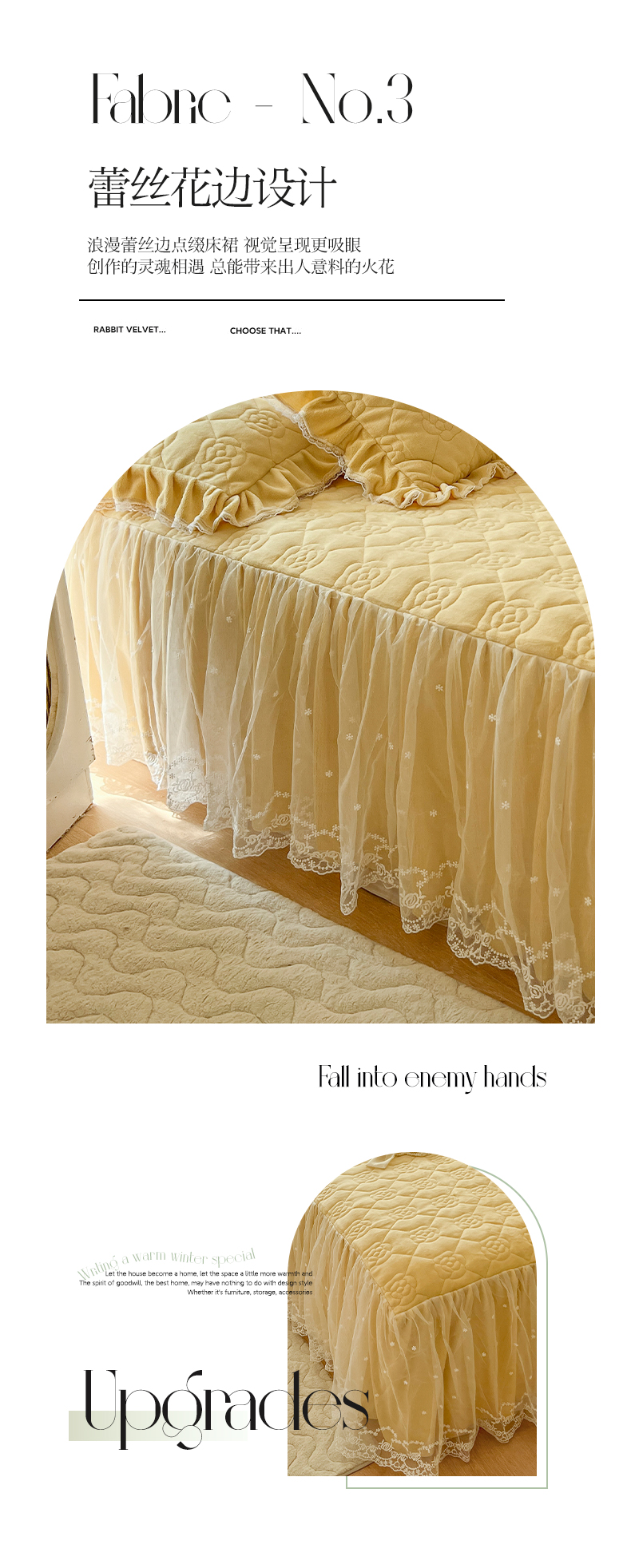 • 91家纺网 家纺一手货源 找家纺 网红馆 2025新款高克重牛奶绒花边单床裙-山茶系列 山茶-黄