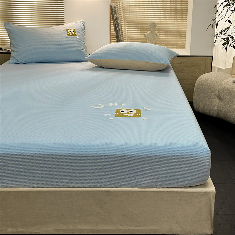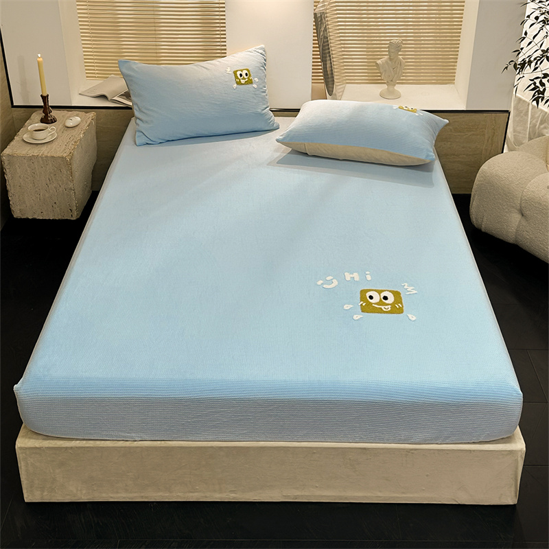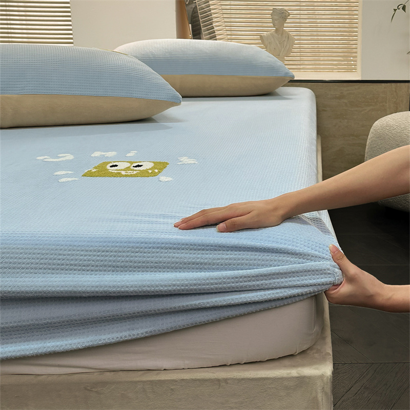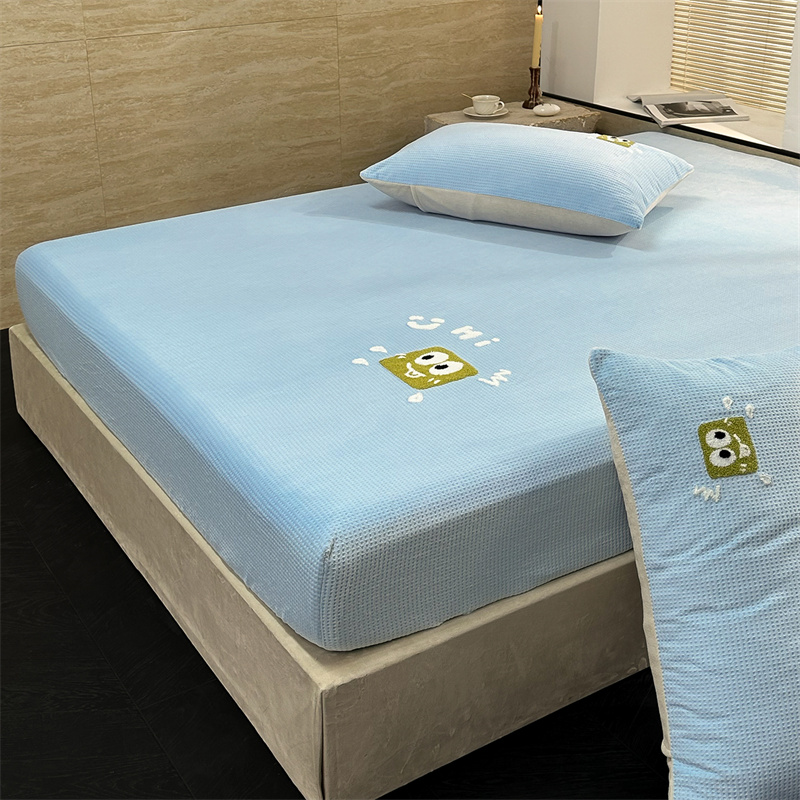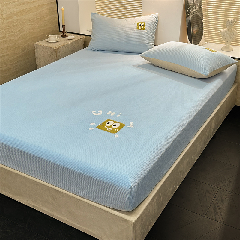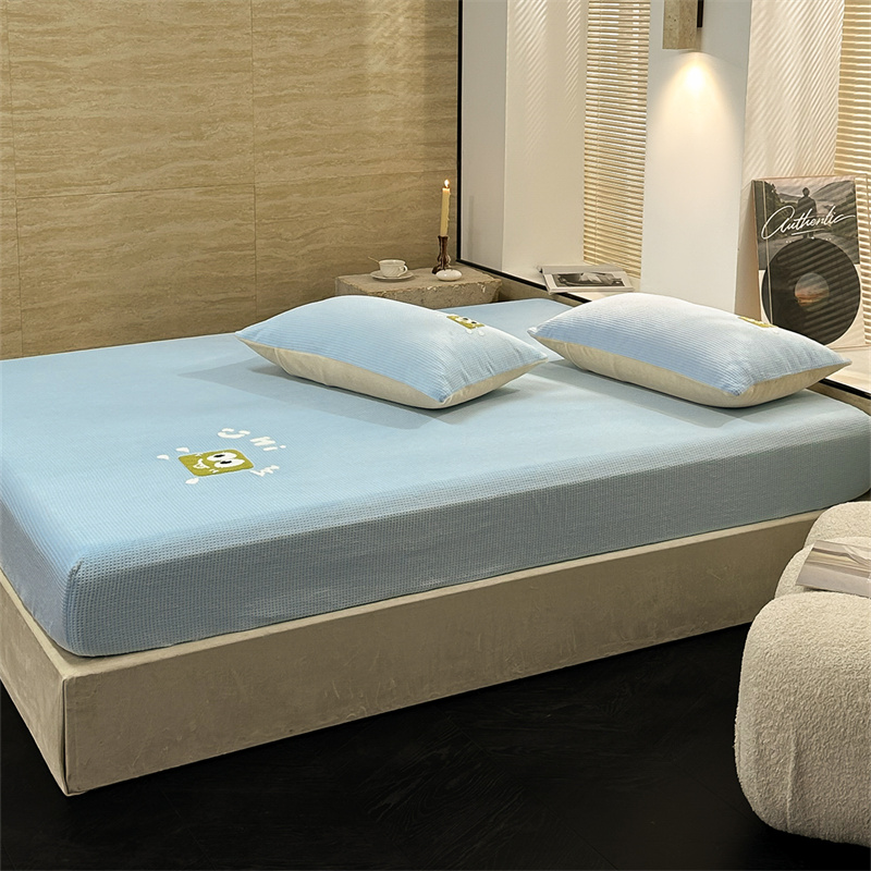 洋铭区(原狠狠爱)2023新款华夫格单品绒床笠 华夫格 浅蓝