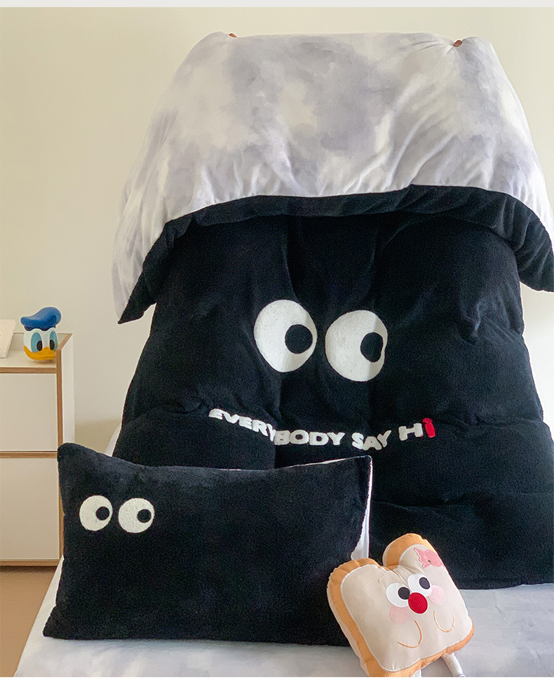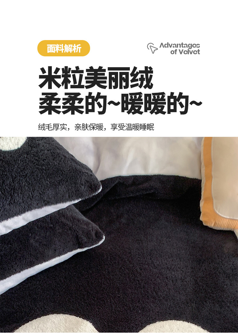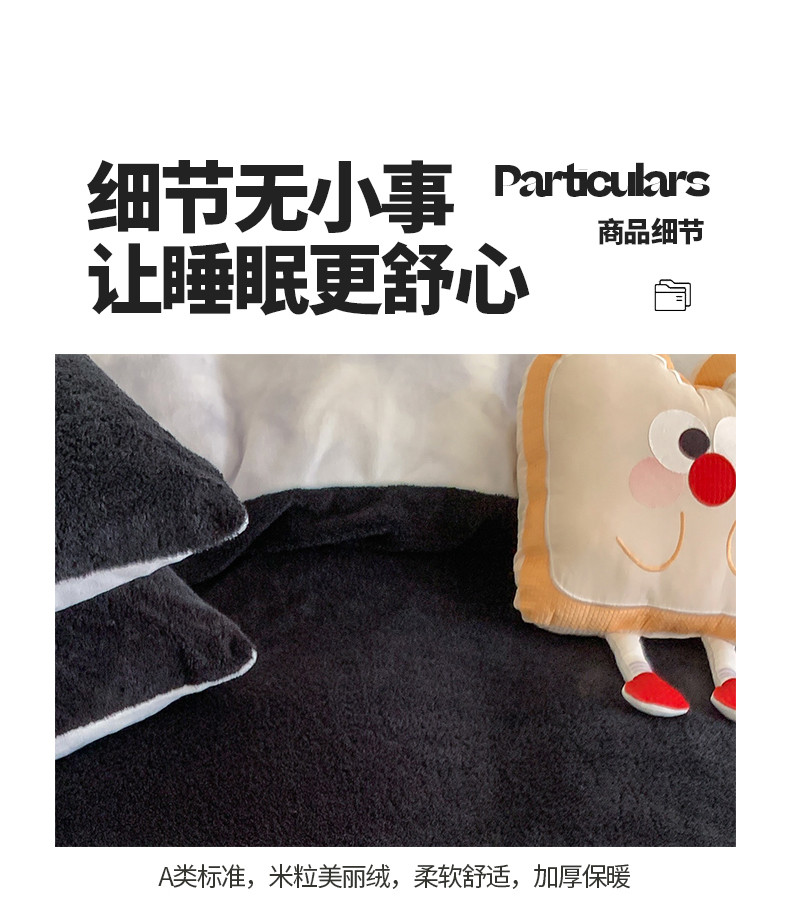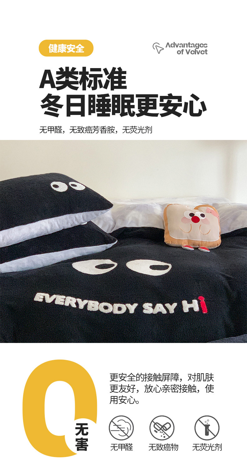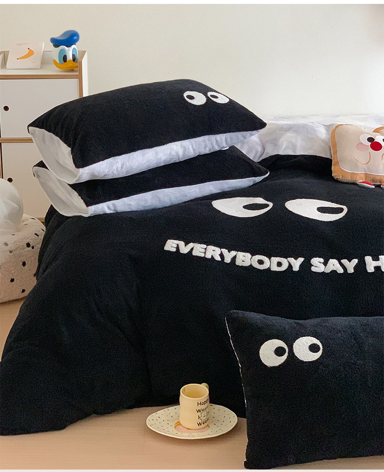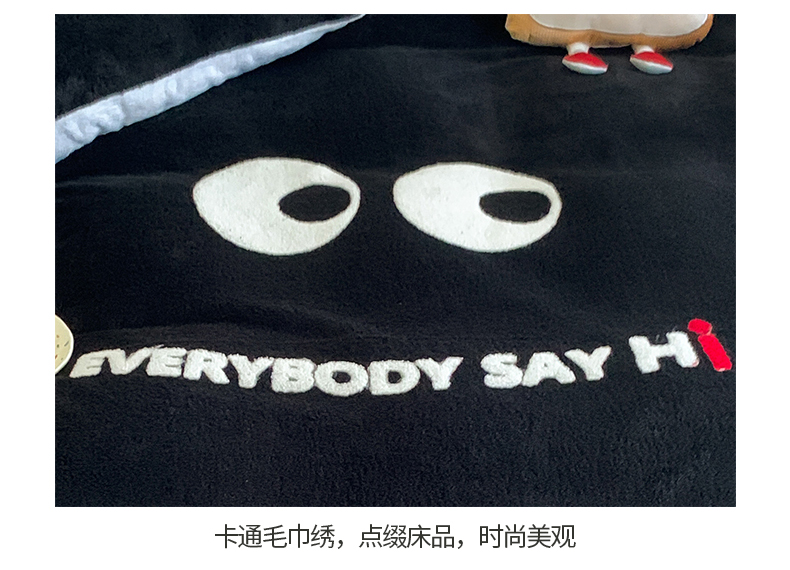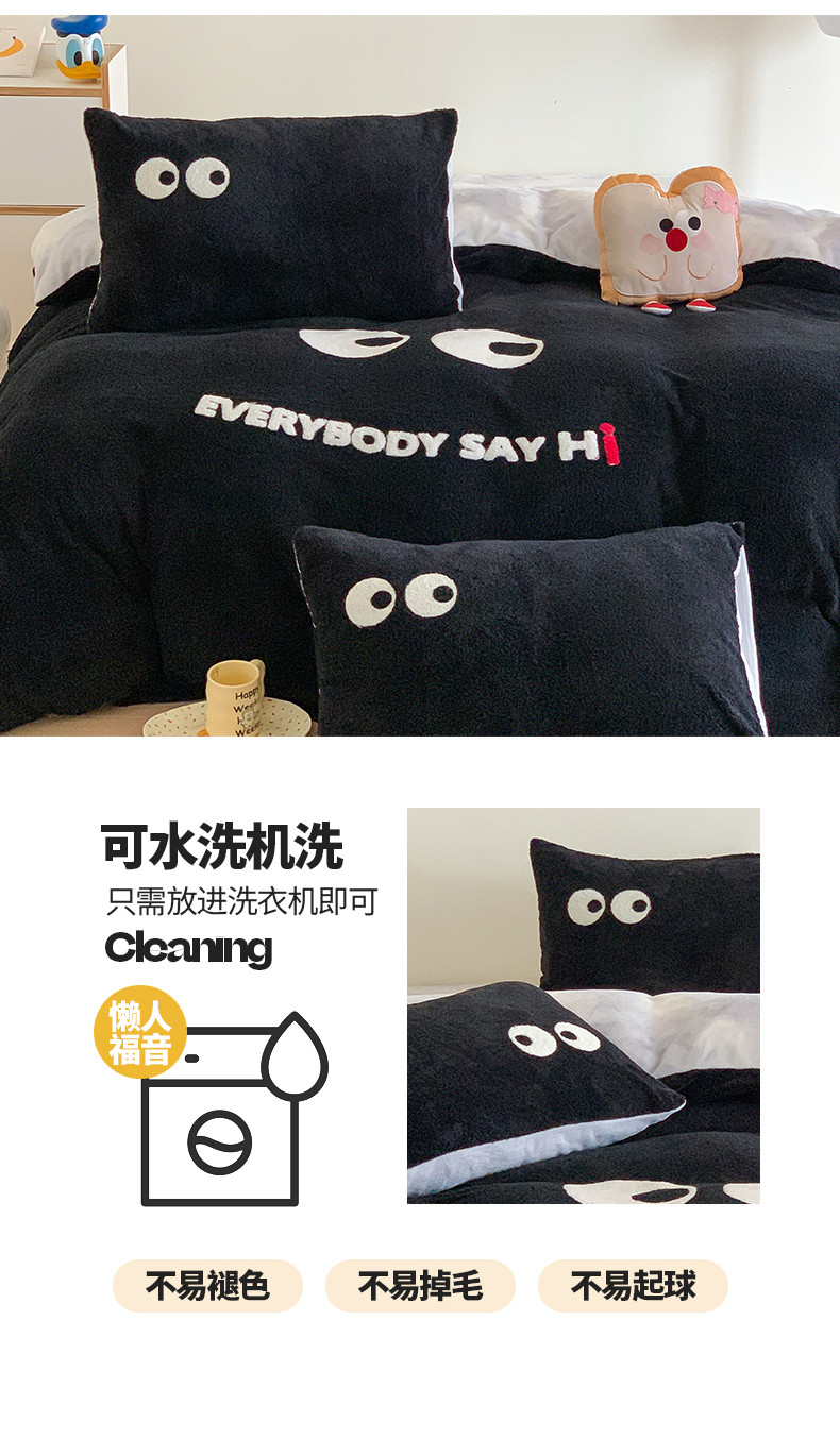 桃子家居 2023新款A类高克重毛巾绣刺绣米粒美丽绒牛奶绒四件套 绒毛巾绣-黑眼豆豆