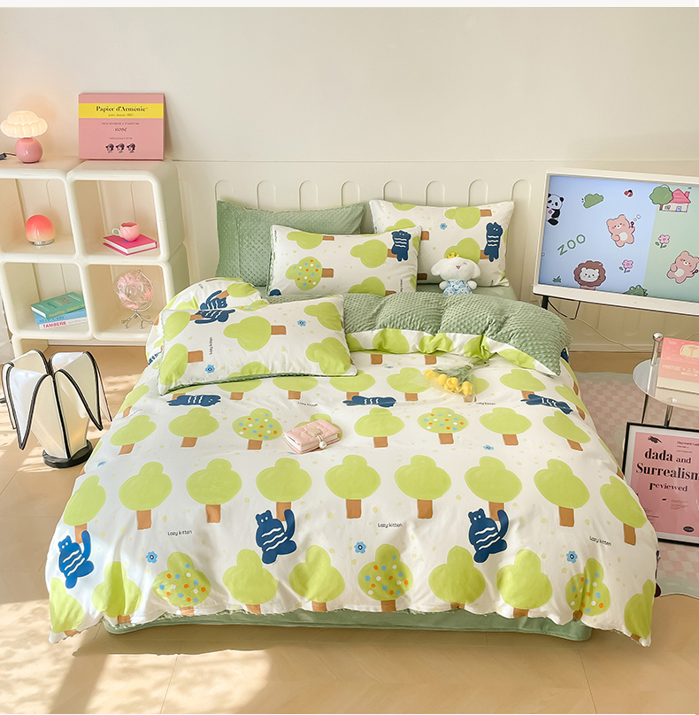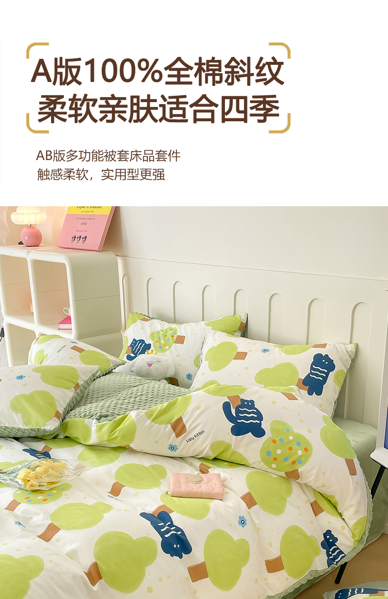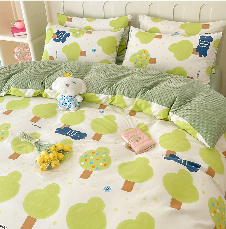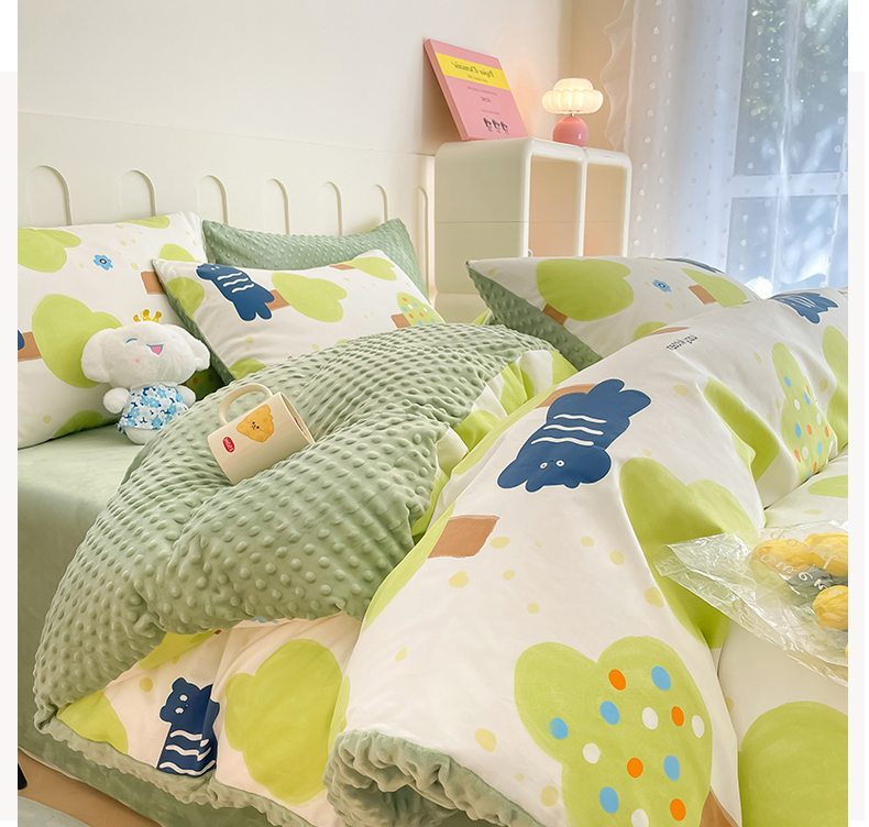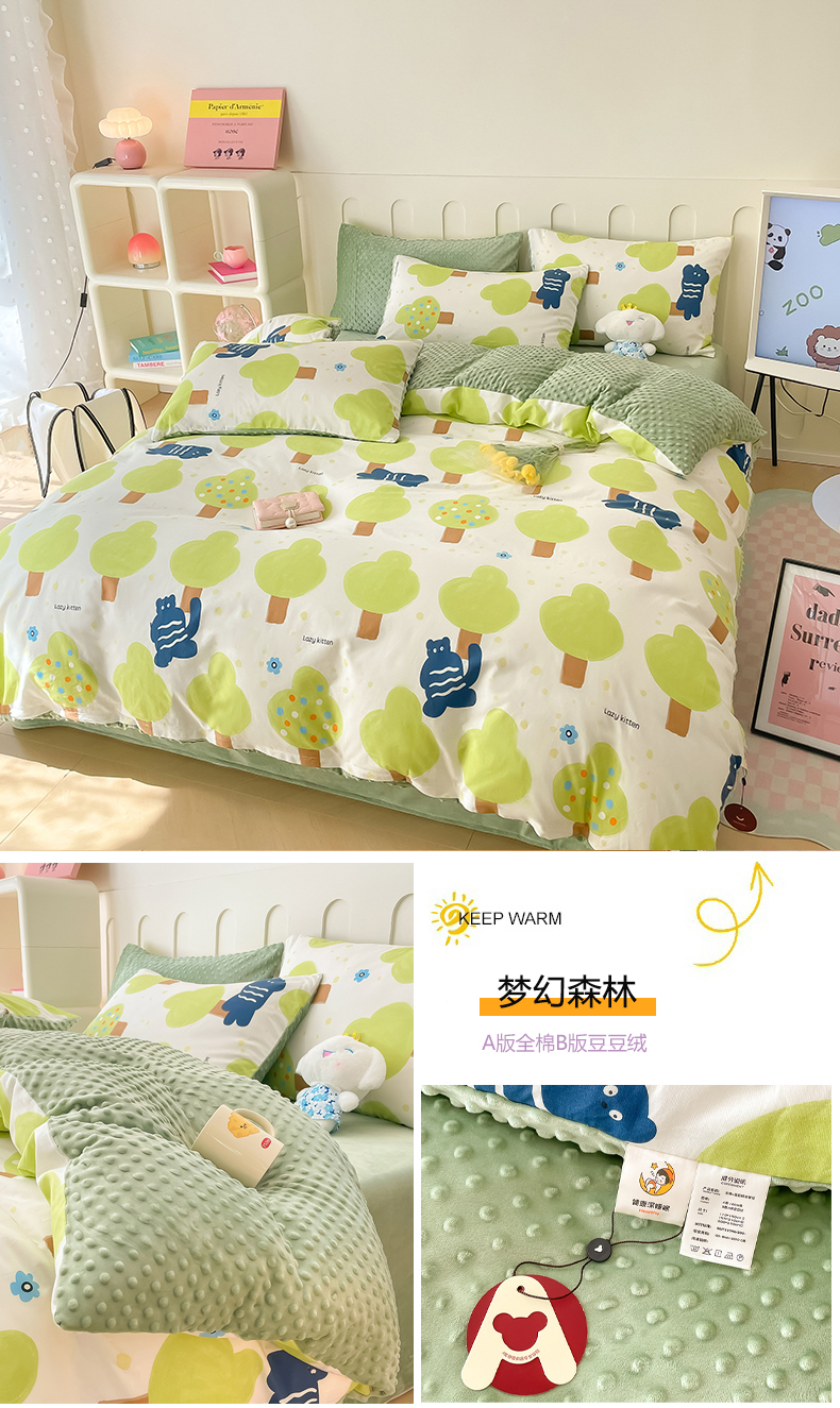 当前位置: 91家纺网 > 商品网购 > 床品套件 > 四件套 > 全棉普通四件套 > 麦伦家居 2023秋冬新品多功能床品全棉+豆豆绒四件套卡通小清新系列 梦幻森林