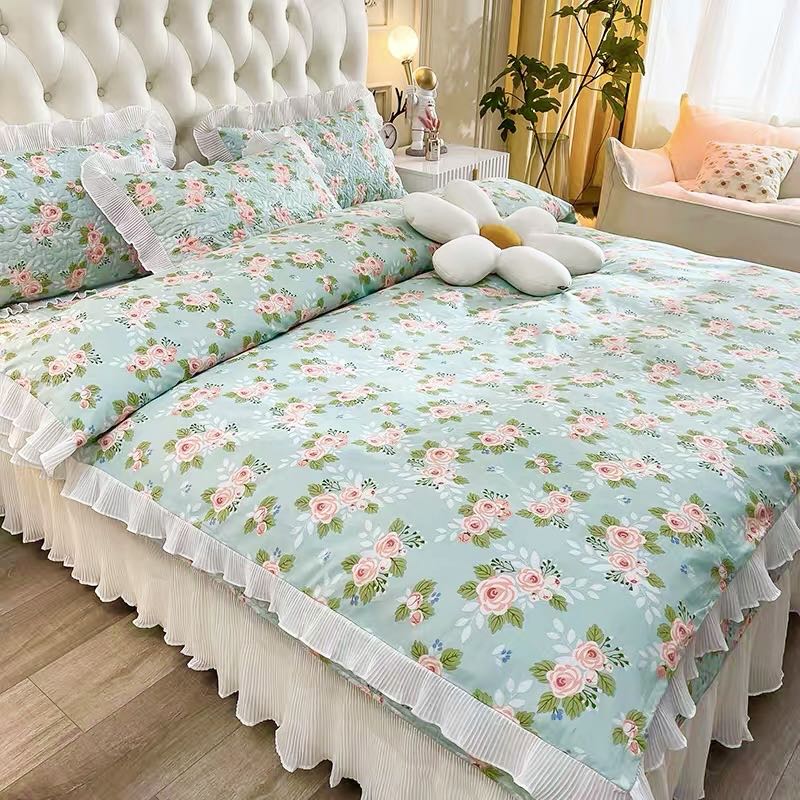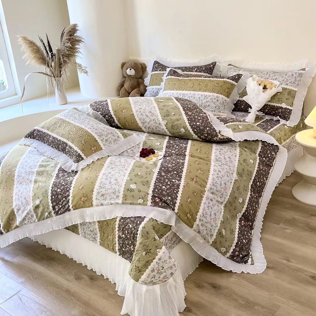 (总)赫本纯棉床盖三件套 韩国碎花纯棉床盖三件套全棉夹棉床单花边可机洗,泡芙小花,瑶香,暖阳春绿,私物,云香兰,花锦,木槿紫,莉莉安 ,落棠,蒂芙尼 ,小苍兰,吉吉兔 ,粉花蔓,慕斯兰 ,秋茗,梨花落