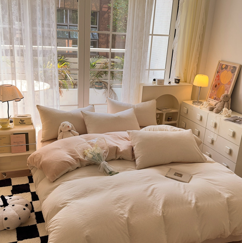 当前位置: 91家纺网 > 商品网购 > 床品套件 > 四件套 > 牛奶绒四件套 > 柠萌 2023新款全棉色织水洗棉加牛奶绒四件套全棉拼牛奶绒棉+绒米密条