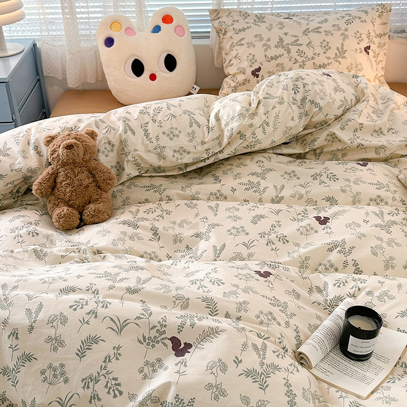 昔可 2023新款全棉小清新兔子四件套 小松鼠