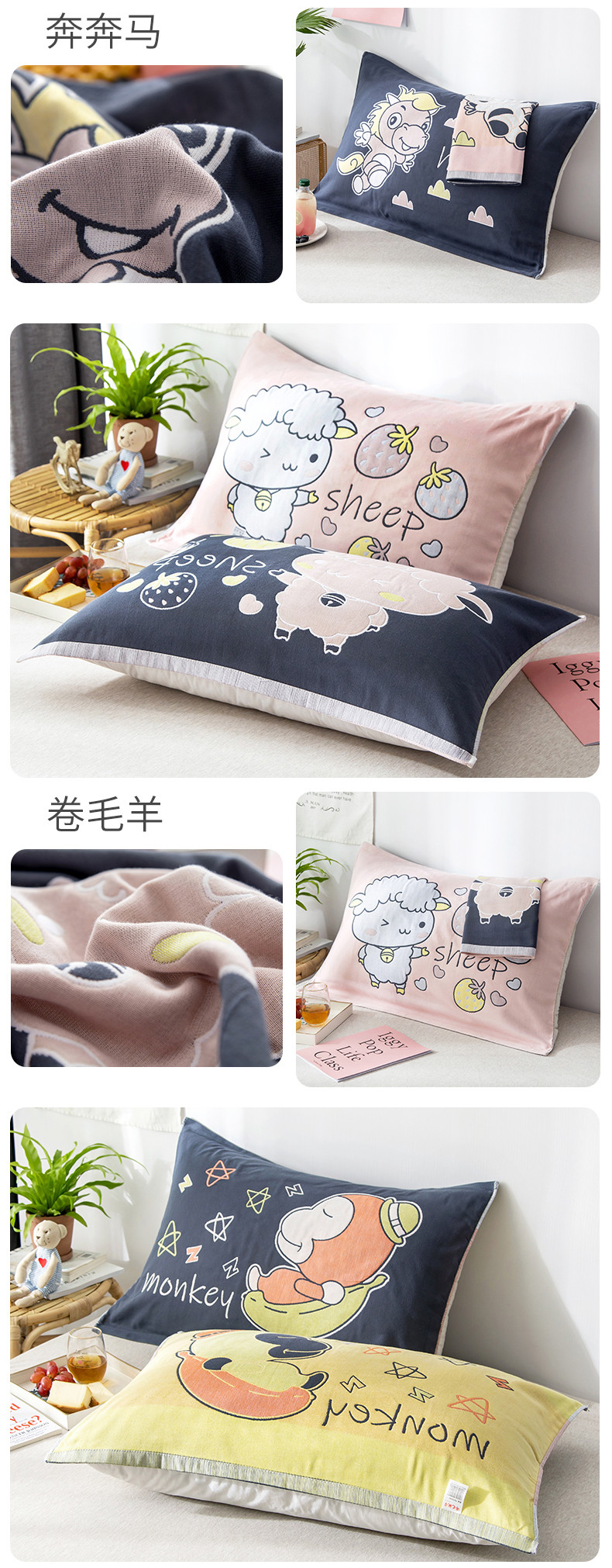当前位置: 91家纺网 > 商品网购 > 床上用品 > 枕巾 > 朴尔家纺 2023新款儿童定位卡通大版花全棉四层纱布枕巾 香蕉猴