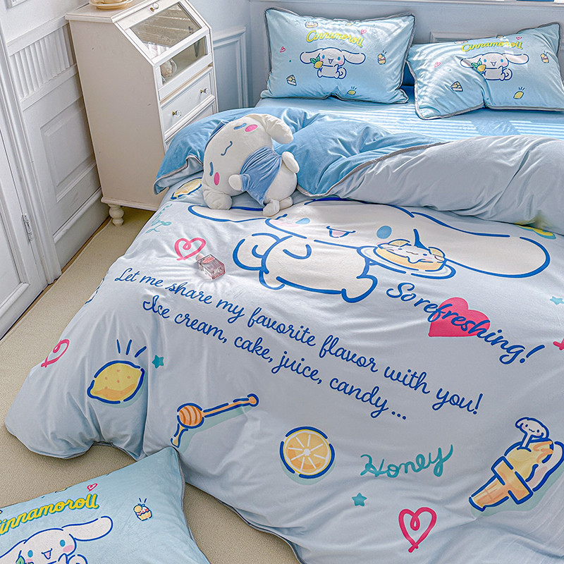 当前位置: 91家纺网 > 商品网购 > 床品套件 > 四件套 > 宝宝绒四件套 > 蘭菲家纺 2023新款宝宝绒卡通印花四件套及单品 圆宝