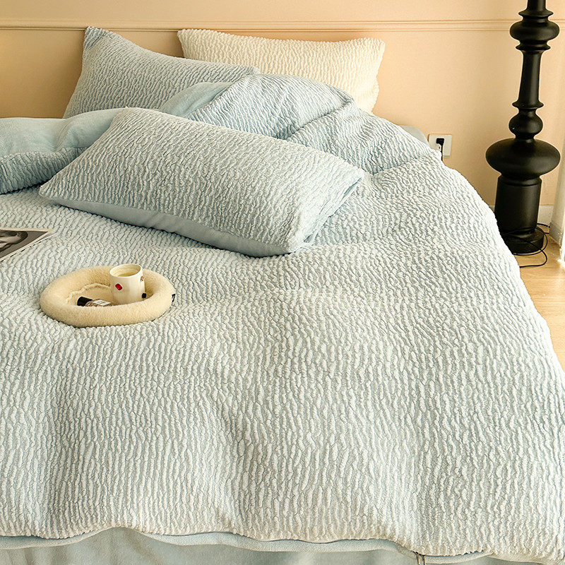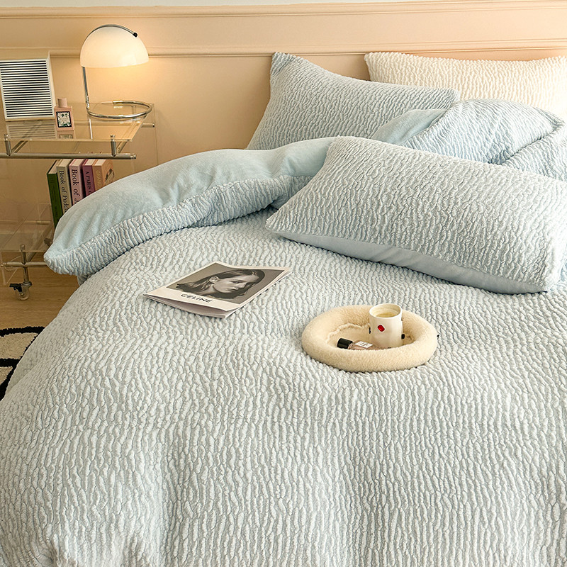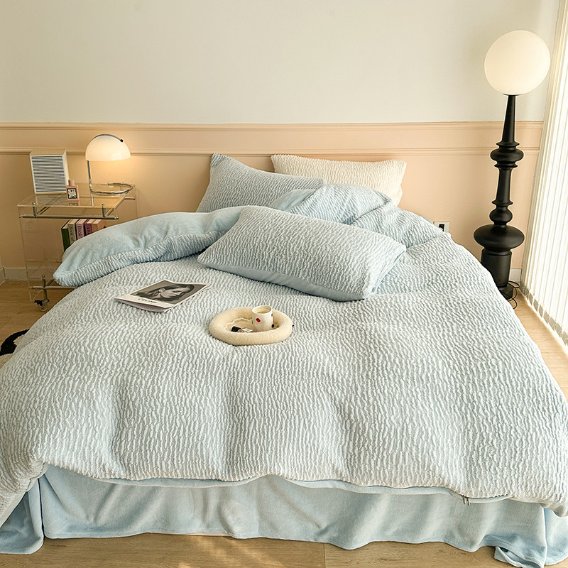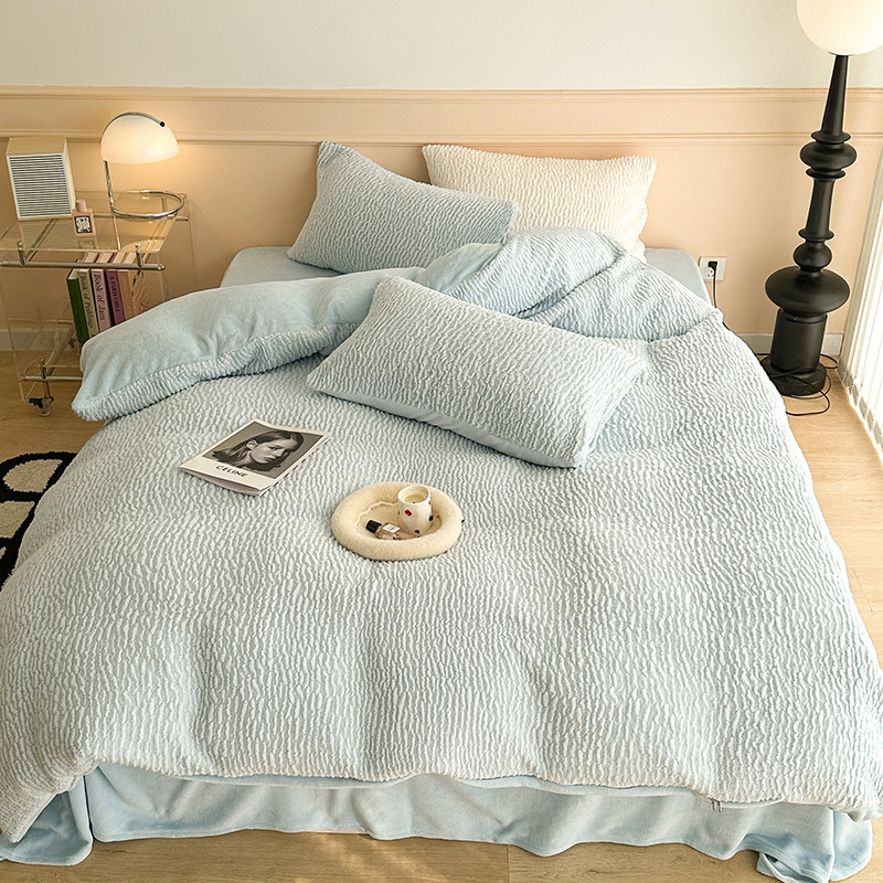 昔可 2023新款纯色泡芙云朵绒四件套 baby蓝