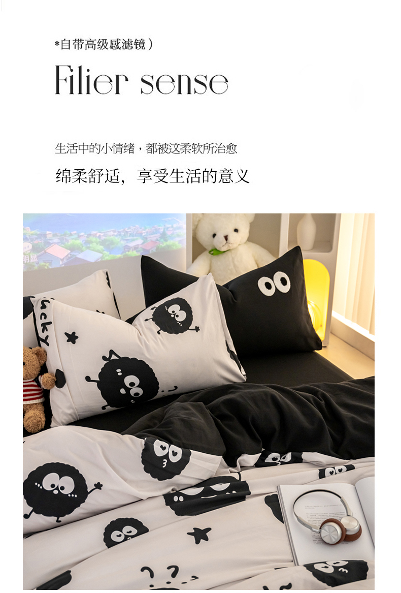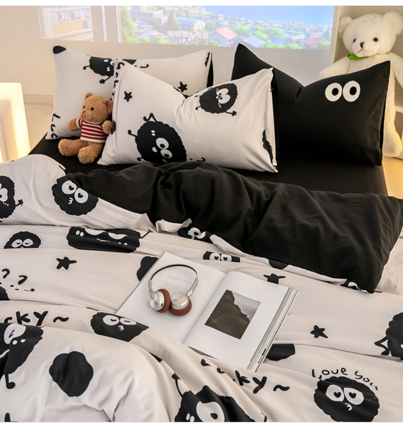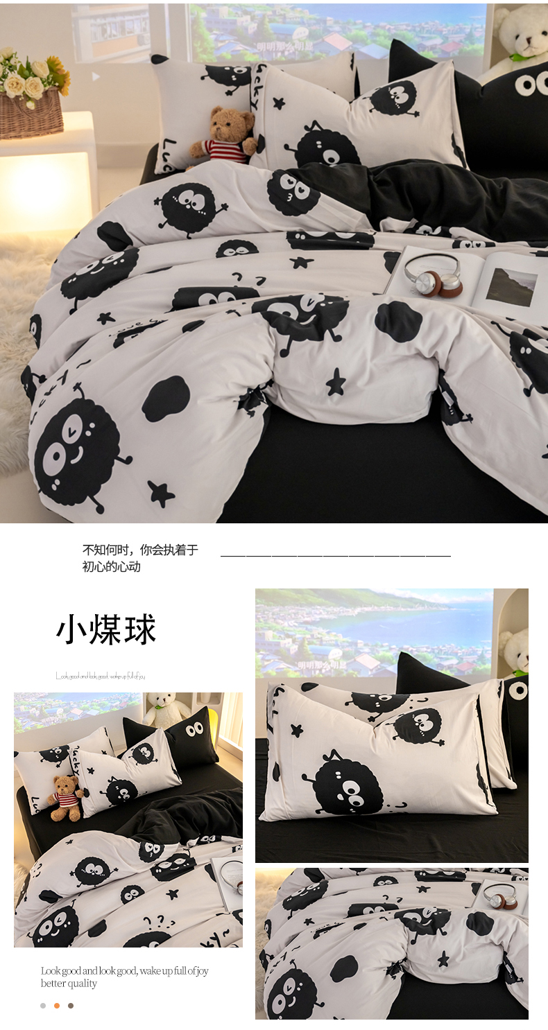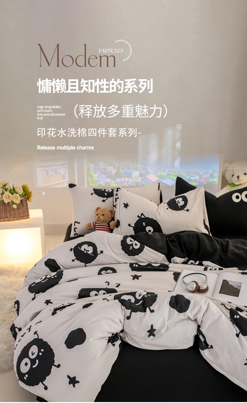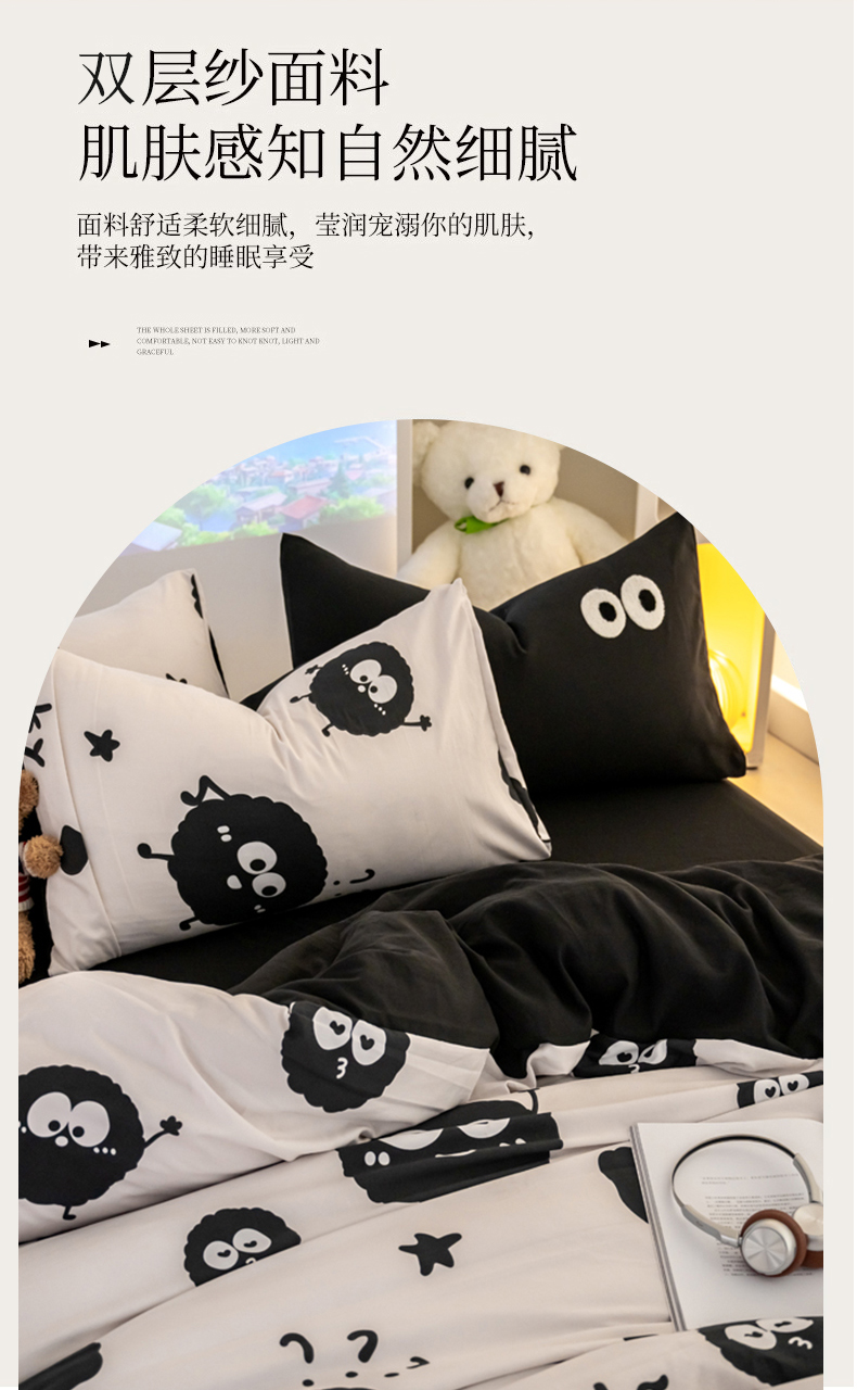 当前位置: 91家纺网 > 商品网购 > 床品套件 > 四件套 > 全棉普通四件套 > 韩秀家纺 2024新款超柔水洗棉双层纱大眼睛款印花四件套 小煤球
