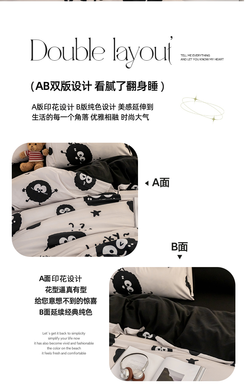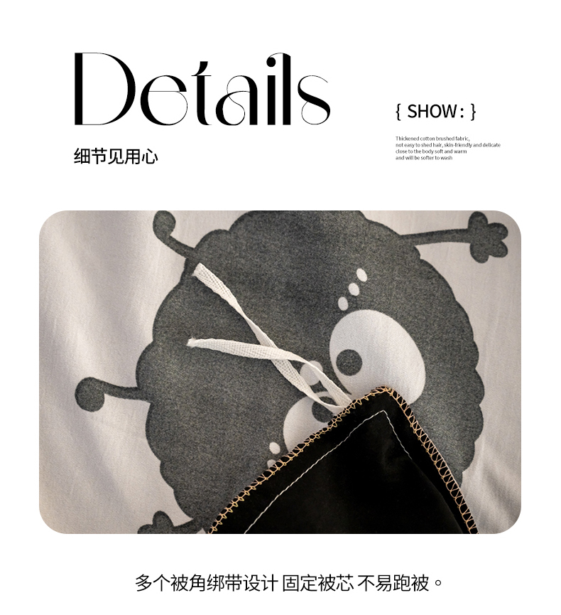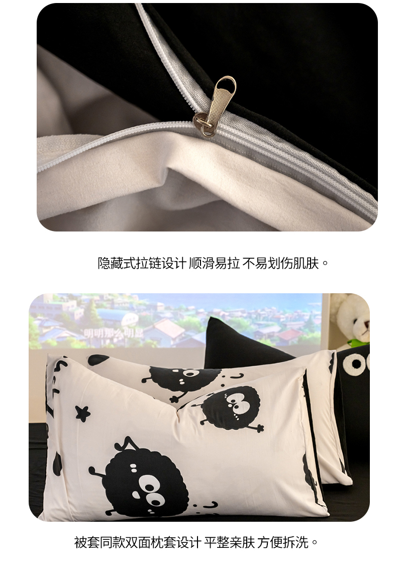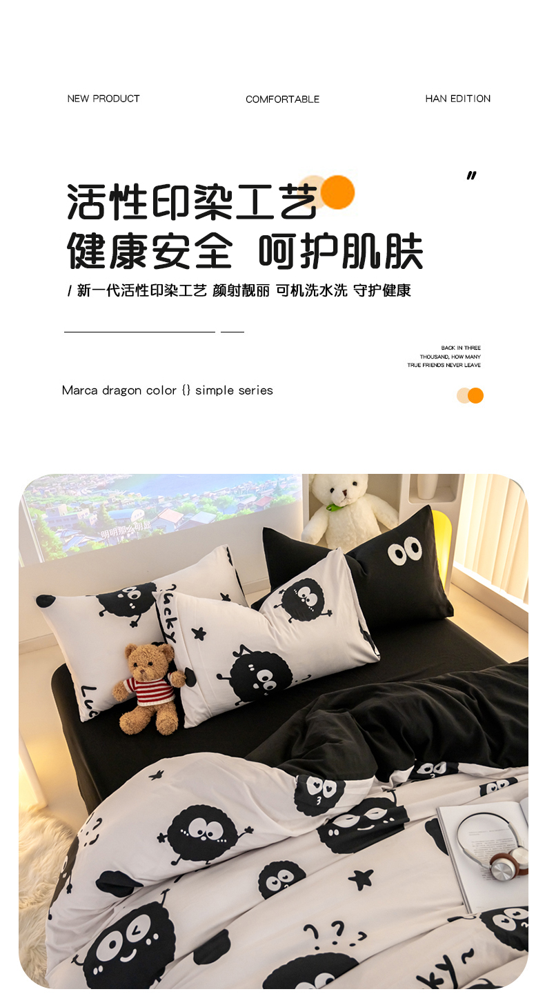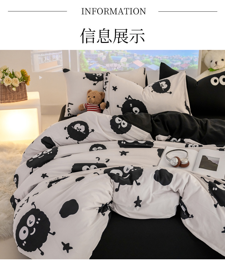 当前位置: 91家纺网 > 商品网购 > 床品套件 > 四件套 > 全棉普通四件套 > 韩秀家纺 2024新款超柔水洗棉双层纱大眼睛款印花四件套 小煤球