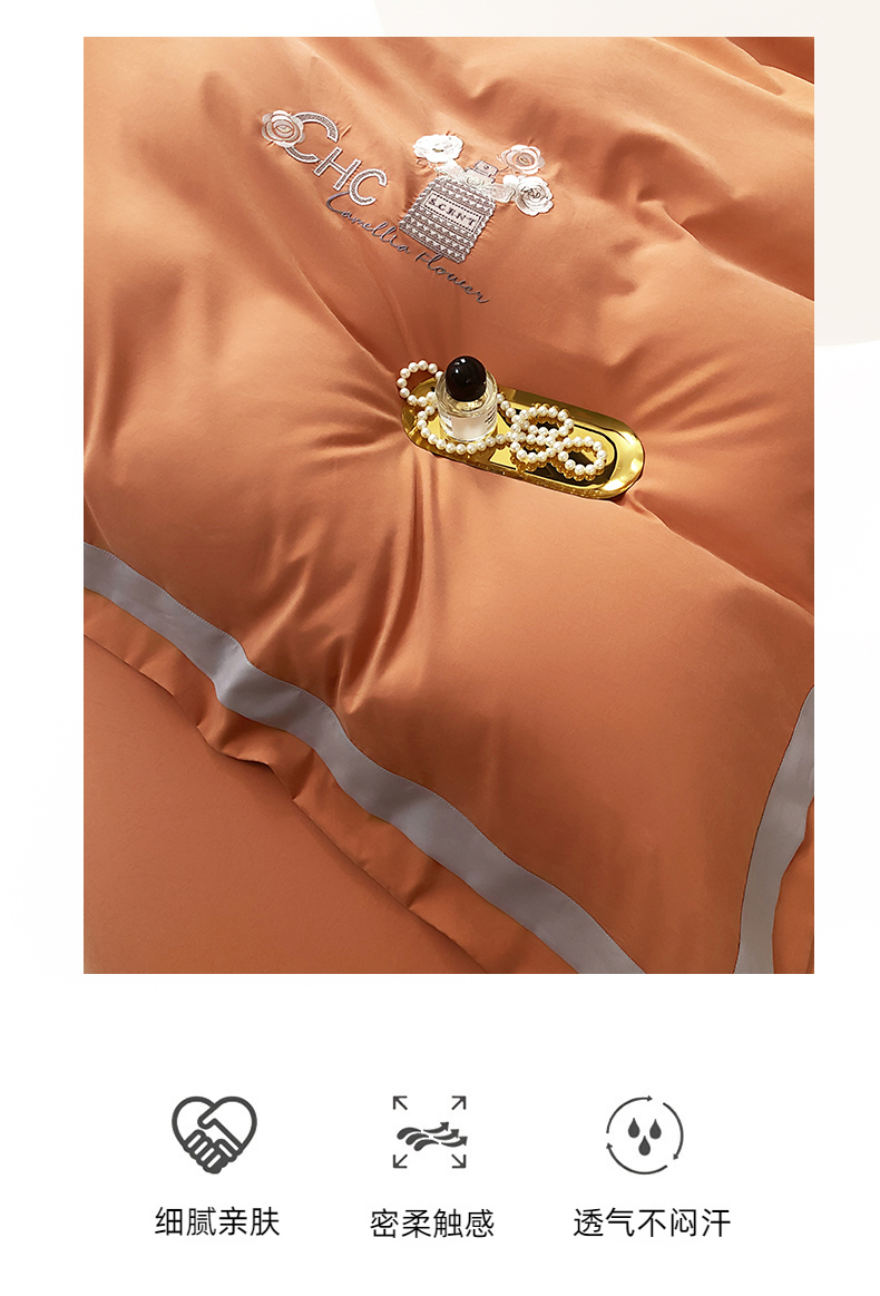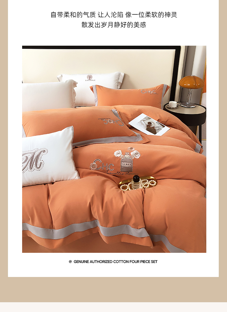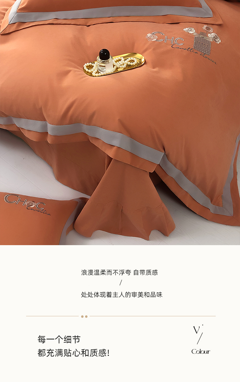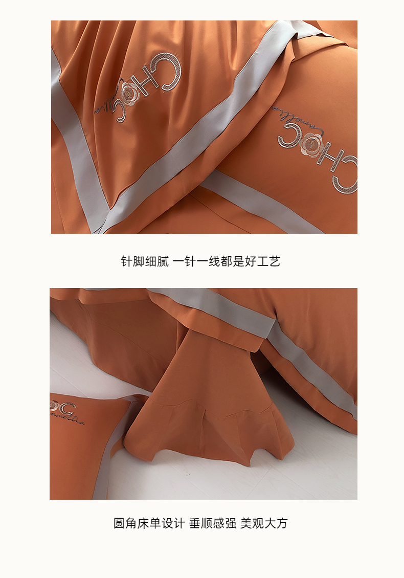 云锦家居 2024春夏新品云柔棉刺绣四件套-嘉伯丽 嘉伯丽-爱妃橙