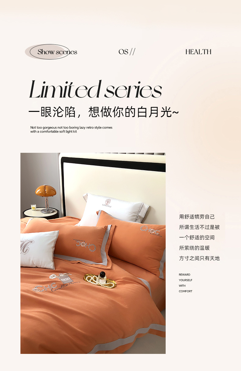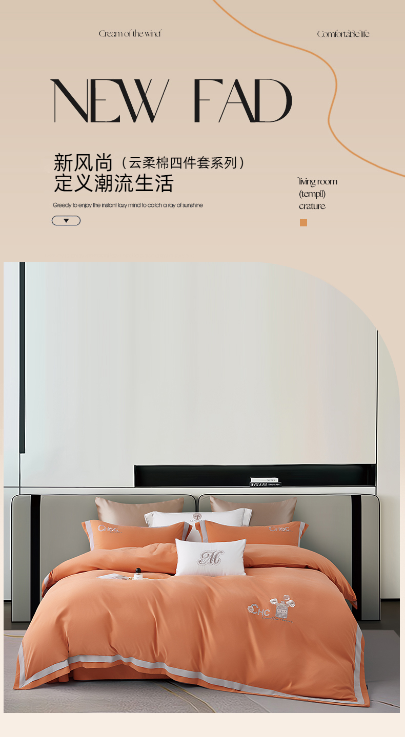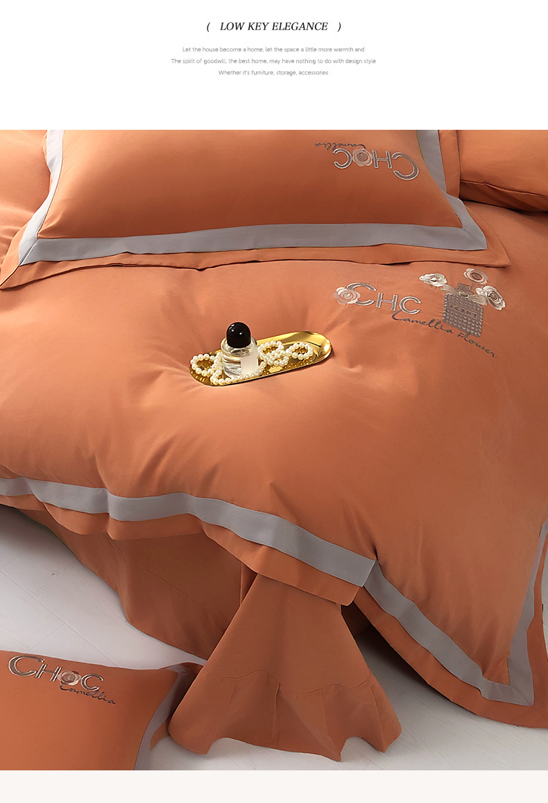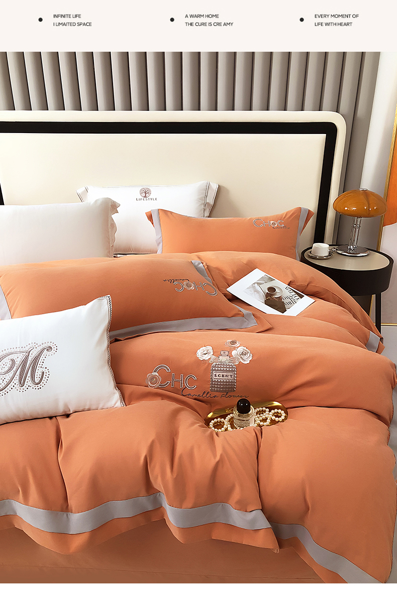 云锦家居 2024春夏新品云柔棉刺绣四件套-嘉伯丽 嘉伯丽-爱妃橙