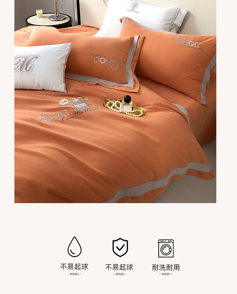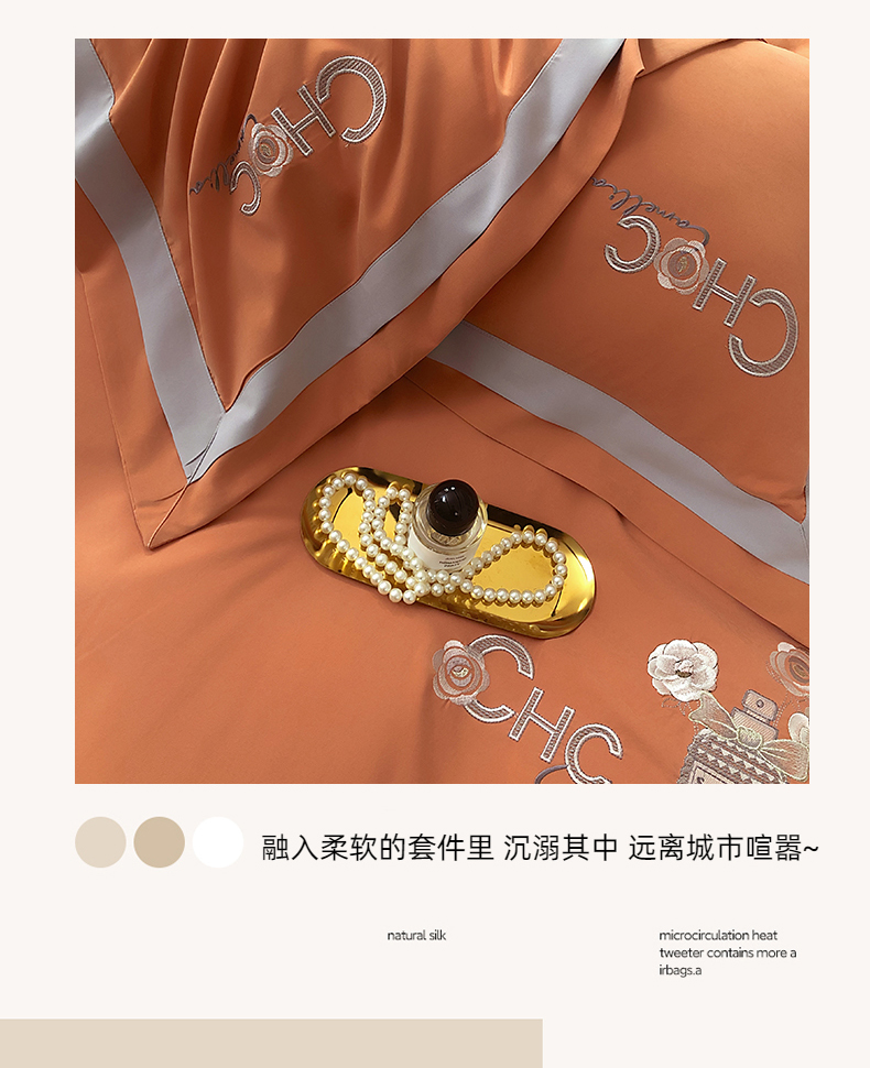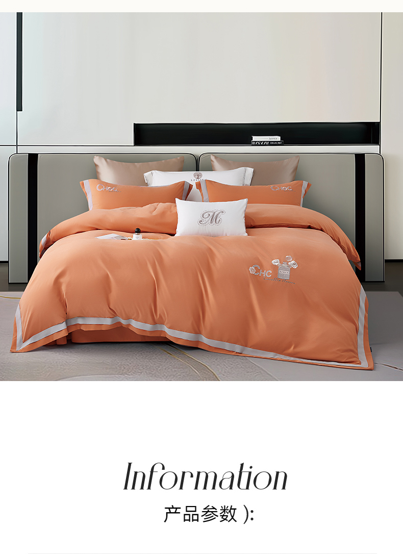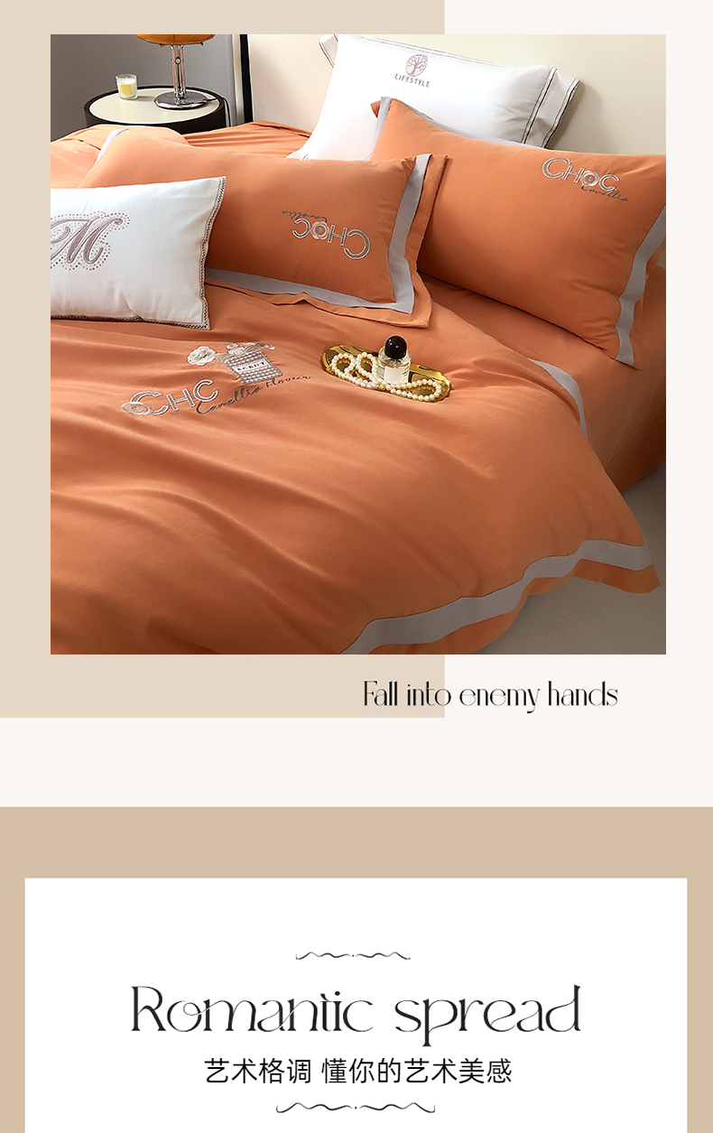 商品名称:云锦家居 2024春夏新品云柔棉刺绣四件套-嘉伯丽 嘉伯丽-爱妃橙