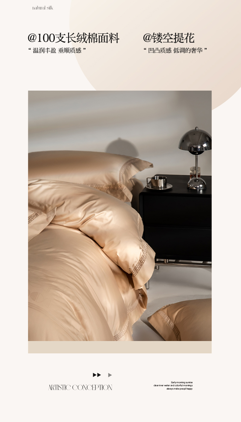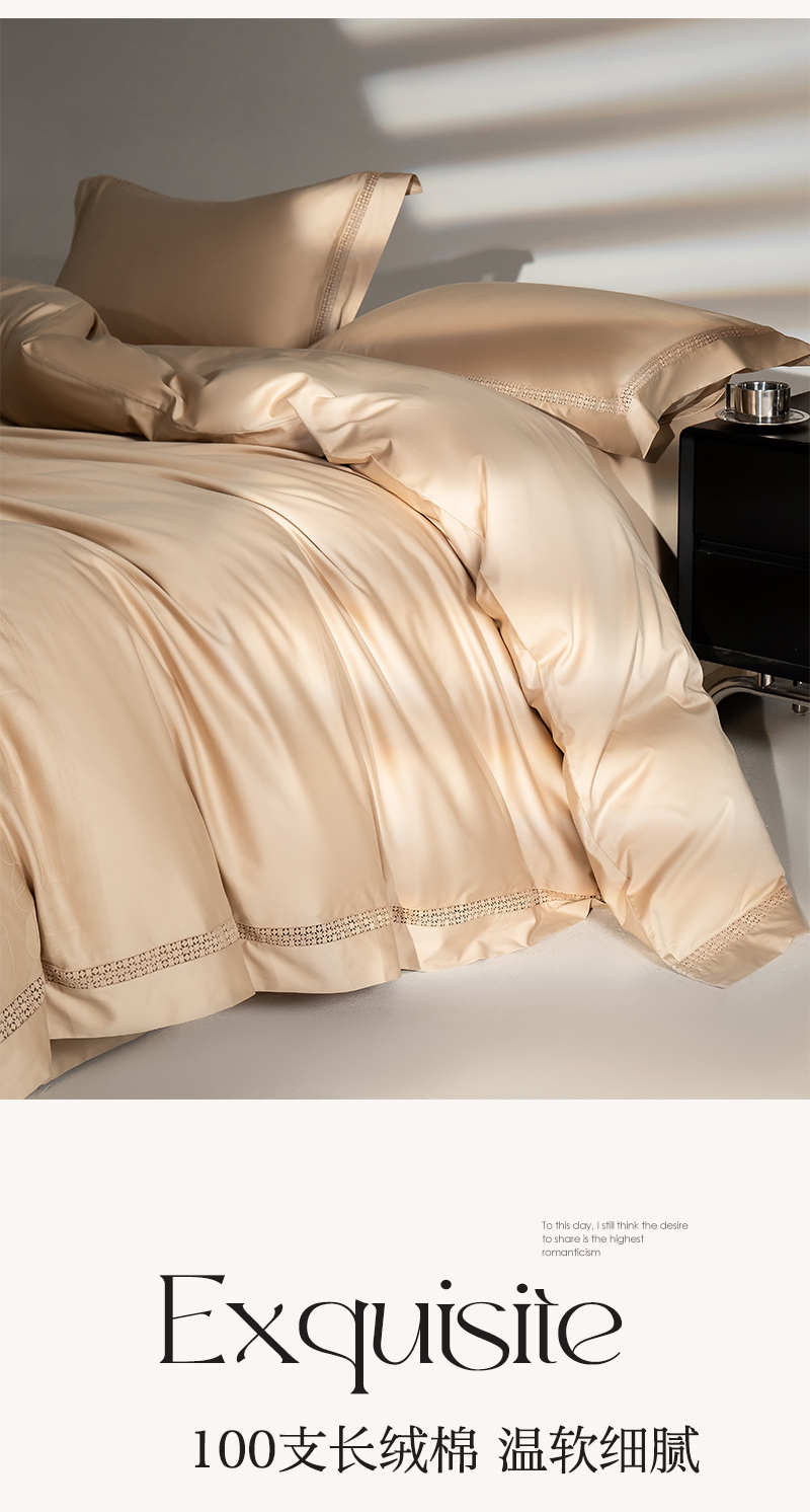 爱丽丝 2024新款100支长绒棉镂空提花四件套 奢尚-香槟金