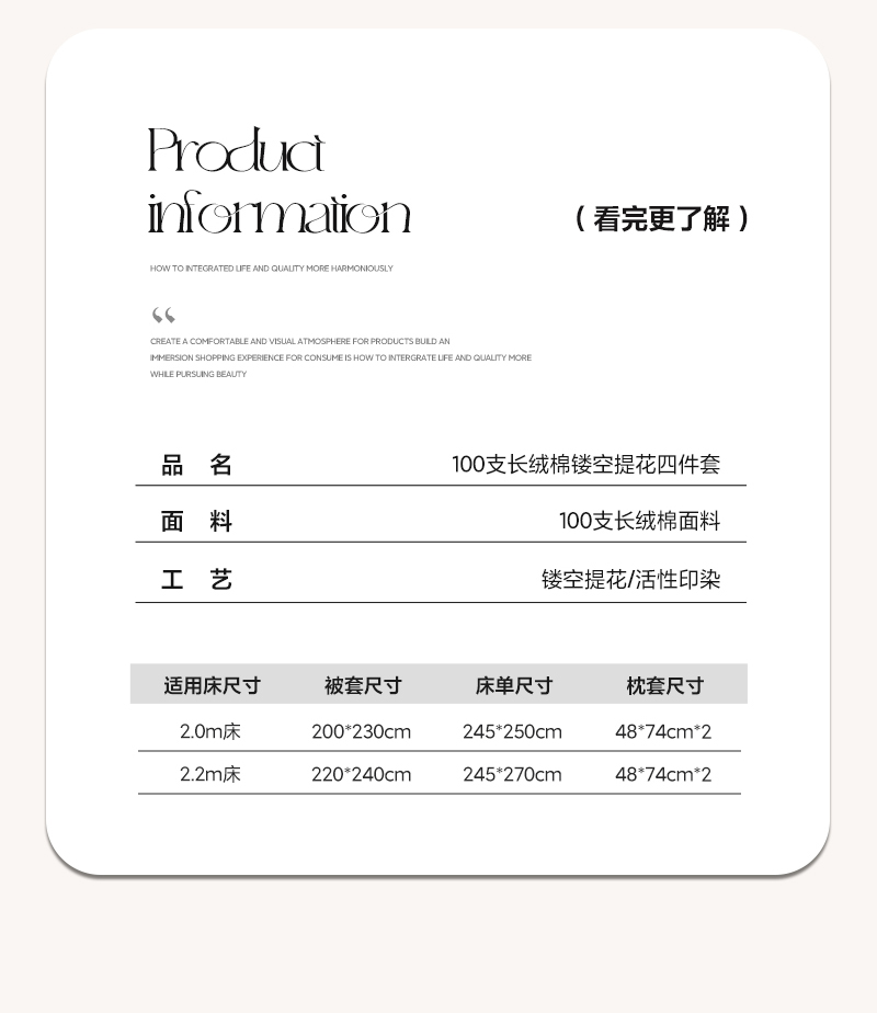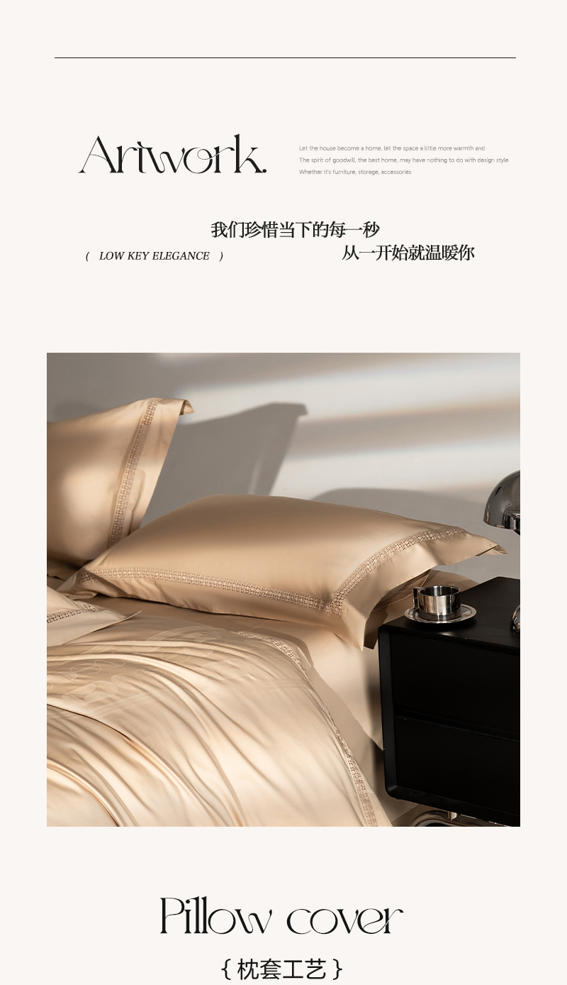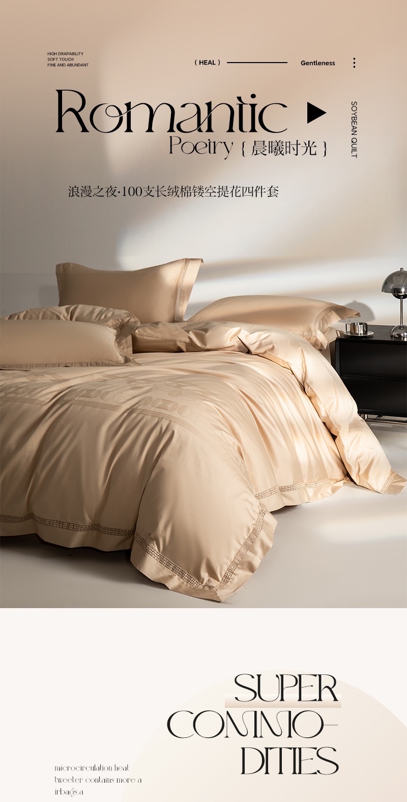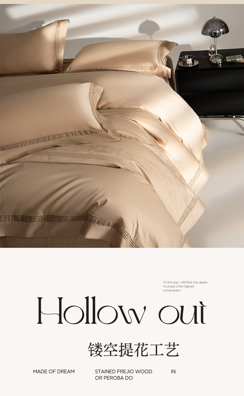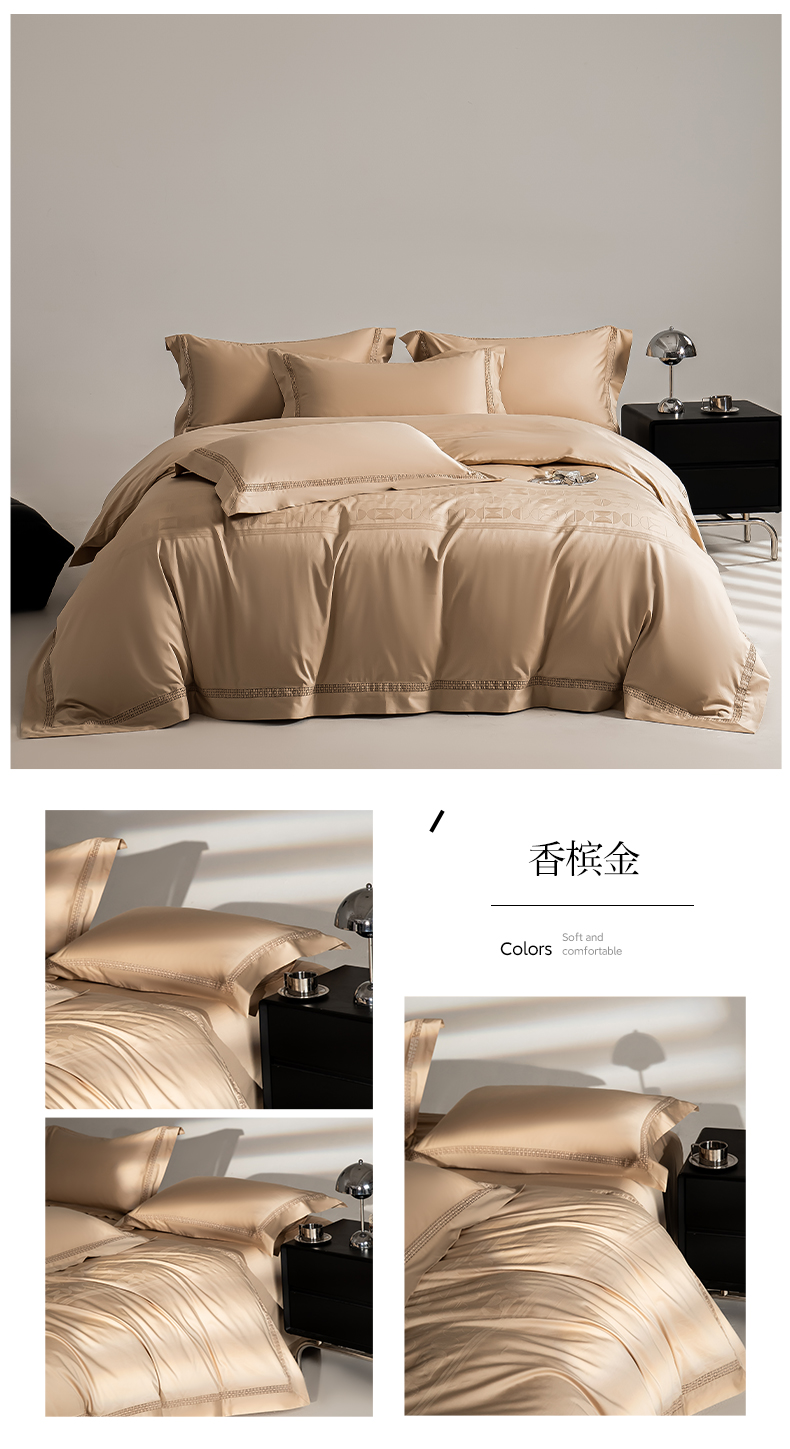 商品名称:爱丽丝 2024新款100支长绒棉镂空提花四件套 奢尚-香槟金