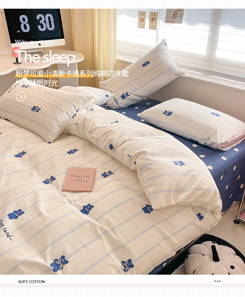 商品名称:桃子家居 2024新款纯棉13372粉梦可爱小清新卡通系列四件套 棉-兰小熊