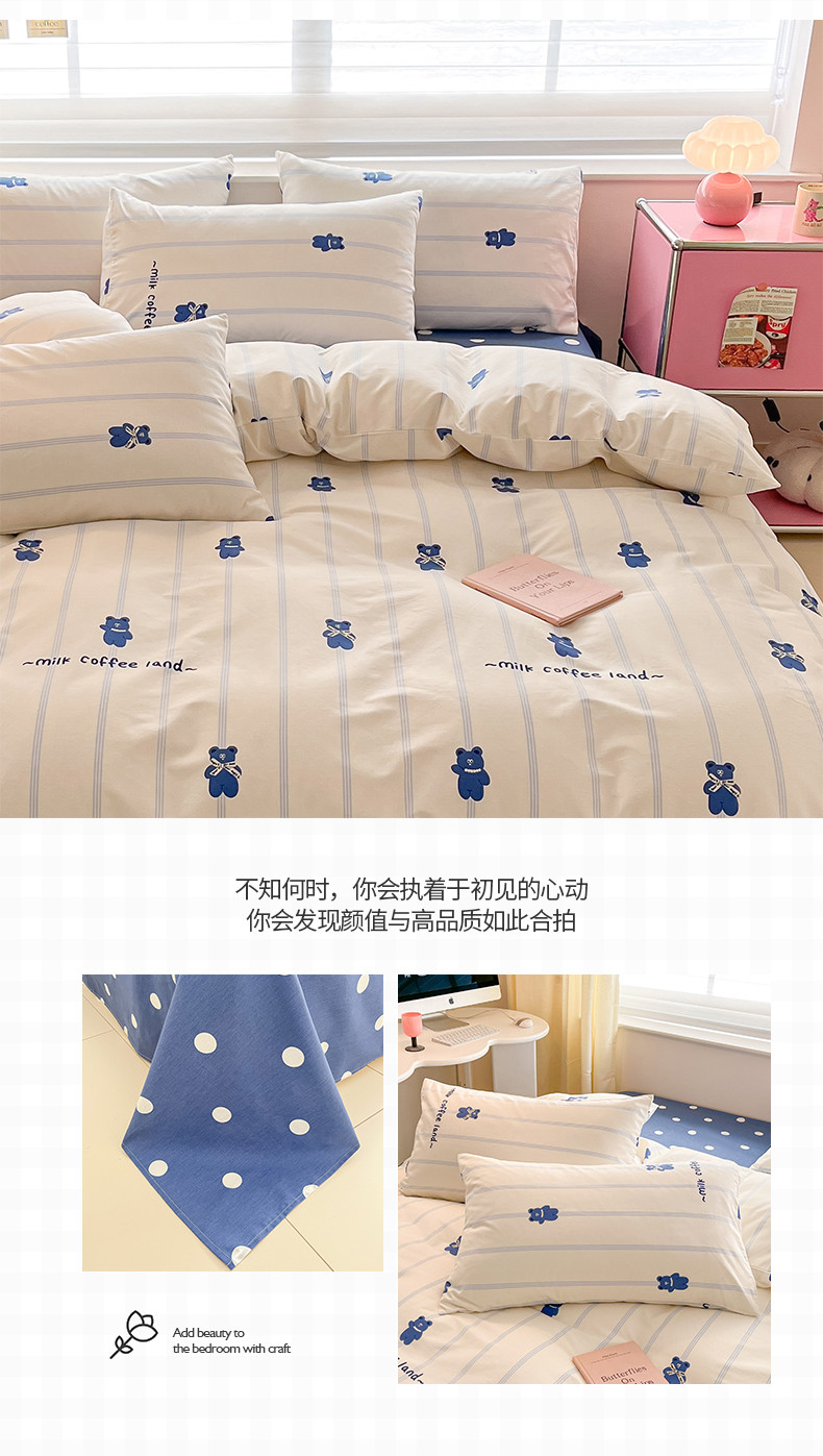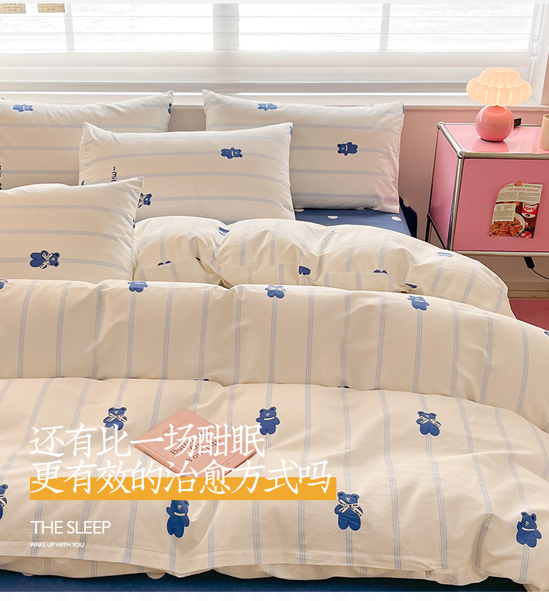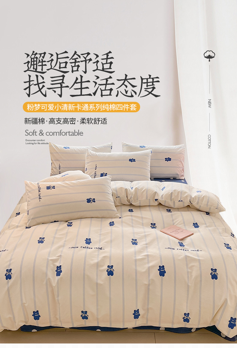 桃子家居 2024新款纯棉13372粉梦可爱小清新卡通系列四件套 棉-兰小熊