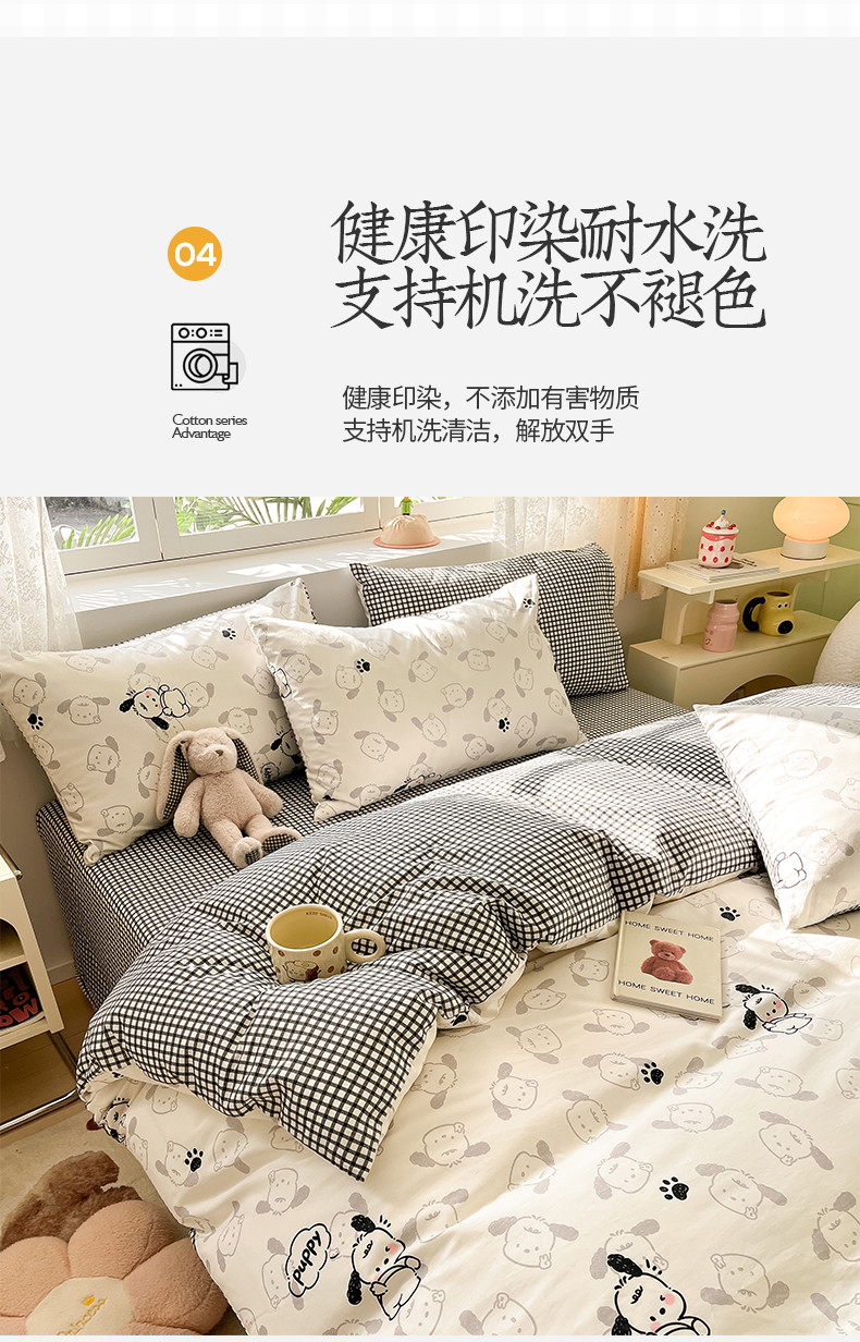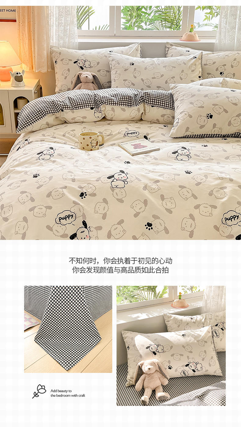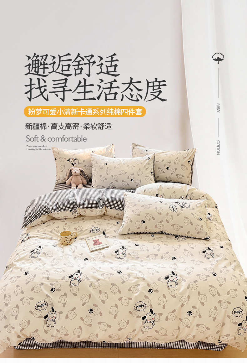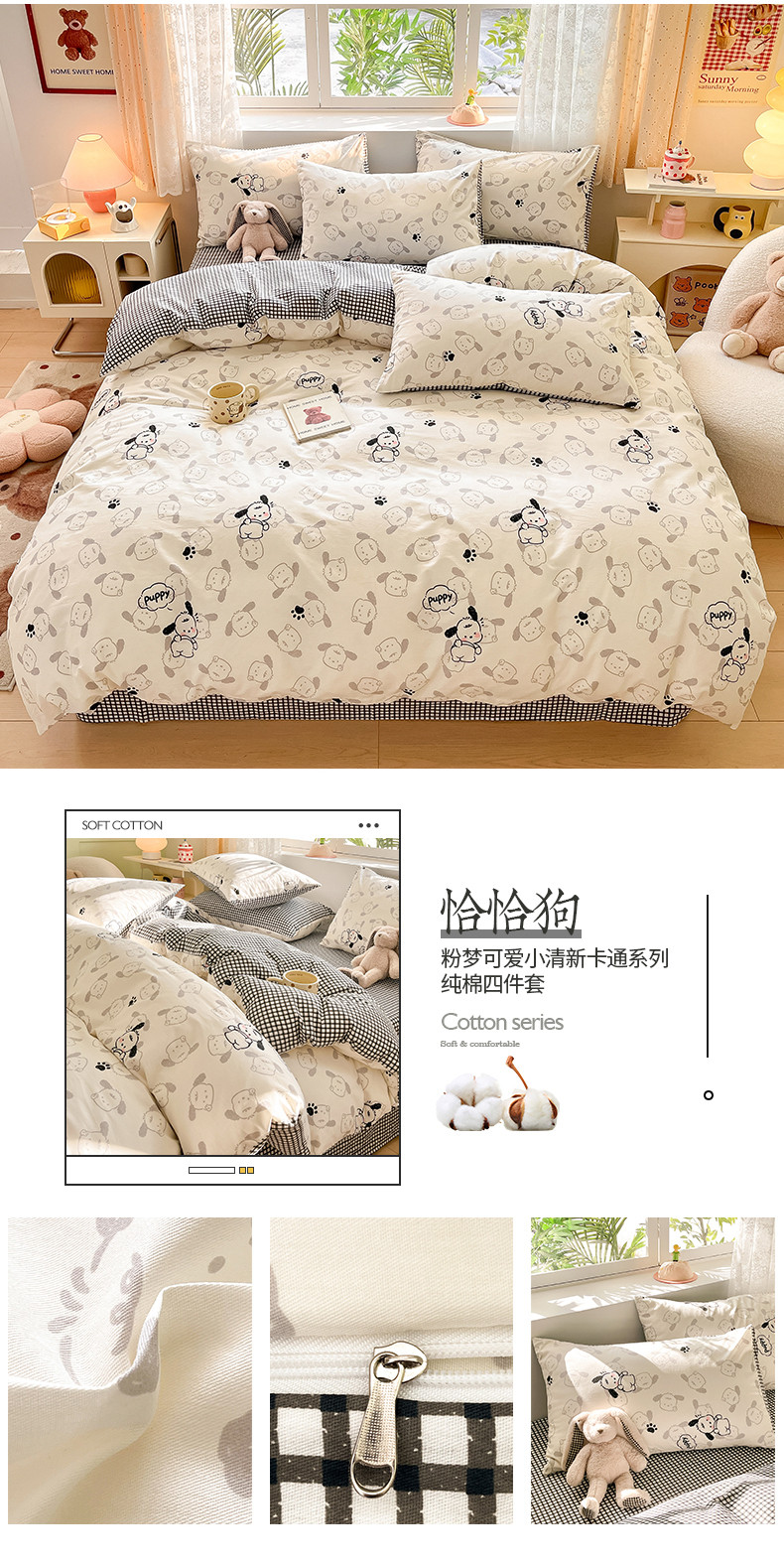 商品名称:桃子家居 2024新款纯棉13372粉梦可爱小清新卡通系列四件套 棉-恰恰狗