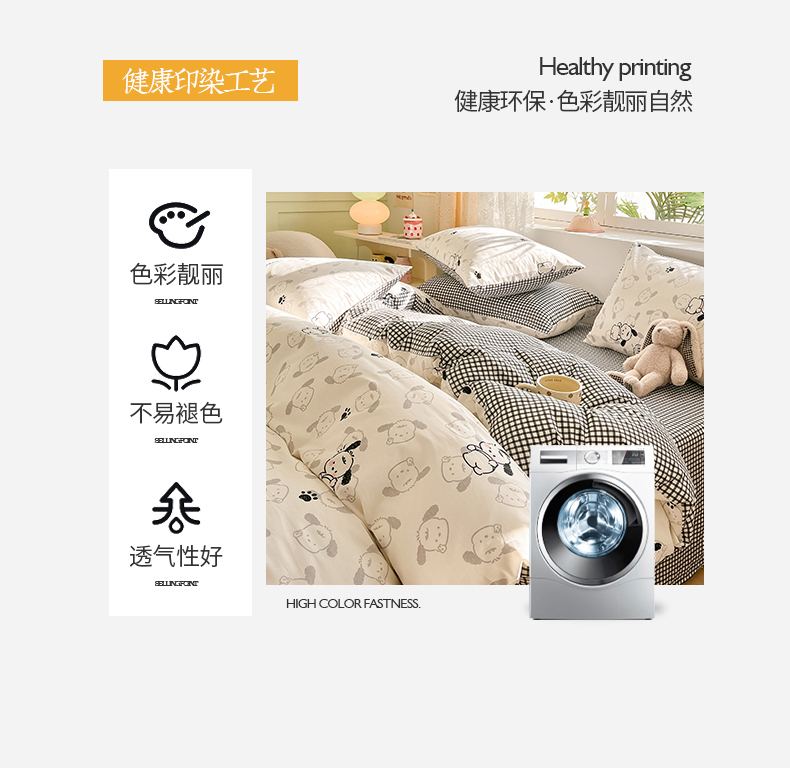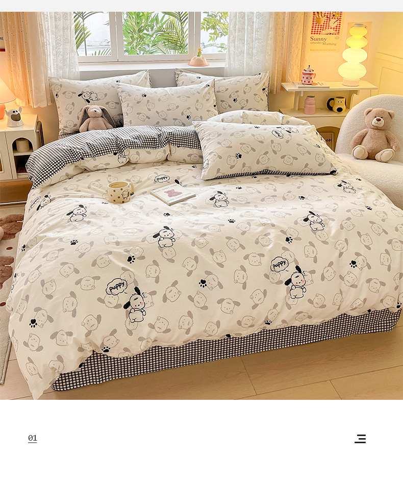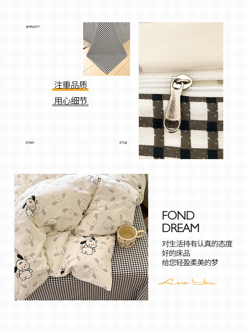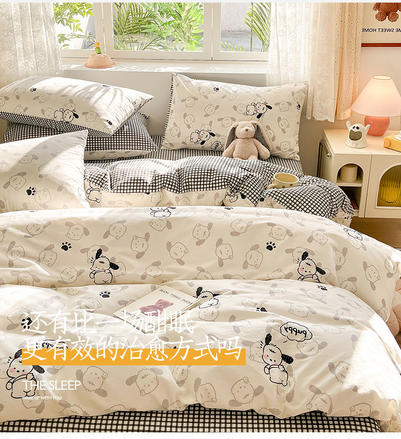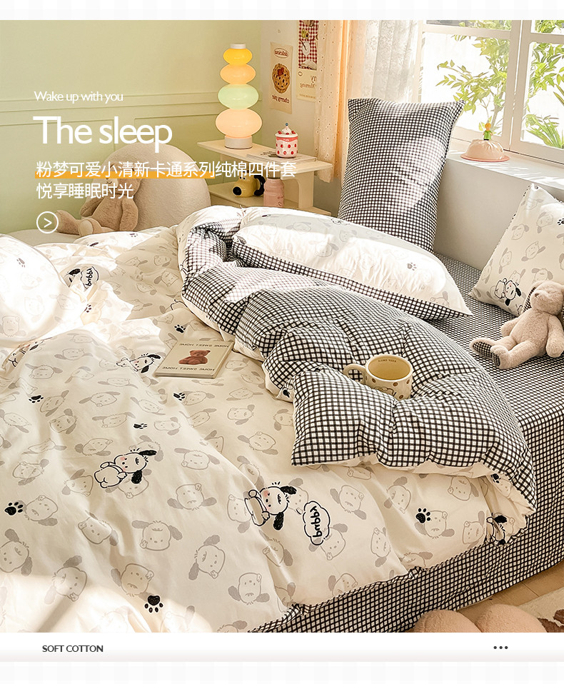 商品名称:桃子家居 2024新款纯棉13372粉梦可爱小清新卡通系列四件套 棉-恰恰狗