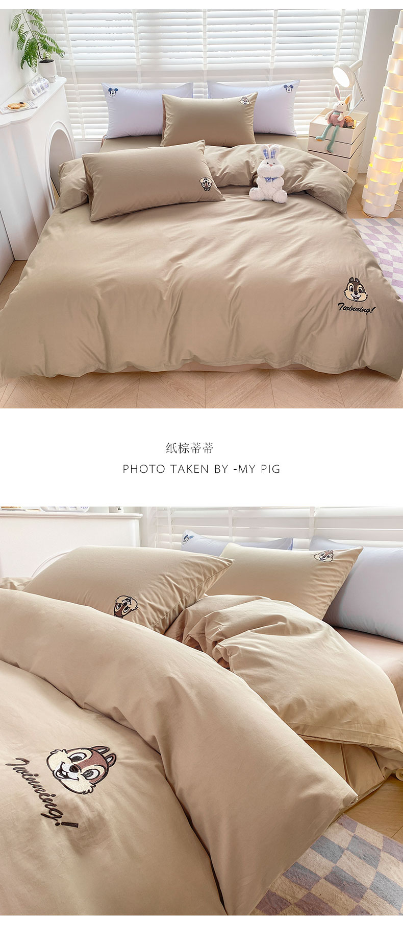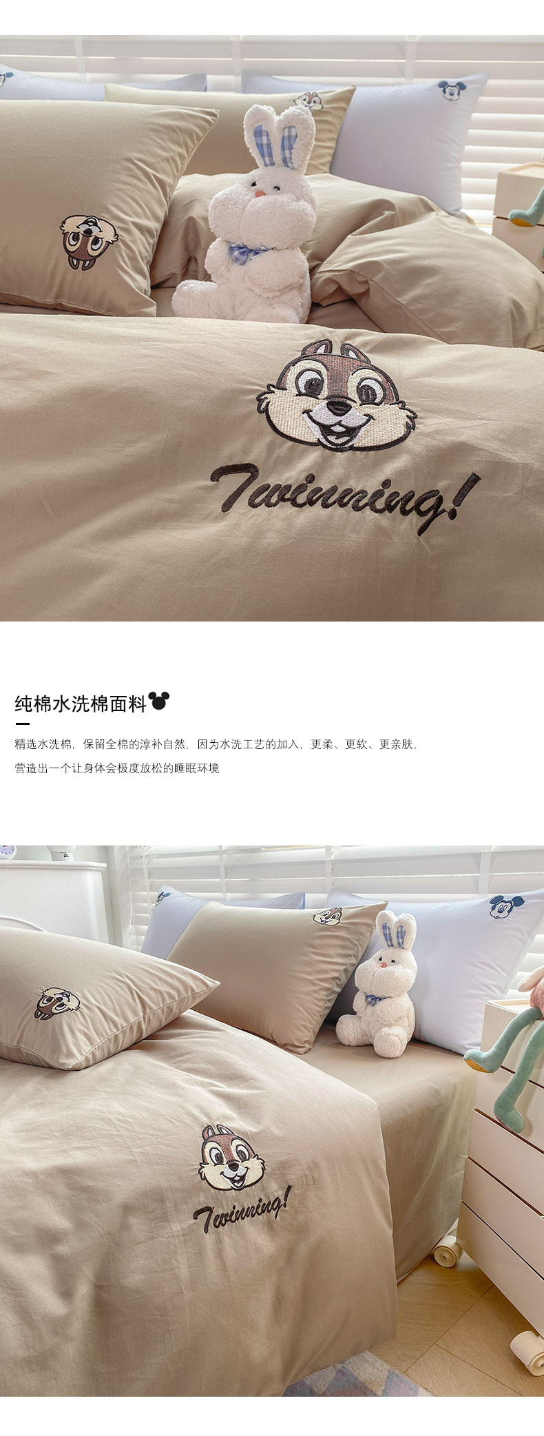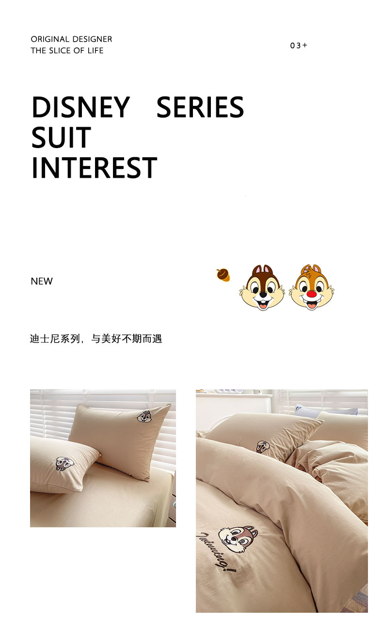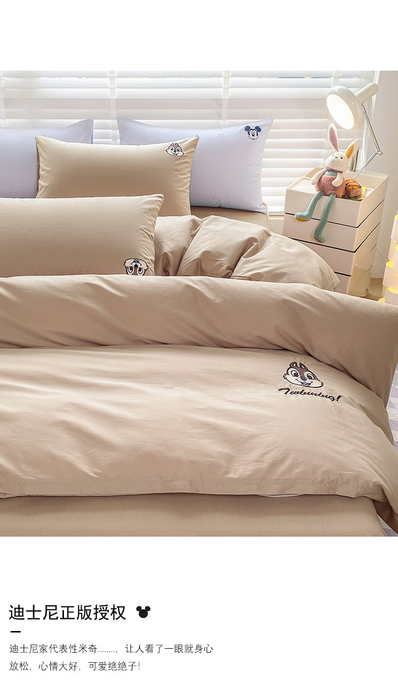 商品名称:猪先生 2024新款迪士尼全棉40支水洗棉绣花四件套 纸棕蒂蒂