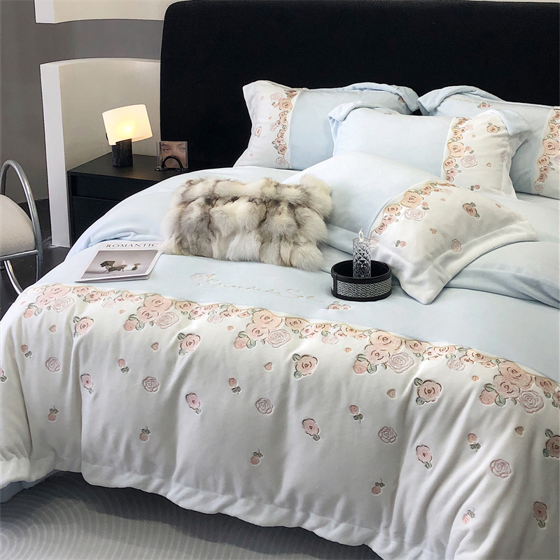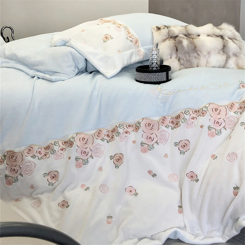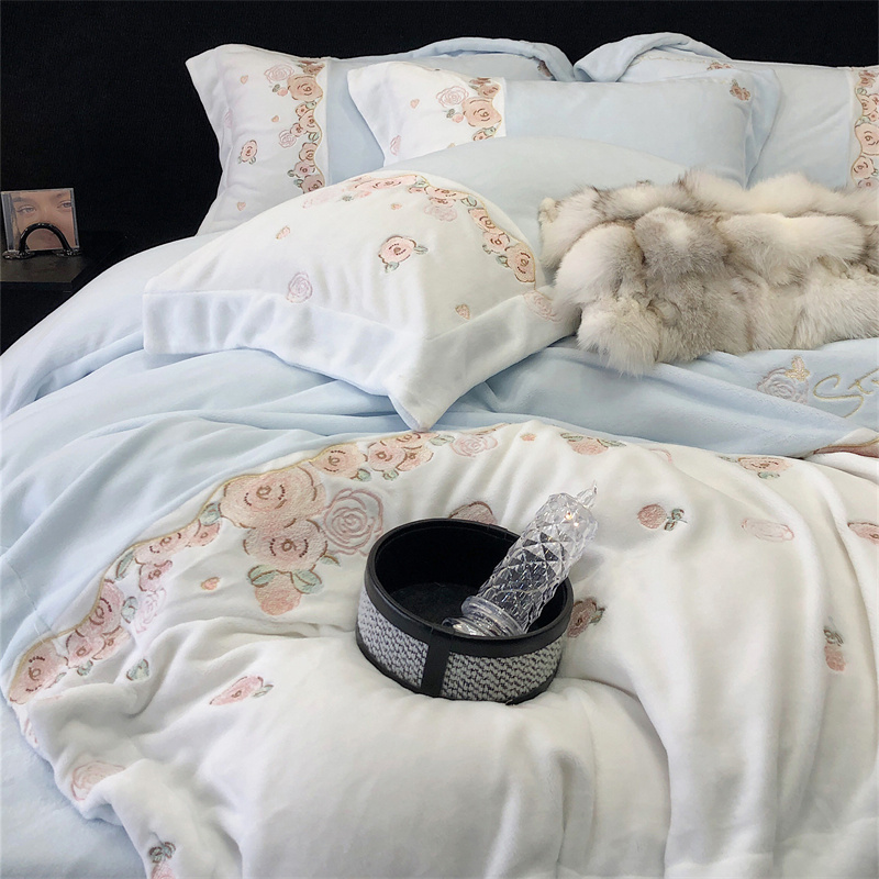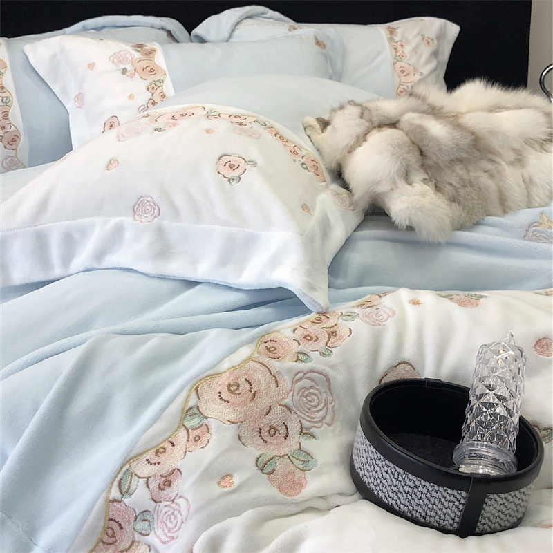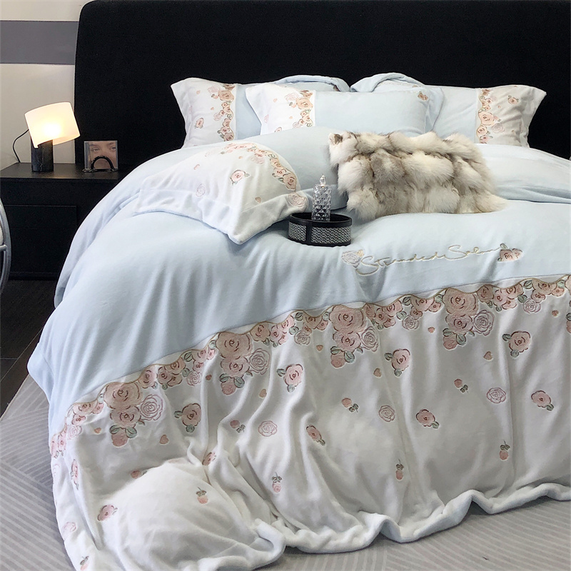 商品名称:馨蕊家居 2024新款秋冬轻奢煦暖绒系列四件套-玫瑰物语 北卡蓝