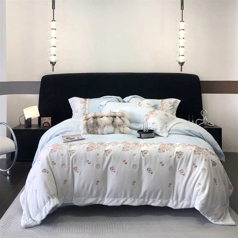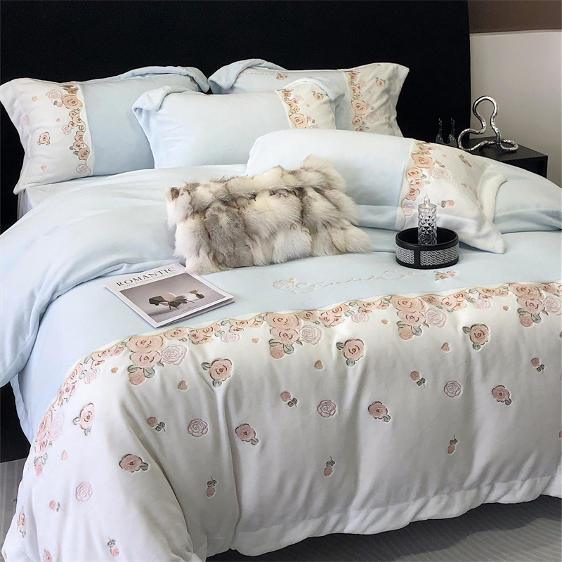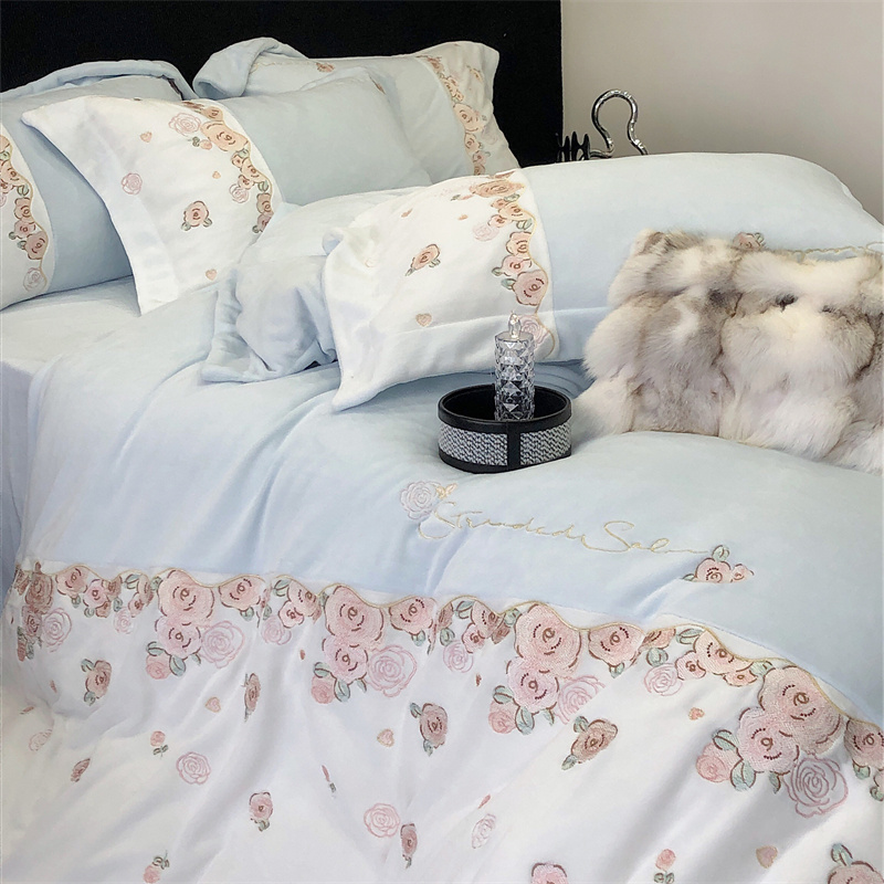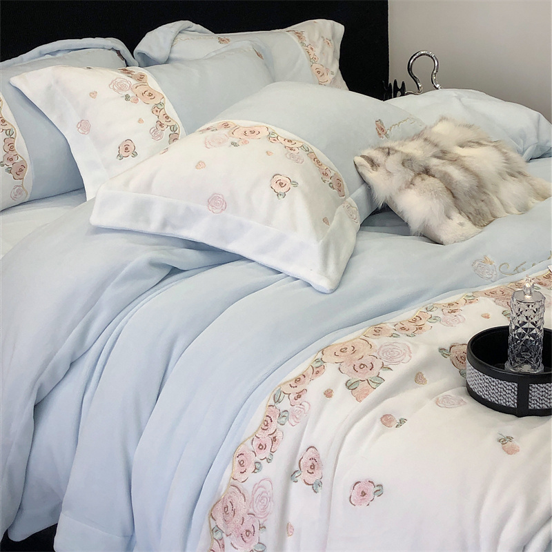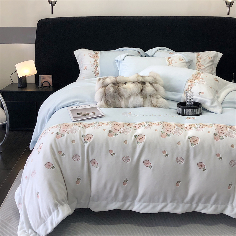 商品名称:馨蕊家居 2024新款秋冬轻奢煦暖绒系列四件套-玫瑰物语 北卡蓝