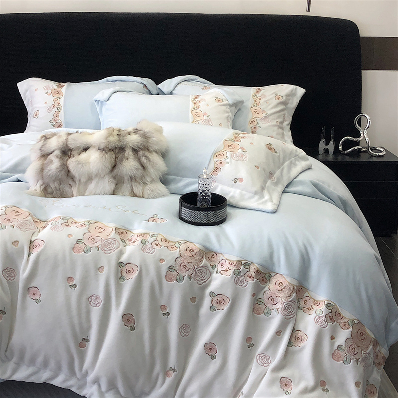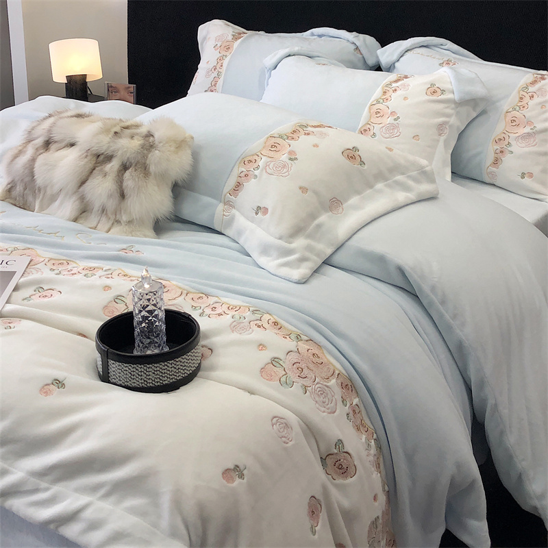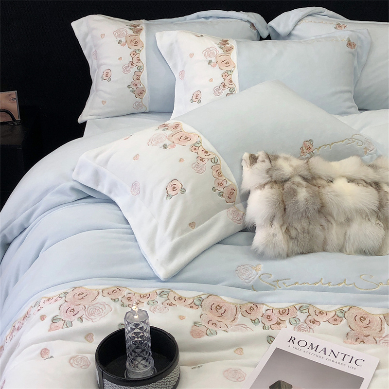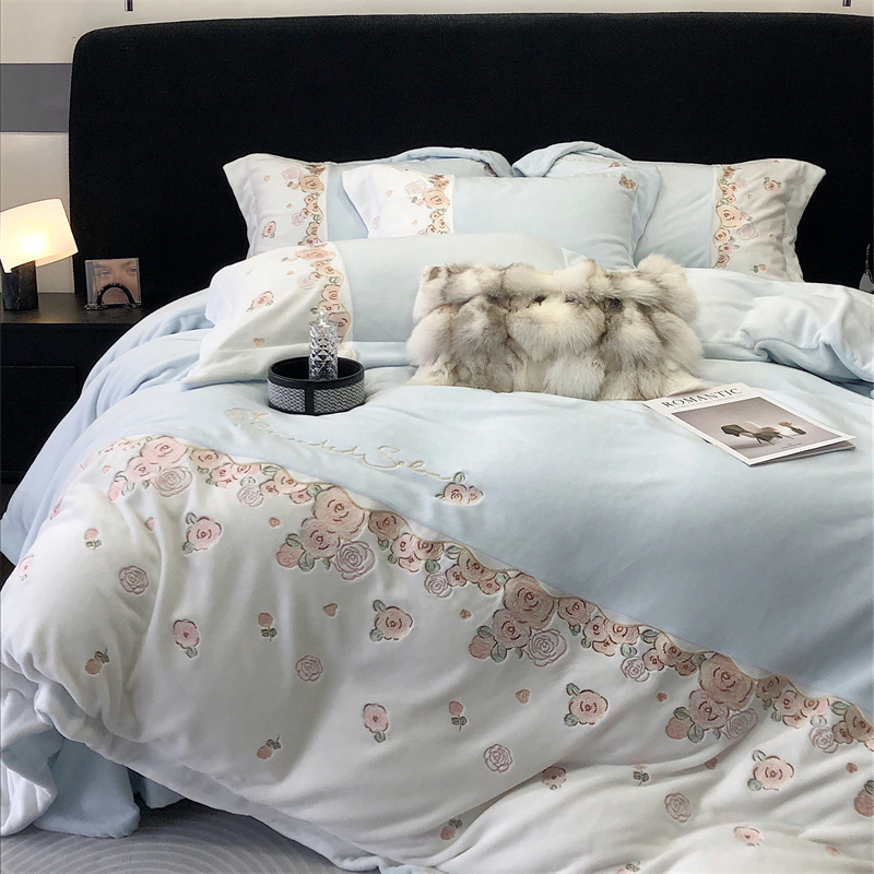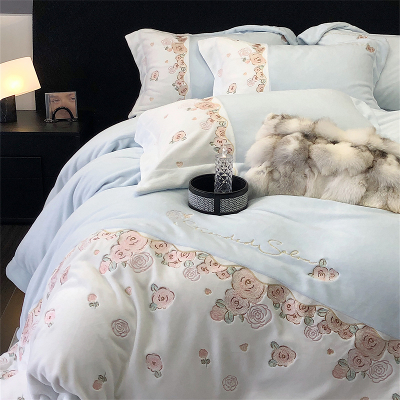 馨蕊家居 2024新款秋冬轻奢煦暖绒系列四件套-玫瑰物语 北卡蓝