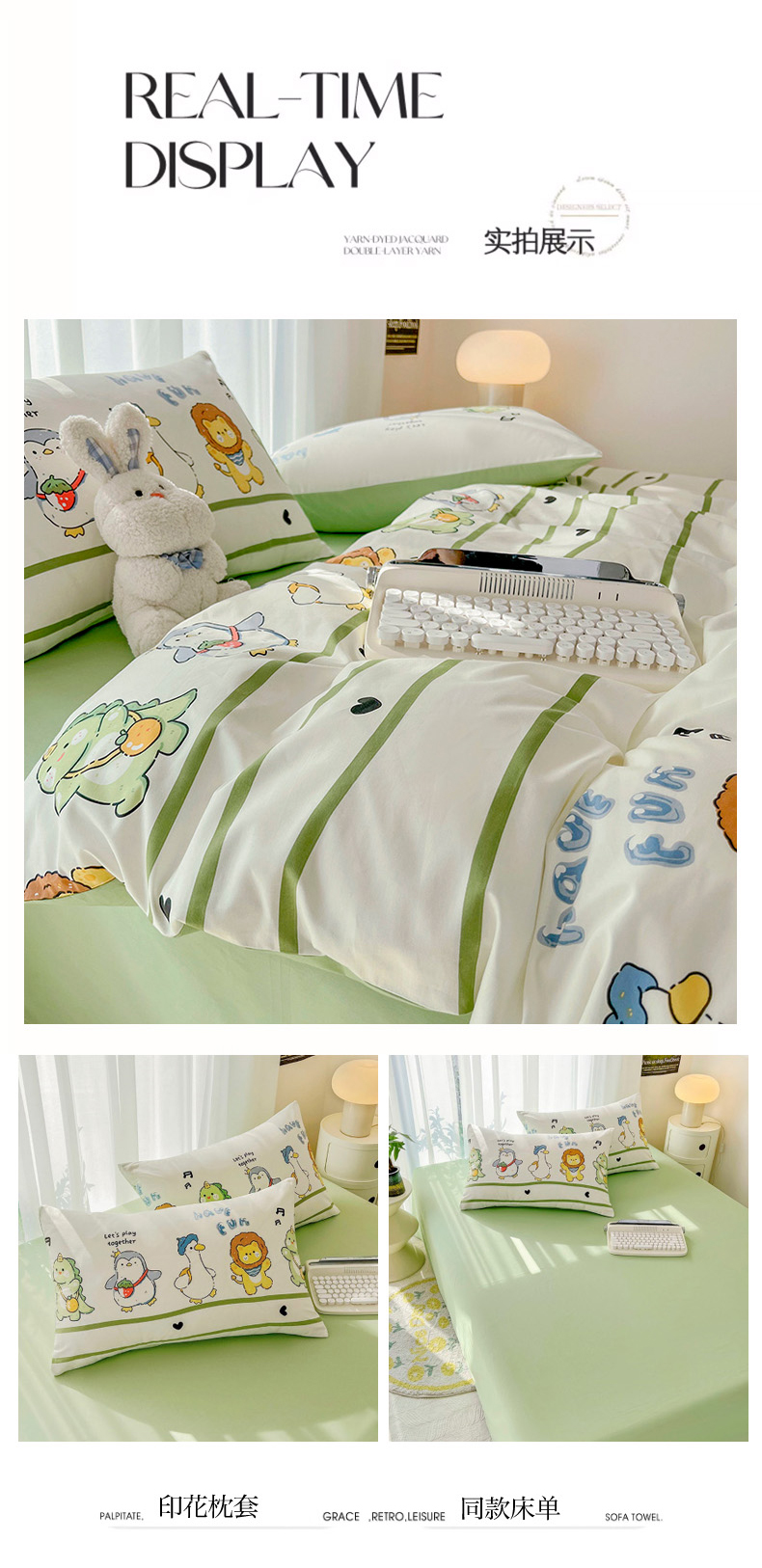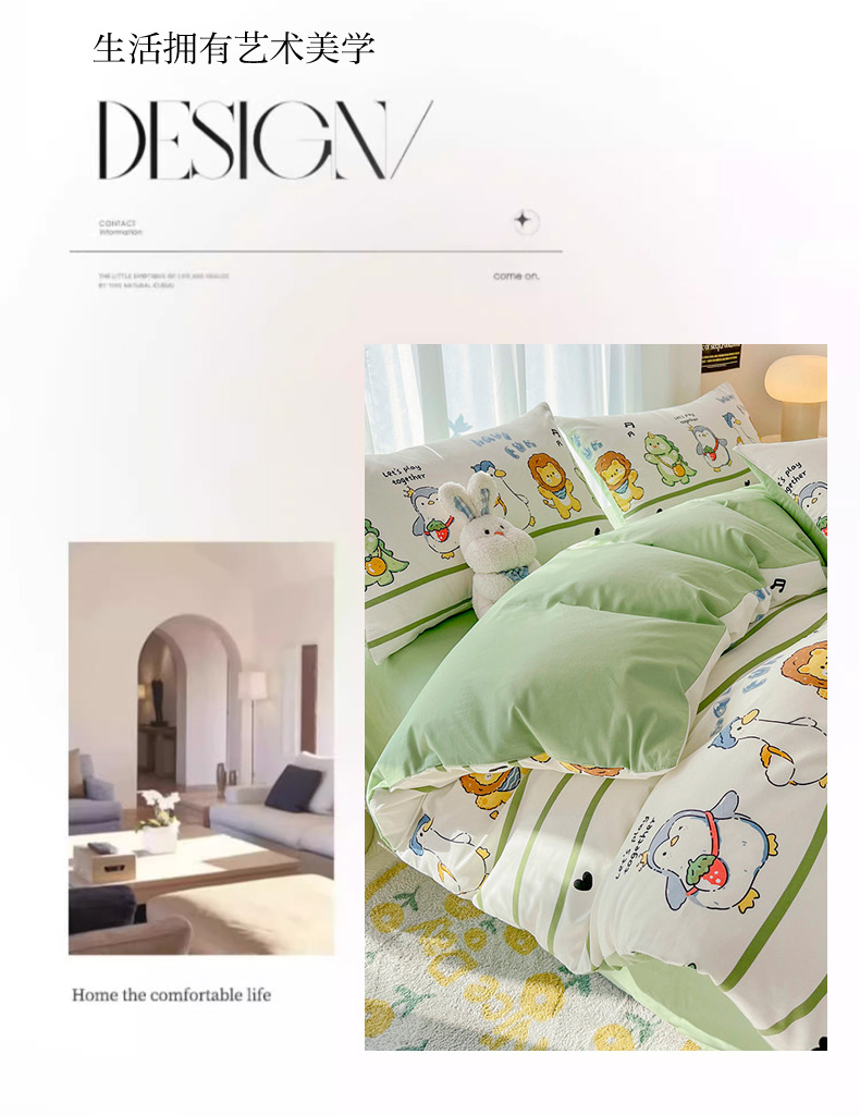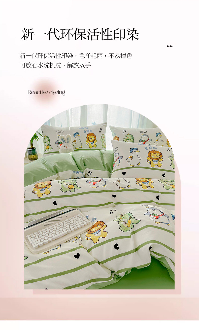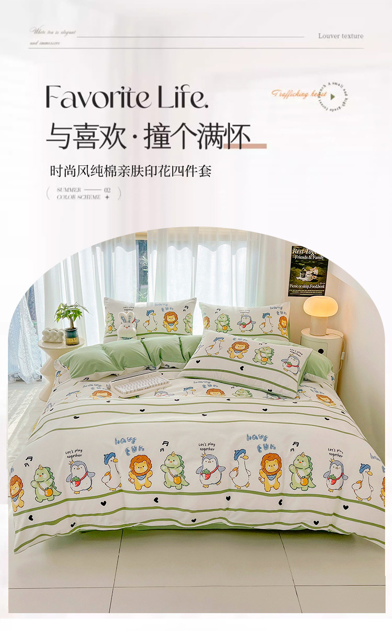 倾慕家纺 2024新款时尚风全棉13070亲肤印花系列四件套 萌宠乐园